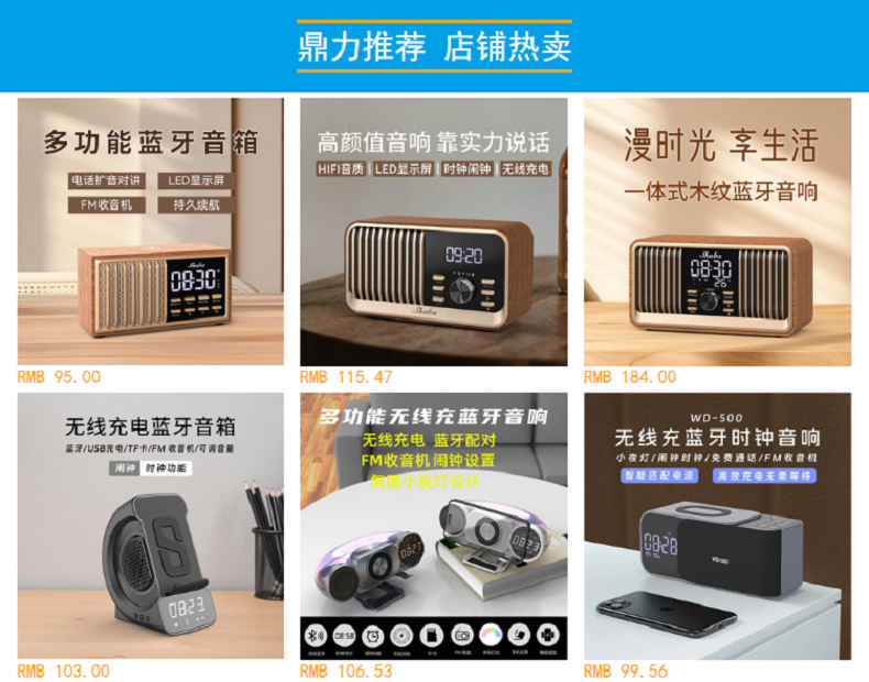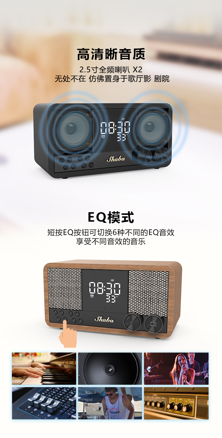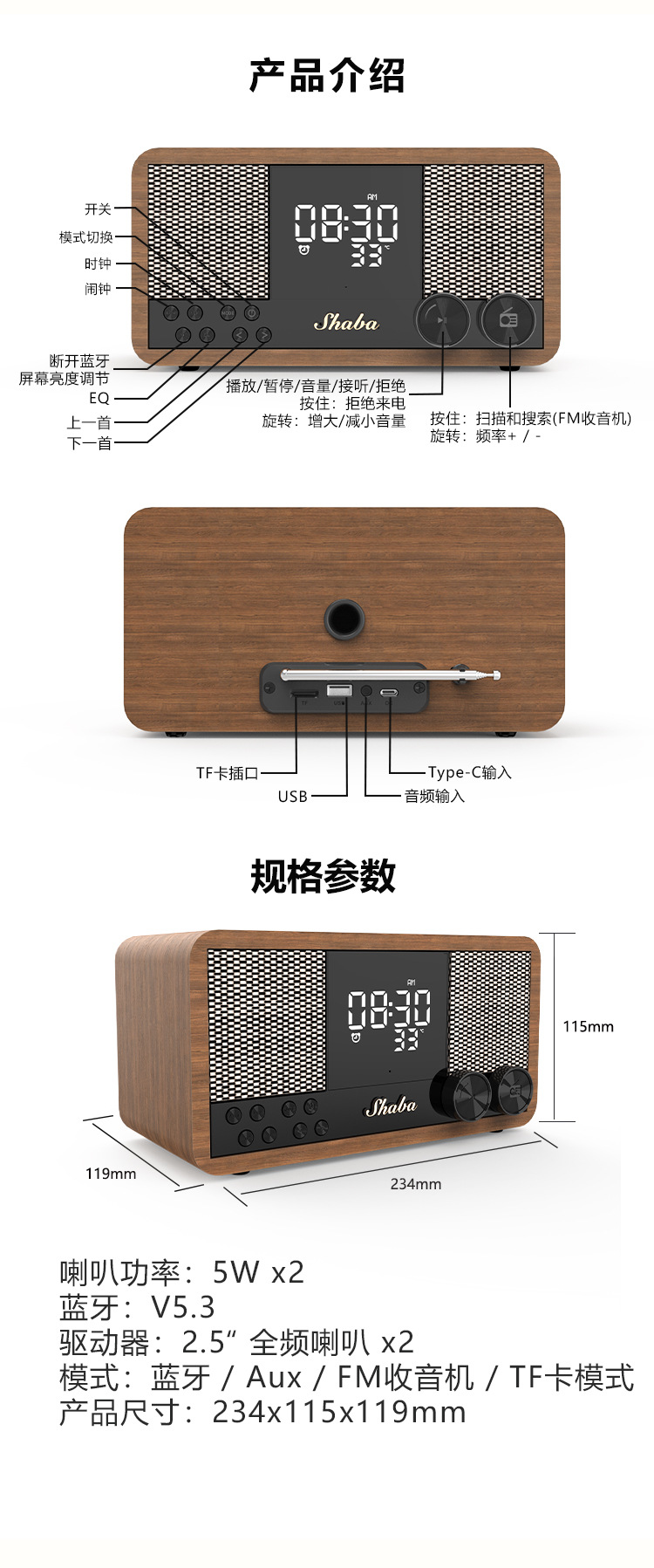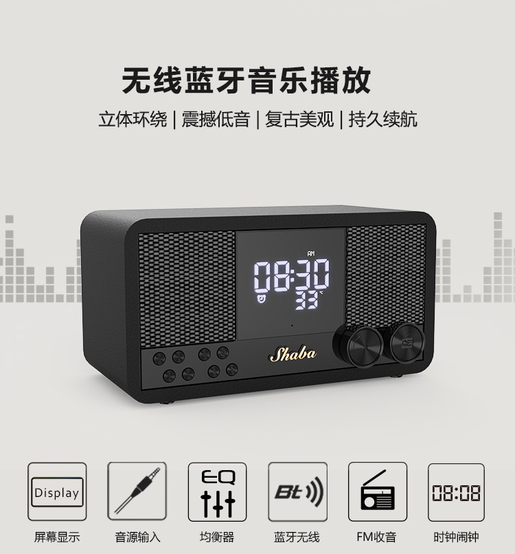 국경 간 복고풍 블루투스 스피커 목조 홈 FM 라디오 시계 알람 시계 오디오 블루투스 서브 우퍼스토어 가기