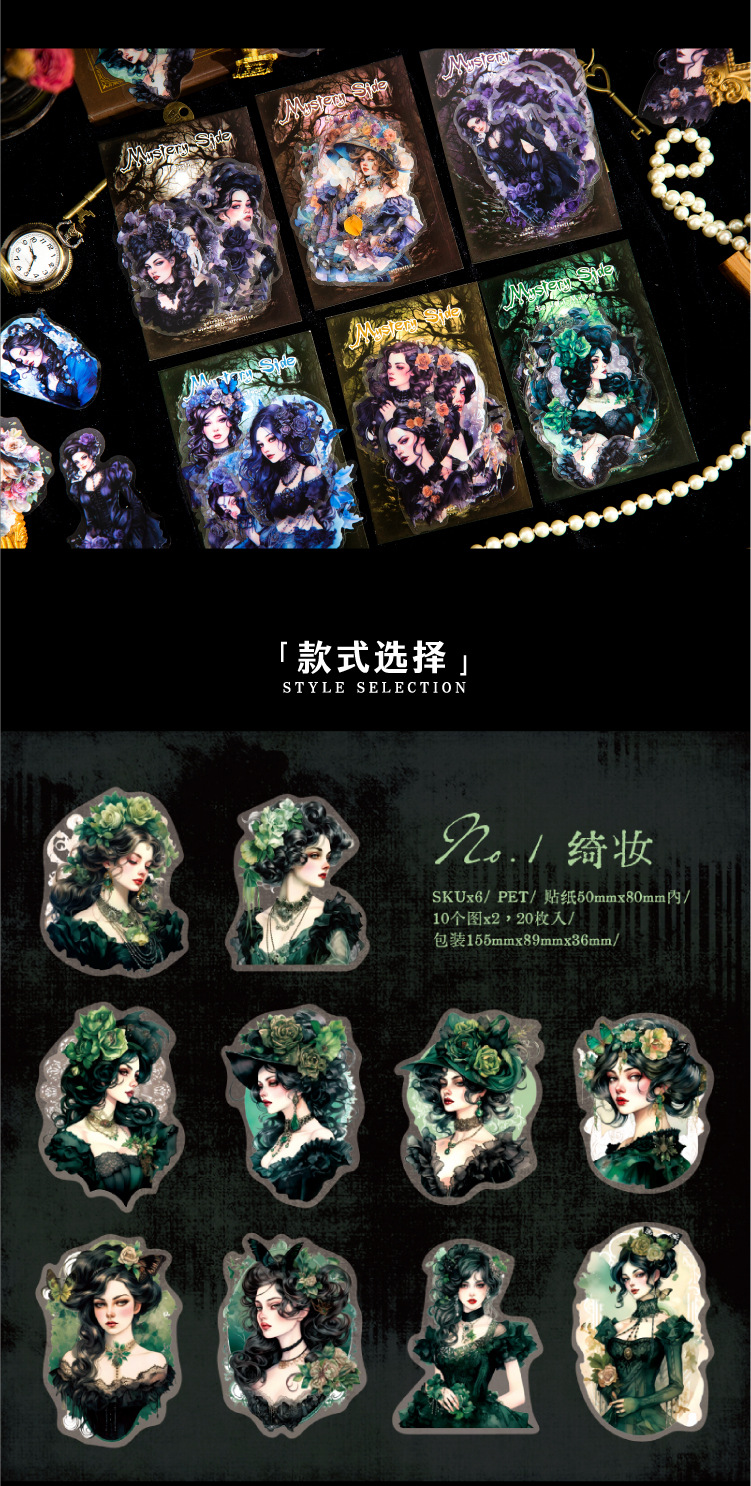 Yan Ji PET 스티커 가방 신비한 사이드 시리즈 손 계정 소재 장식 콜라주 백 스티커 메모 메시지 6스토어 가기