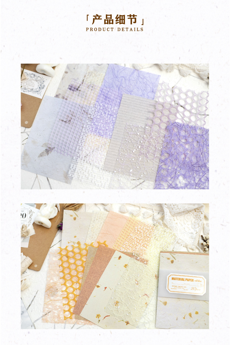 Yanji 멀티 소재 소재 종이와 화려한 짜여진 시리즈 라이트 레트로 그리드 손 계정 배경 장식 백 종이