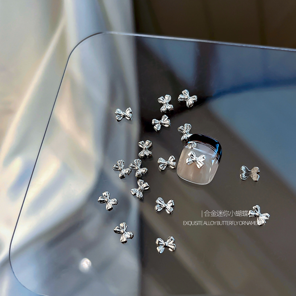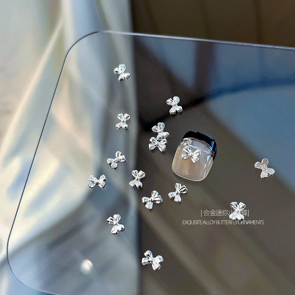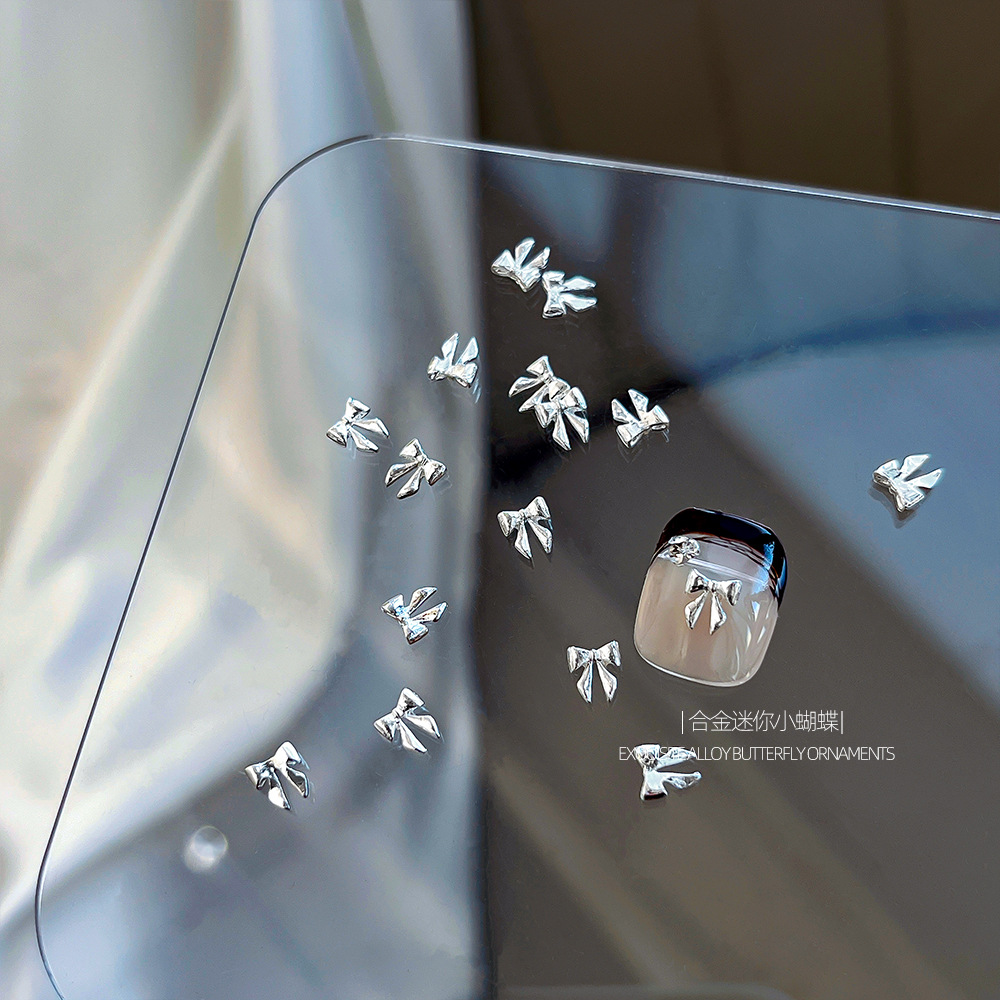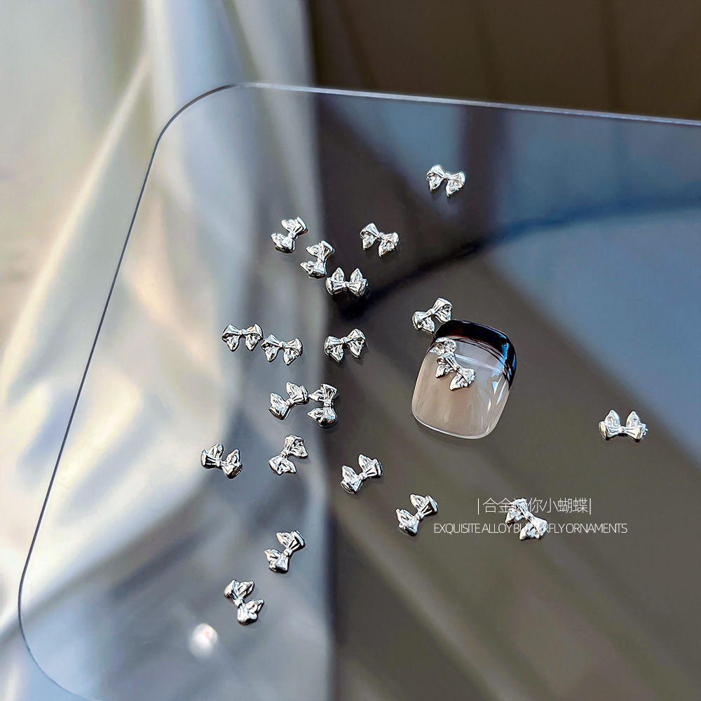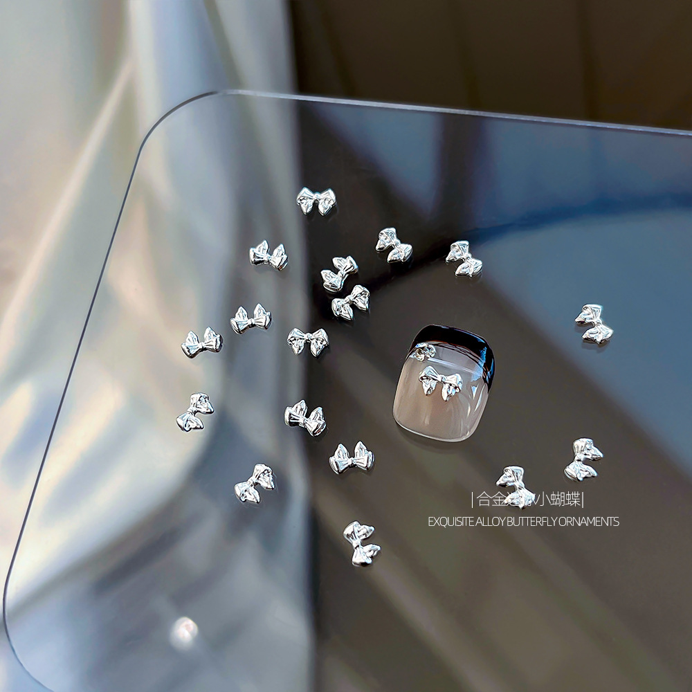 인터넷 연예인 미니 합금 나비 넥타이 네일 아트 쥬얼리 실버 3 차원 빛 럭셔리 네일 아트 네일 장식 도매스토어 가기