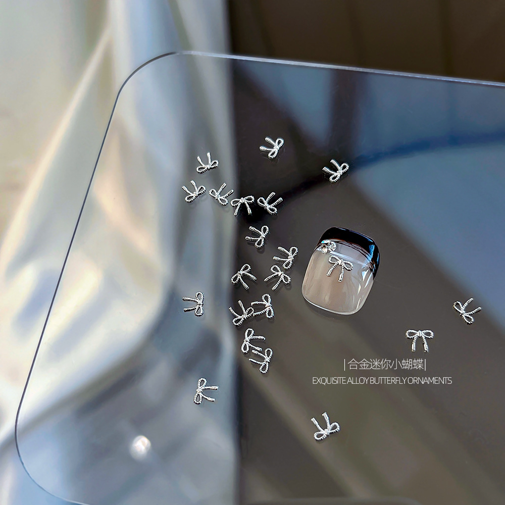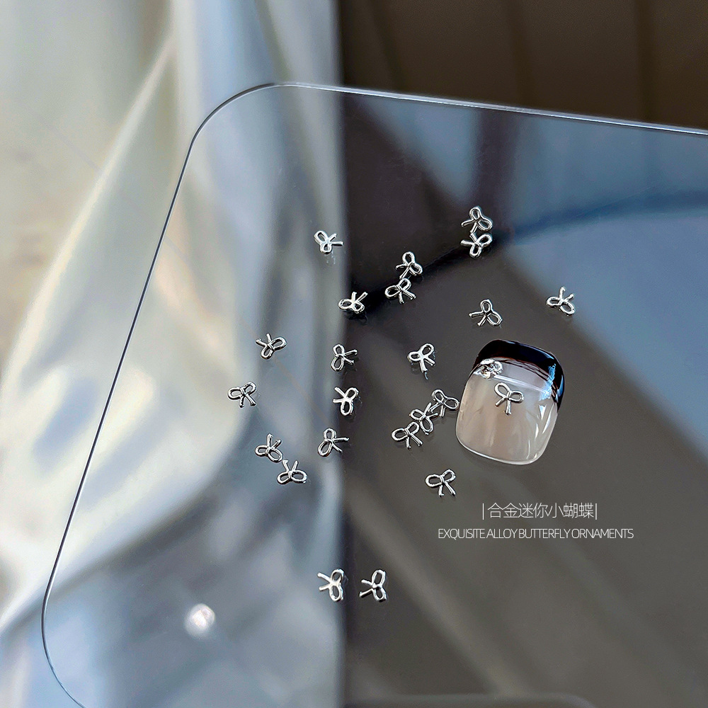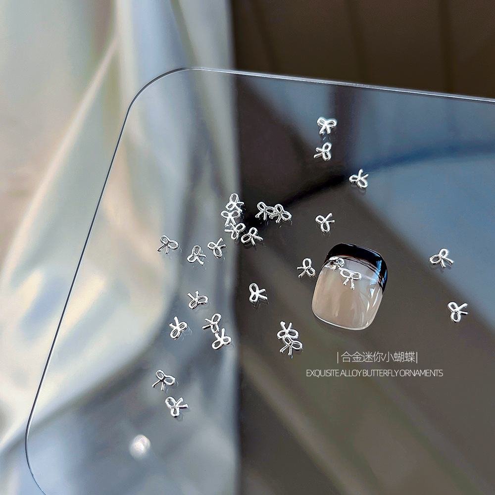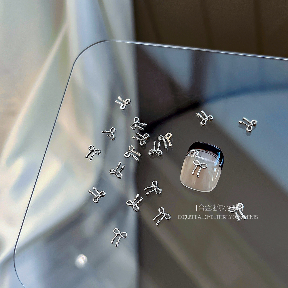 인터넷 연예인 미니 합금 나비 넥타이 네일 아트 쥬얼리 실버 3 차원 빛 럭셔리 네일 아트 네일 장식 도매스토어 가기