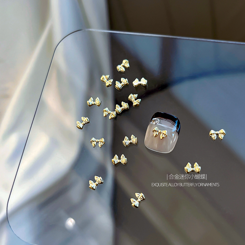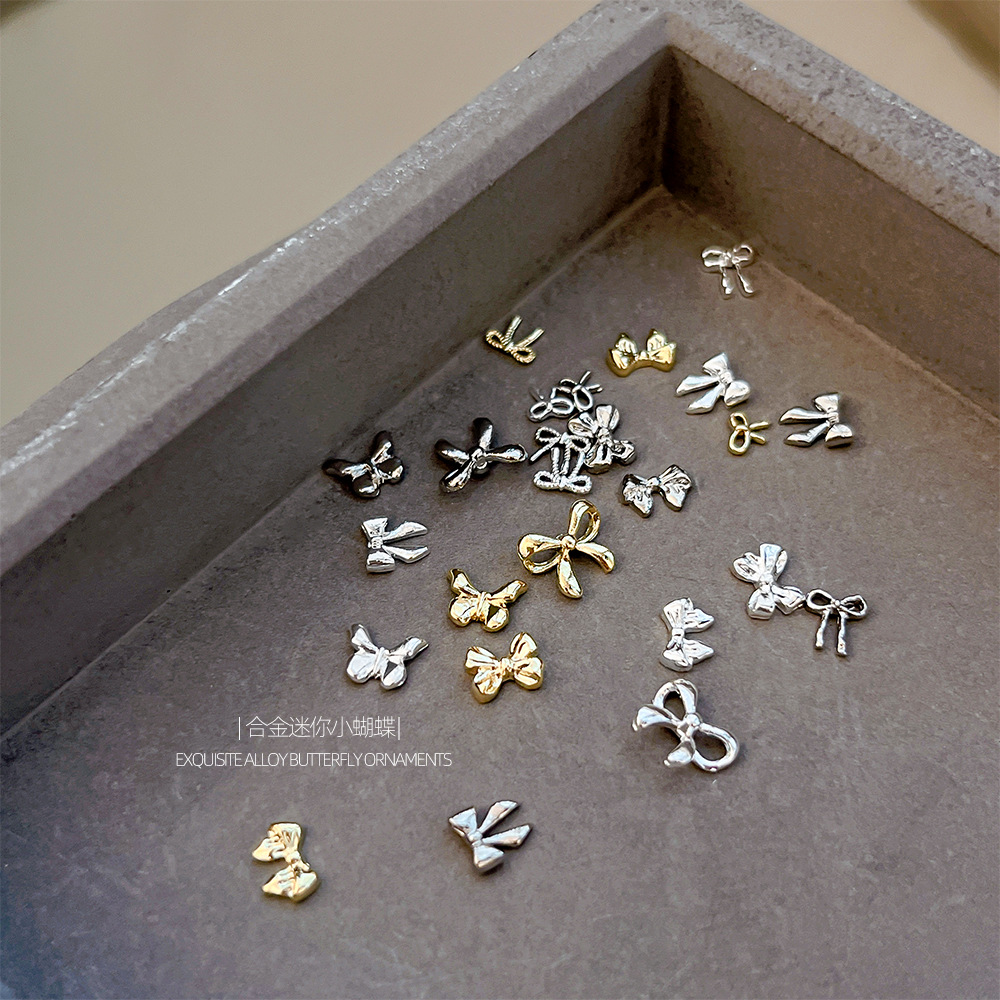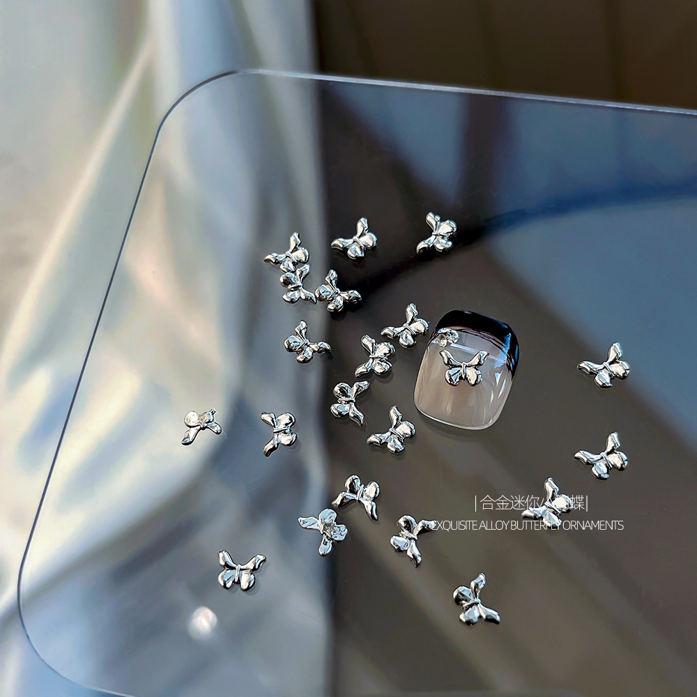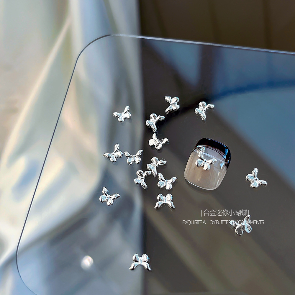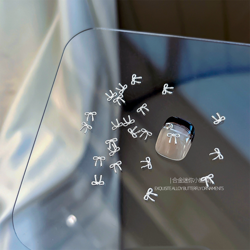 인터넷 연예인 미니 합금 나비 넥타이 네일 아트 쥬얼리 실버 3 차원 빛 럭셔리 네일 아트 네일 장식 도매스토어 가기