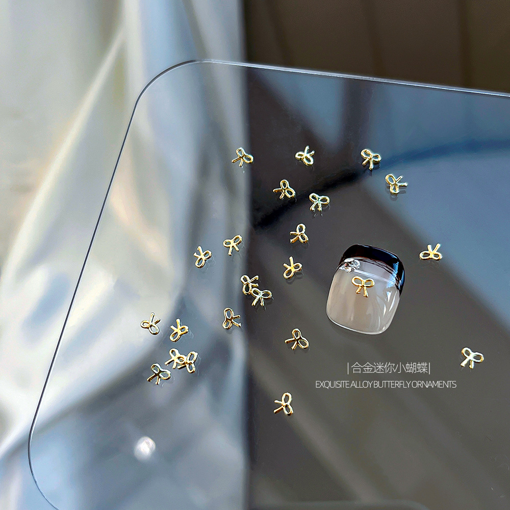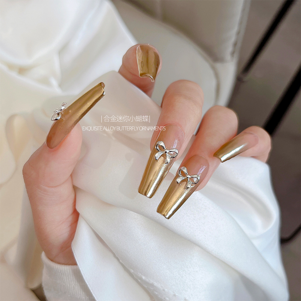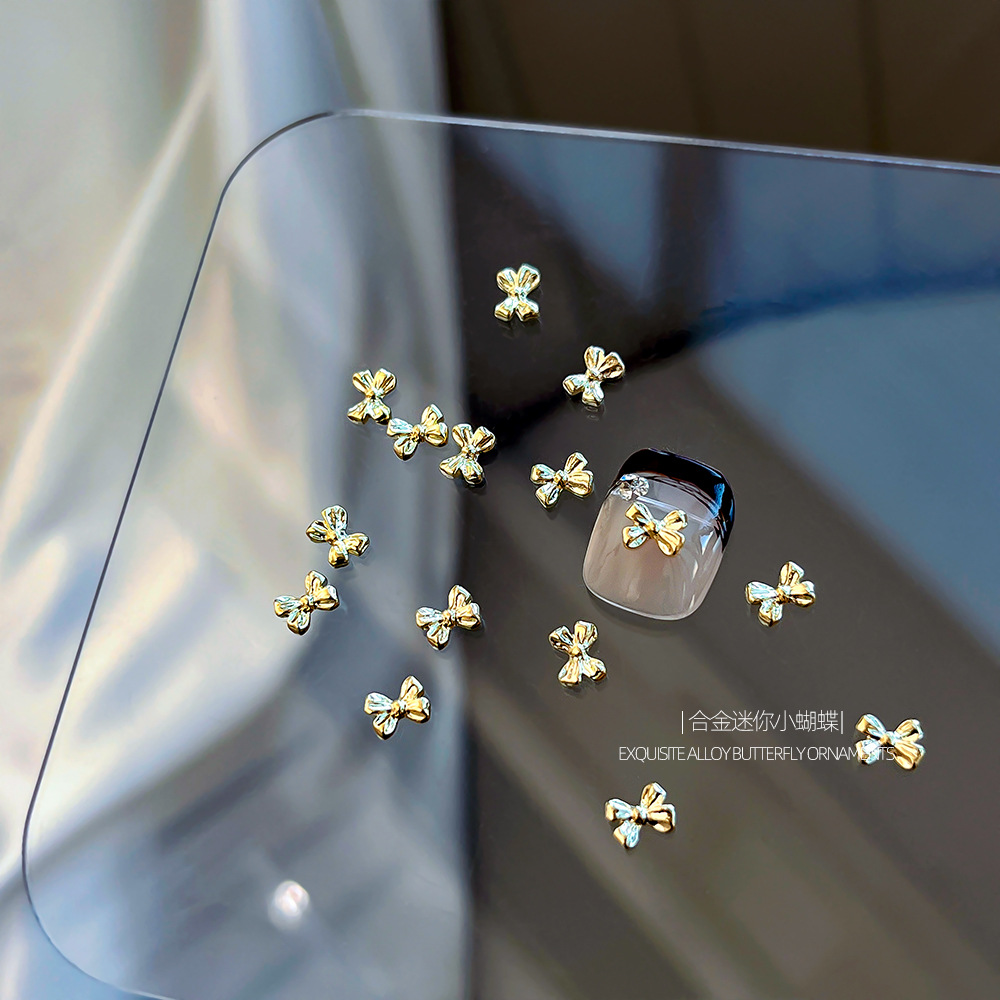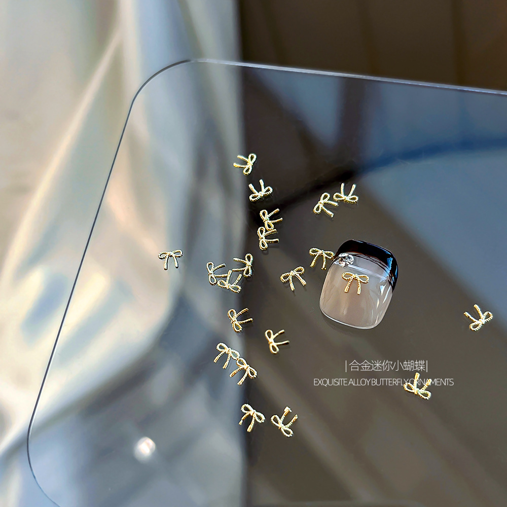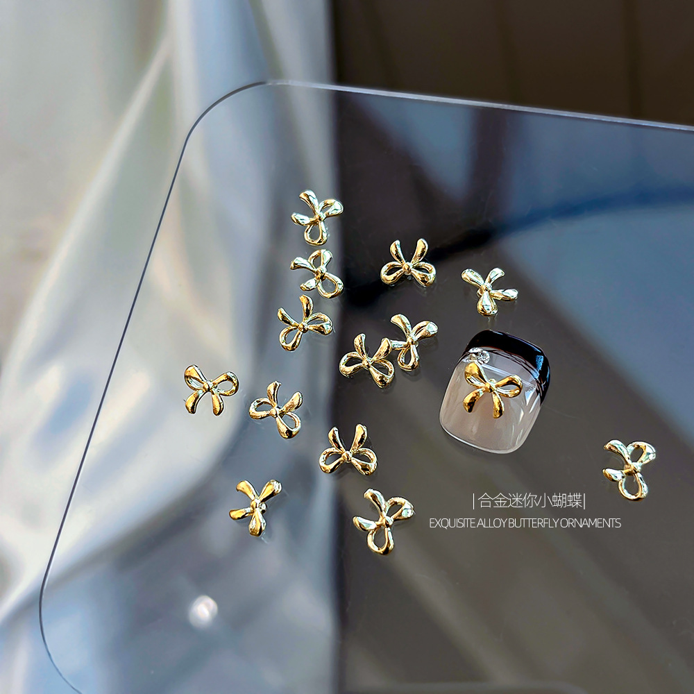 인터넷 연예인 미니 합금 나비 넥타이 네일 아트 쥬얼리 실버 3 차원 빛 럭셔리 네일 아트 네일 장식 도매스토어 가기