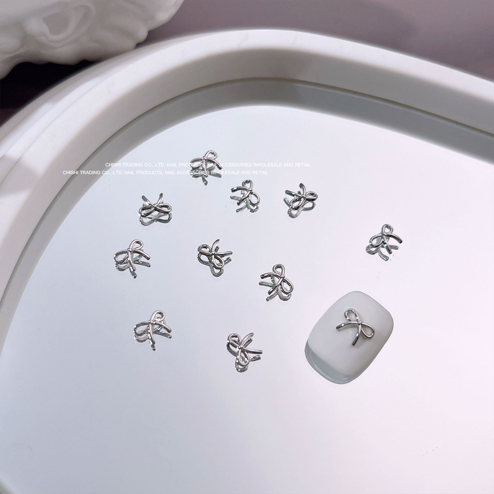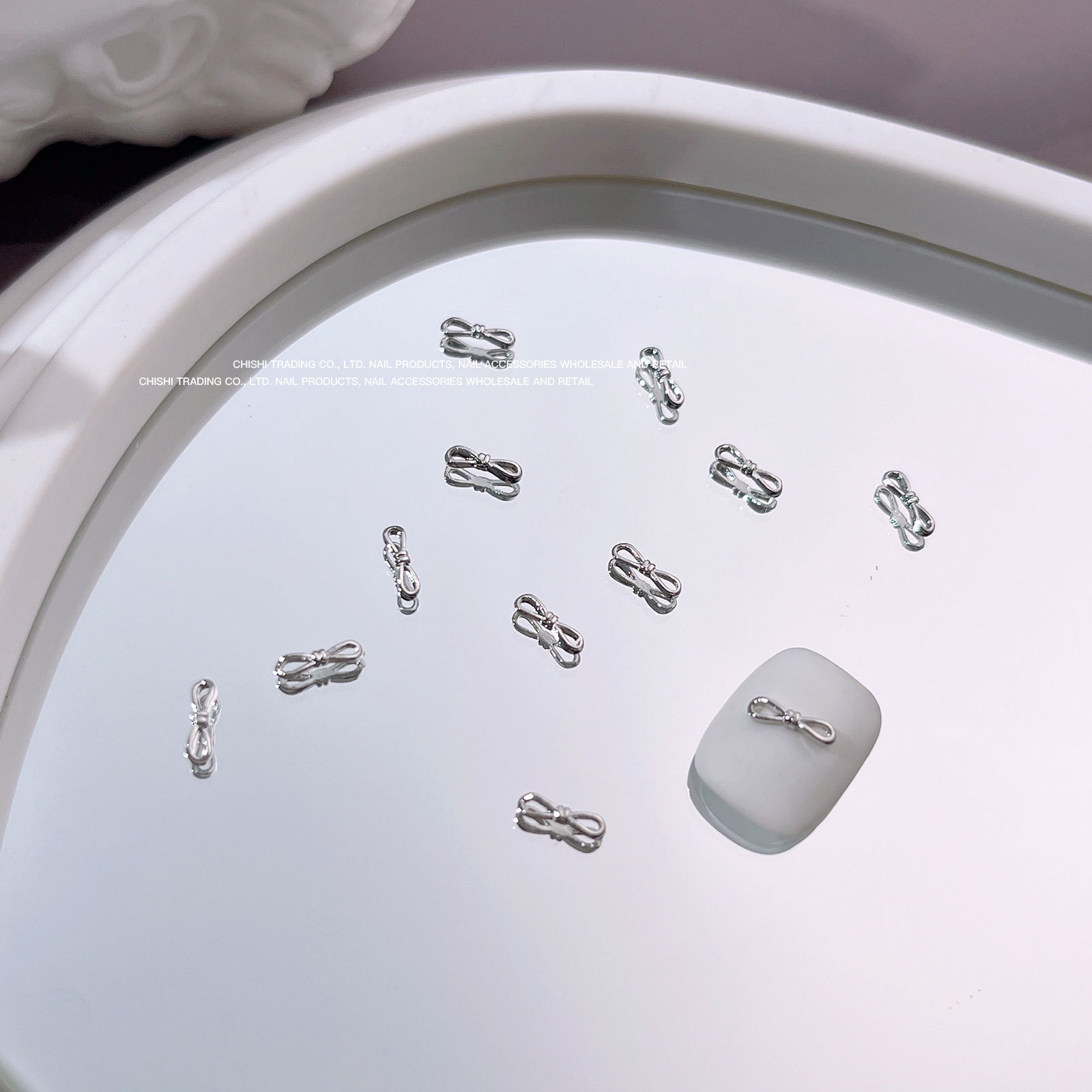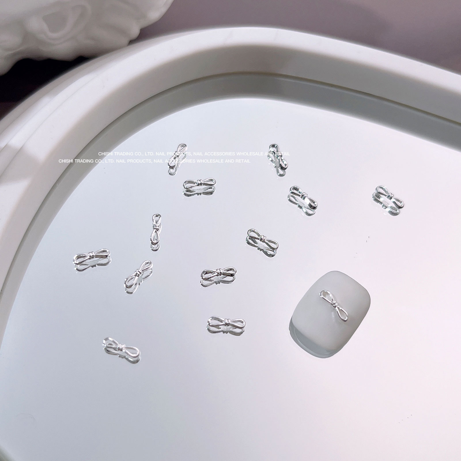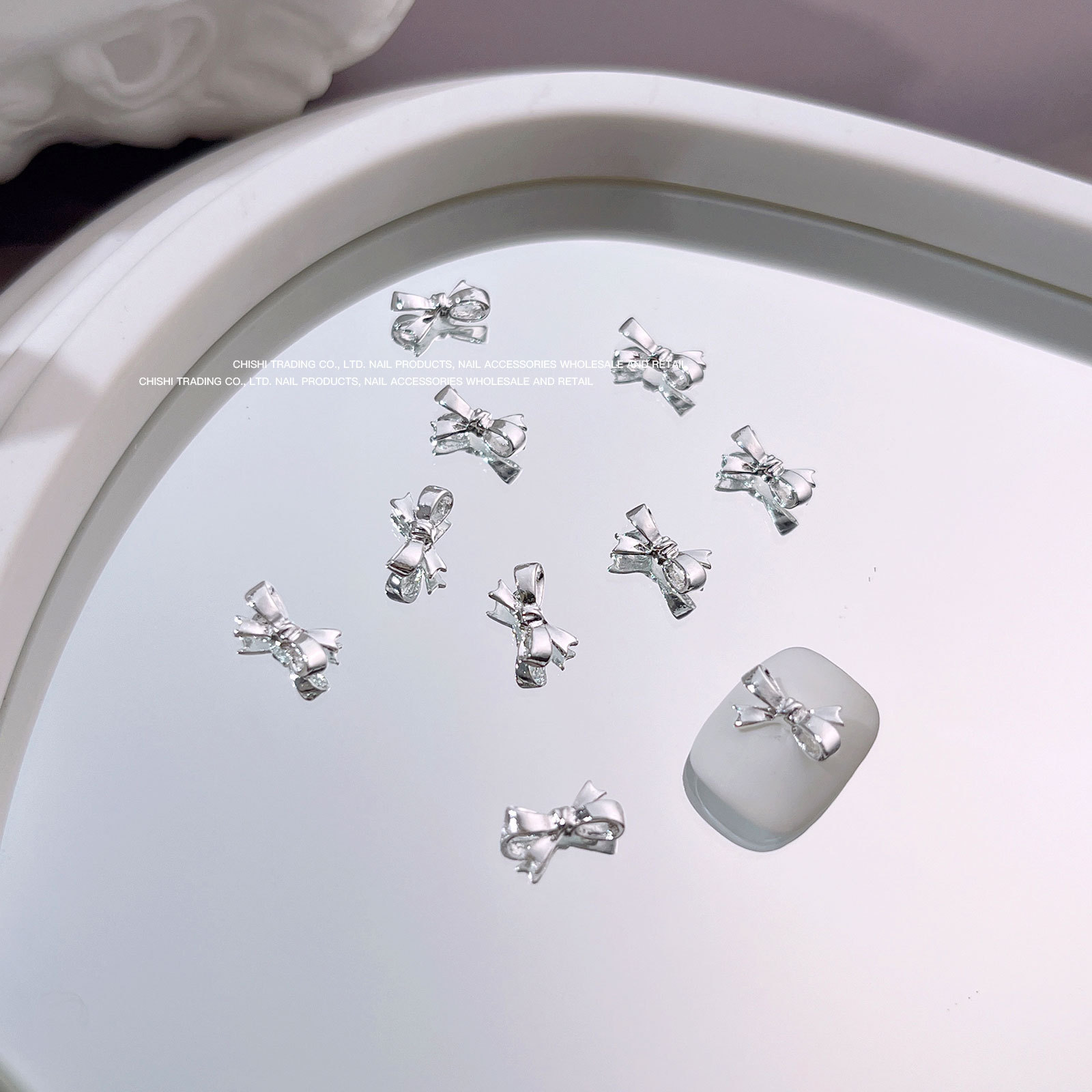 인터넷 연예인 미니 합금 나비 넥타이 네일 아트 쥬얼리 실버 3 차원 빛 럭셔리 네일 아트 네일 장식 도매
