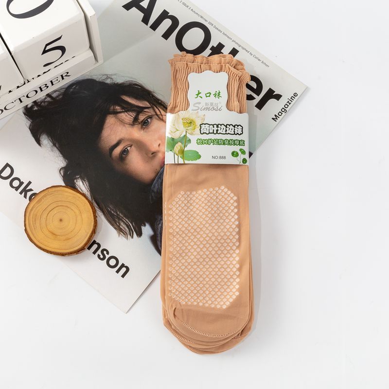 여름 얇은 양말 여성의 중년 및 노인 실크스타킹 안티-훅 안티-슬립 마사지 하단 비 리클라이닝 여성용 중간 길이의 스타킹스토어 가기
