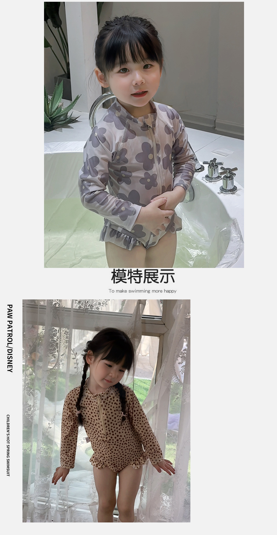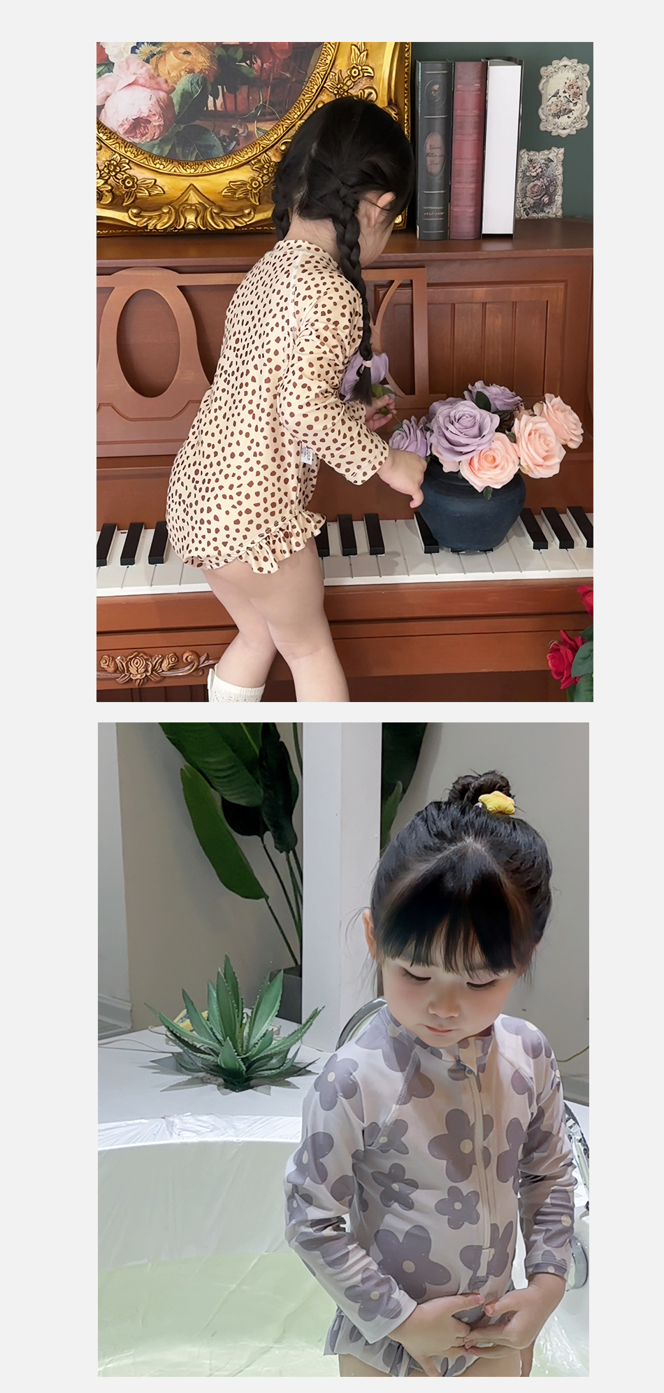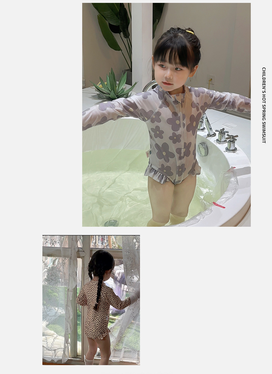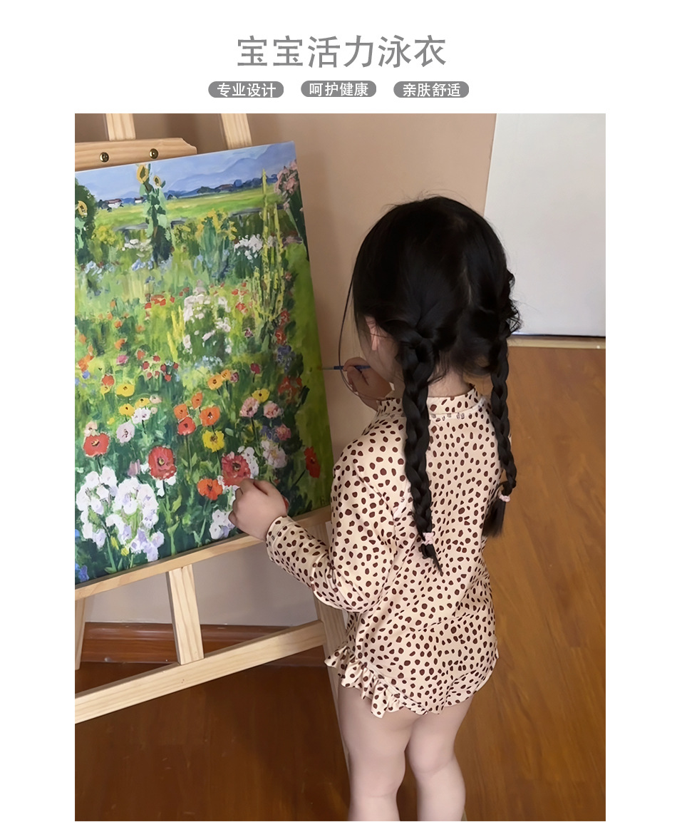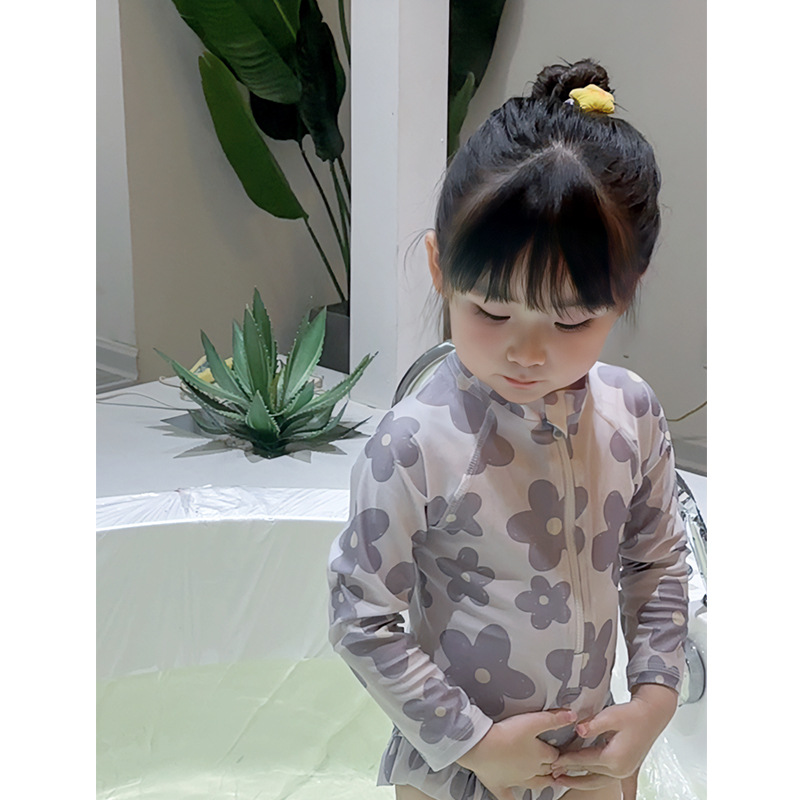 여자 원피스 수영복 한국식 여름 아기 소녀의 레오파드 무늬 긴팔 수영복스토어 가기