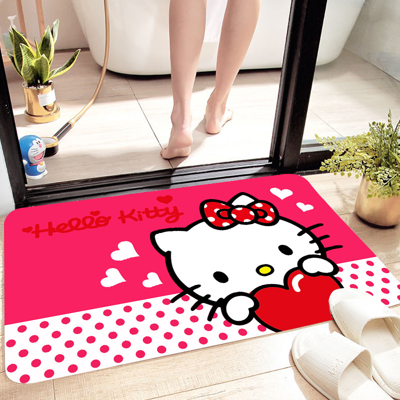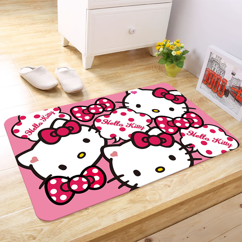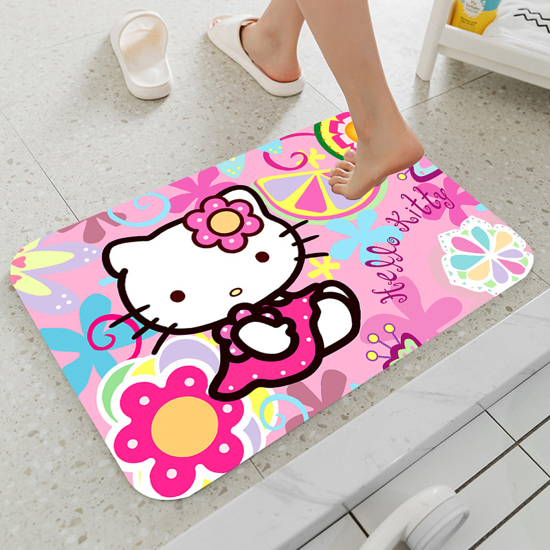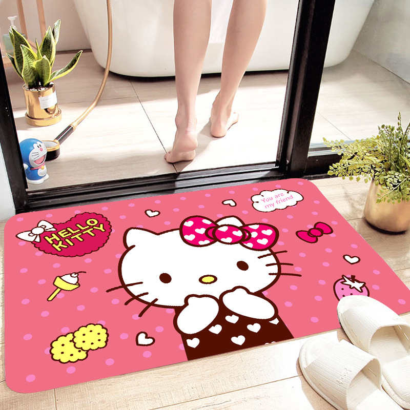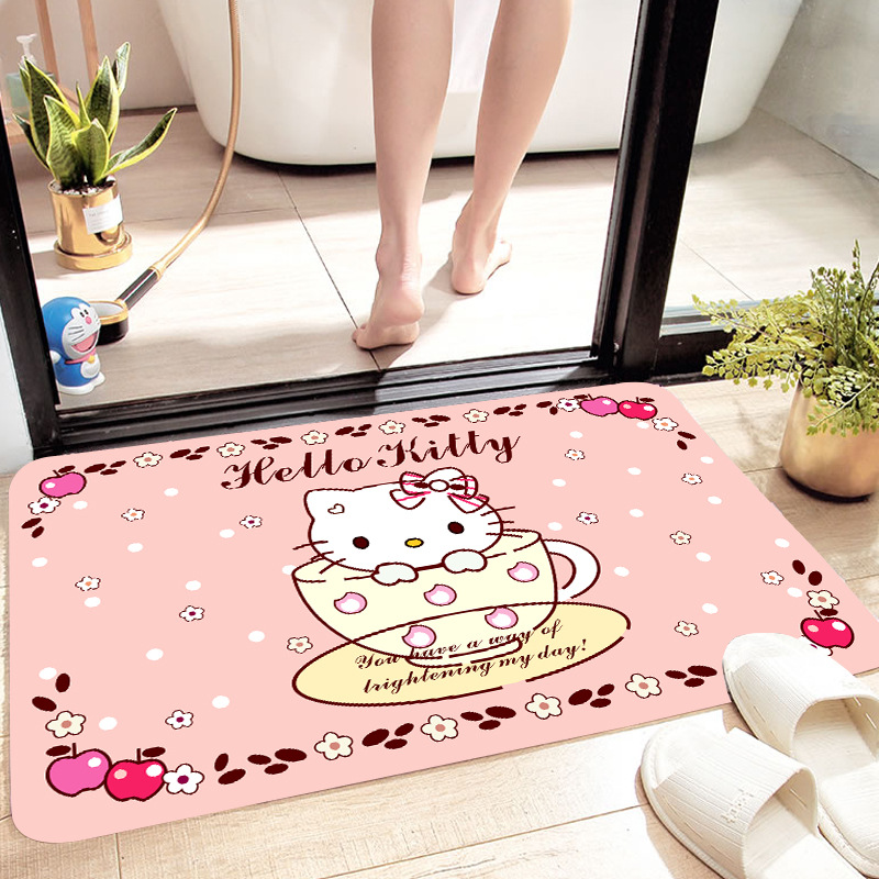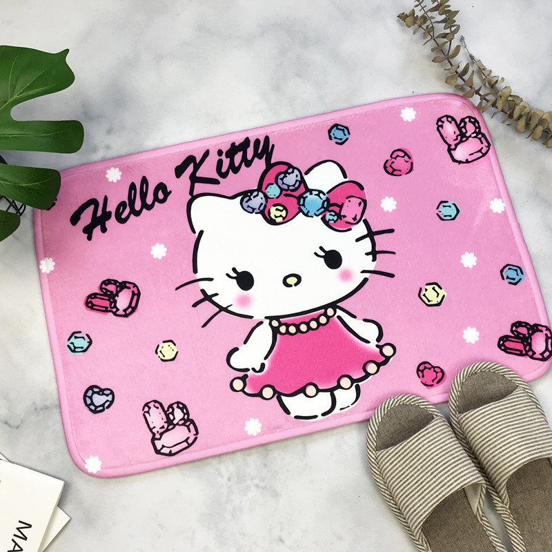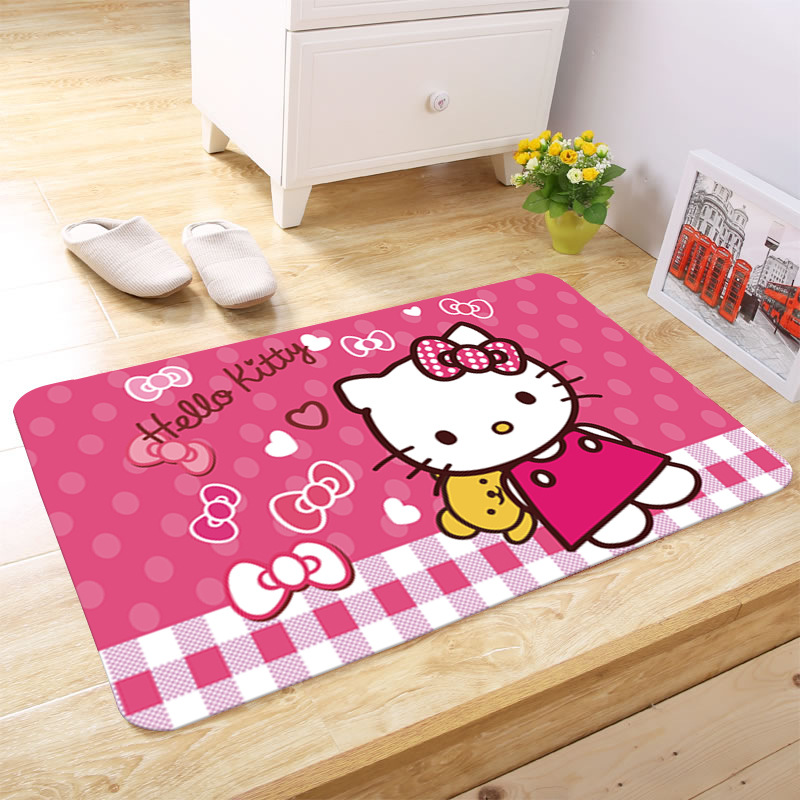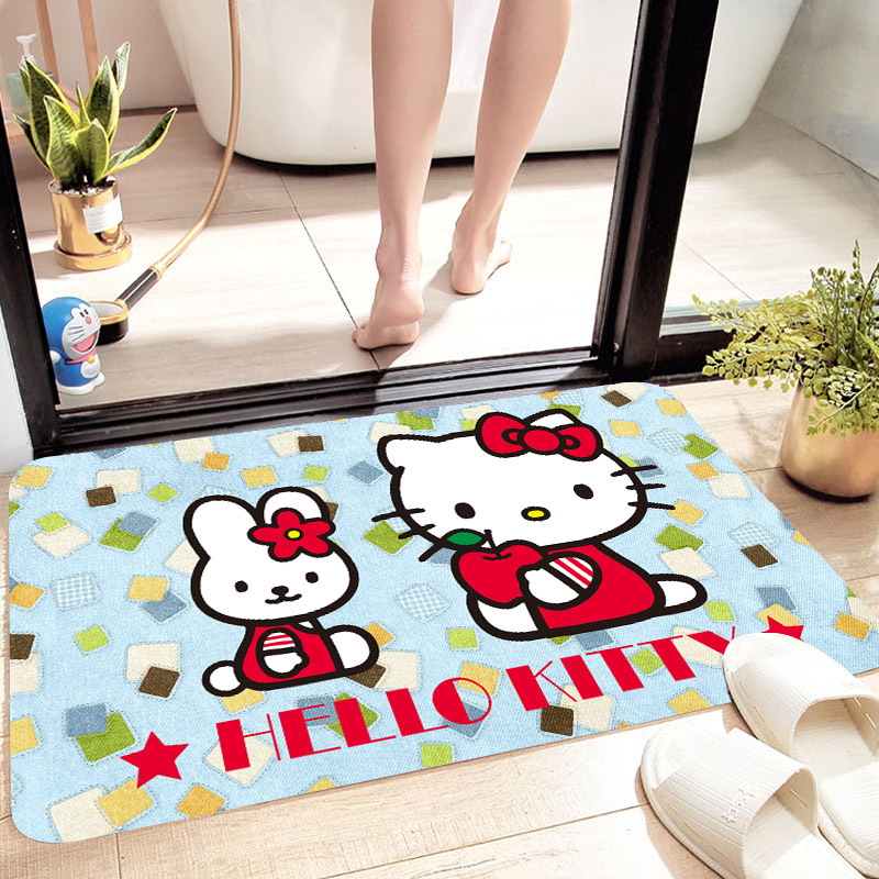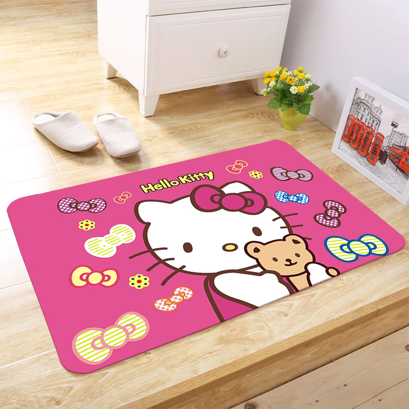 헬로키티 만화 캐릭터 프린트 플란넬 스폰지 흡수성 미끄럼 방지 도어매트스토어 가기