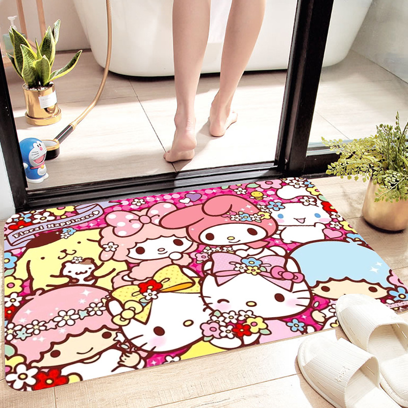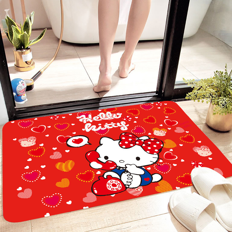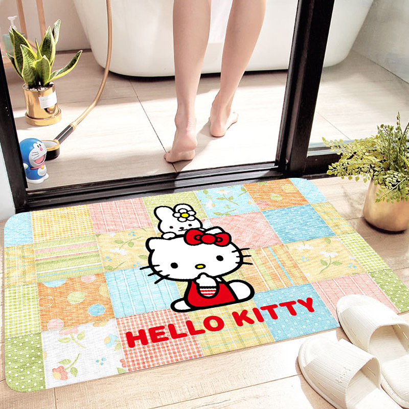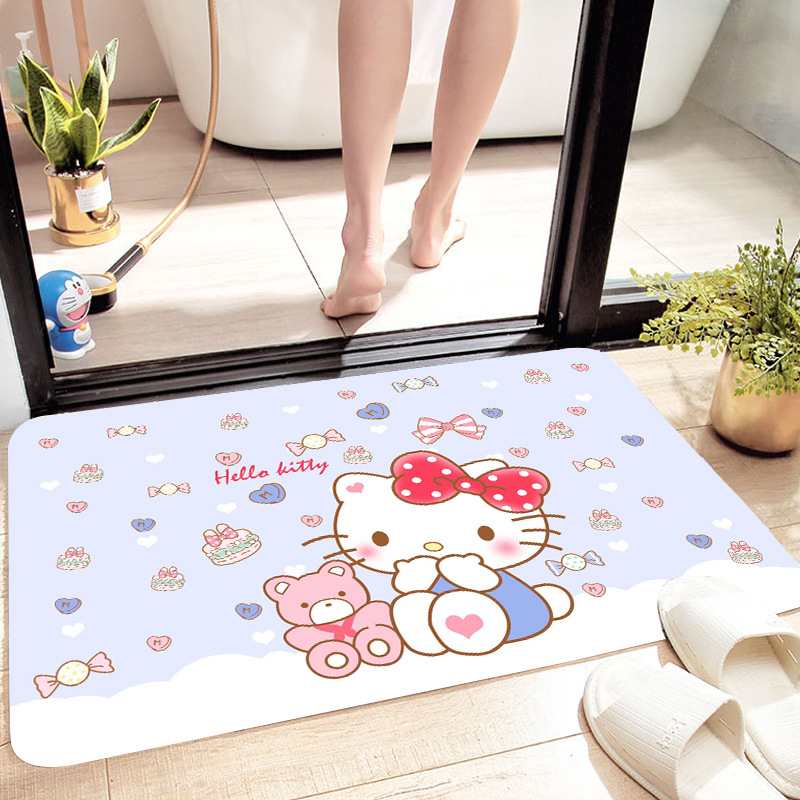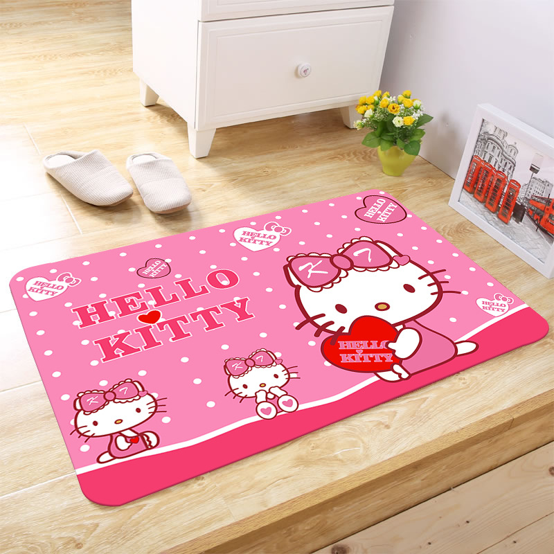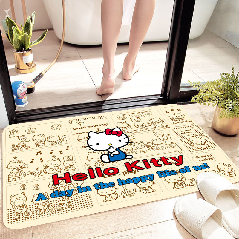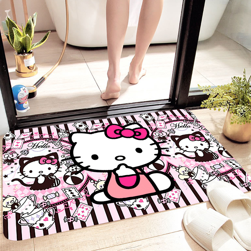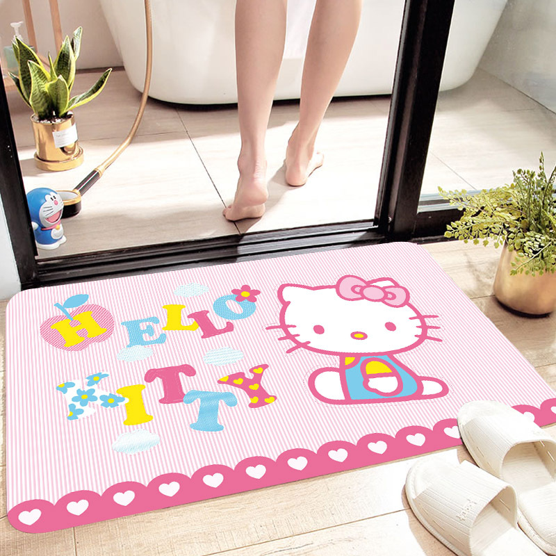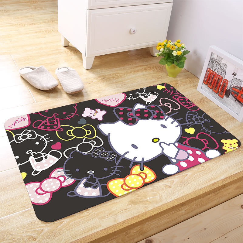 헬로키티 만화 캐릭터 프린트 플란넬 스폰지 흡수성 미끄럼 방지 도어매트스토어 가기