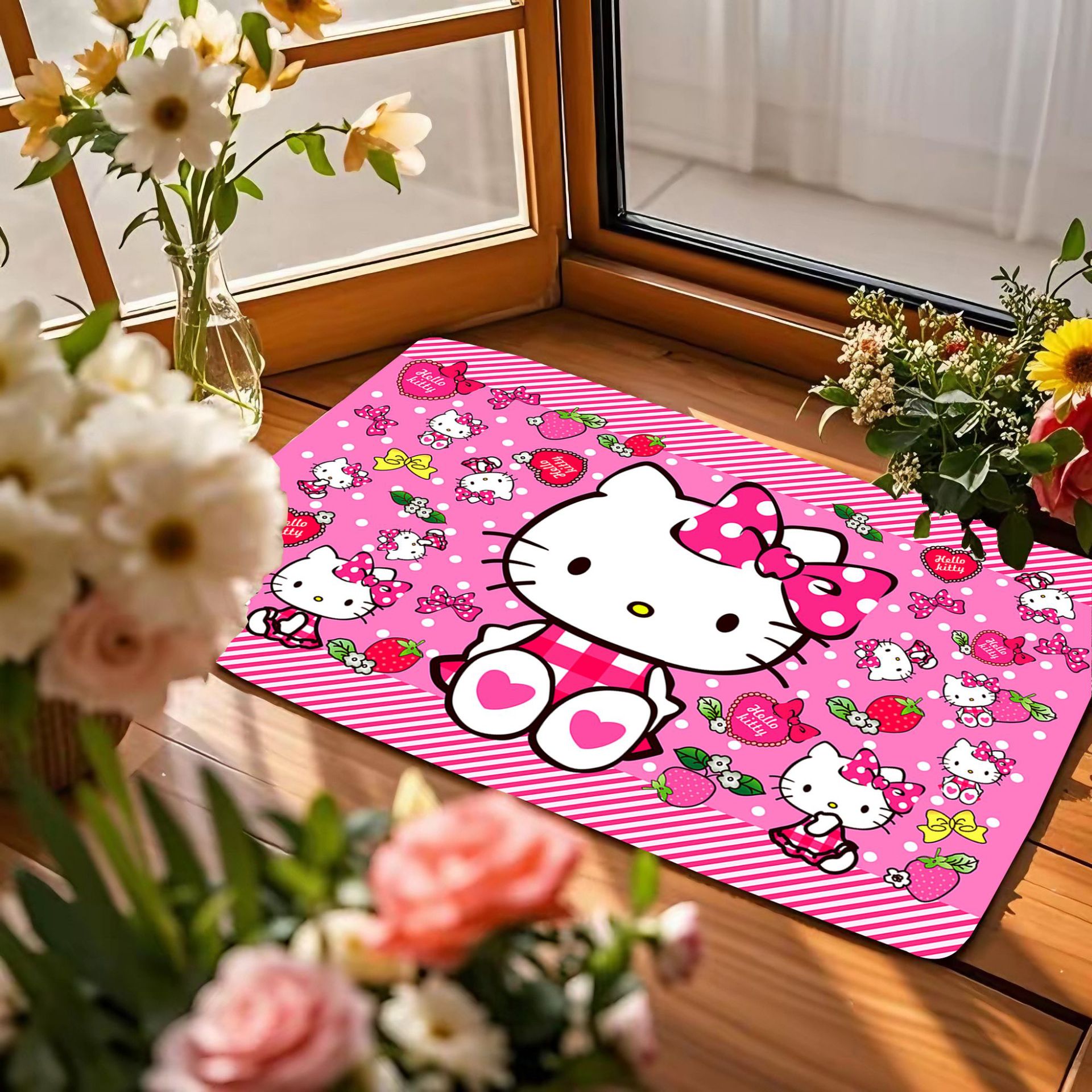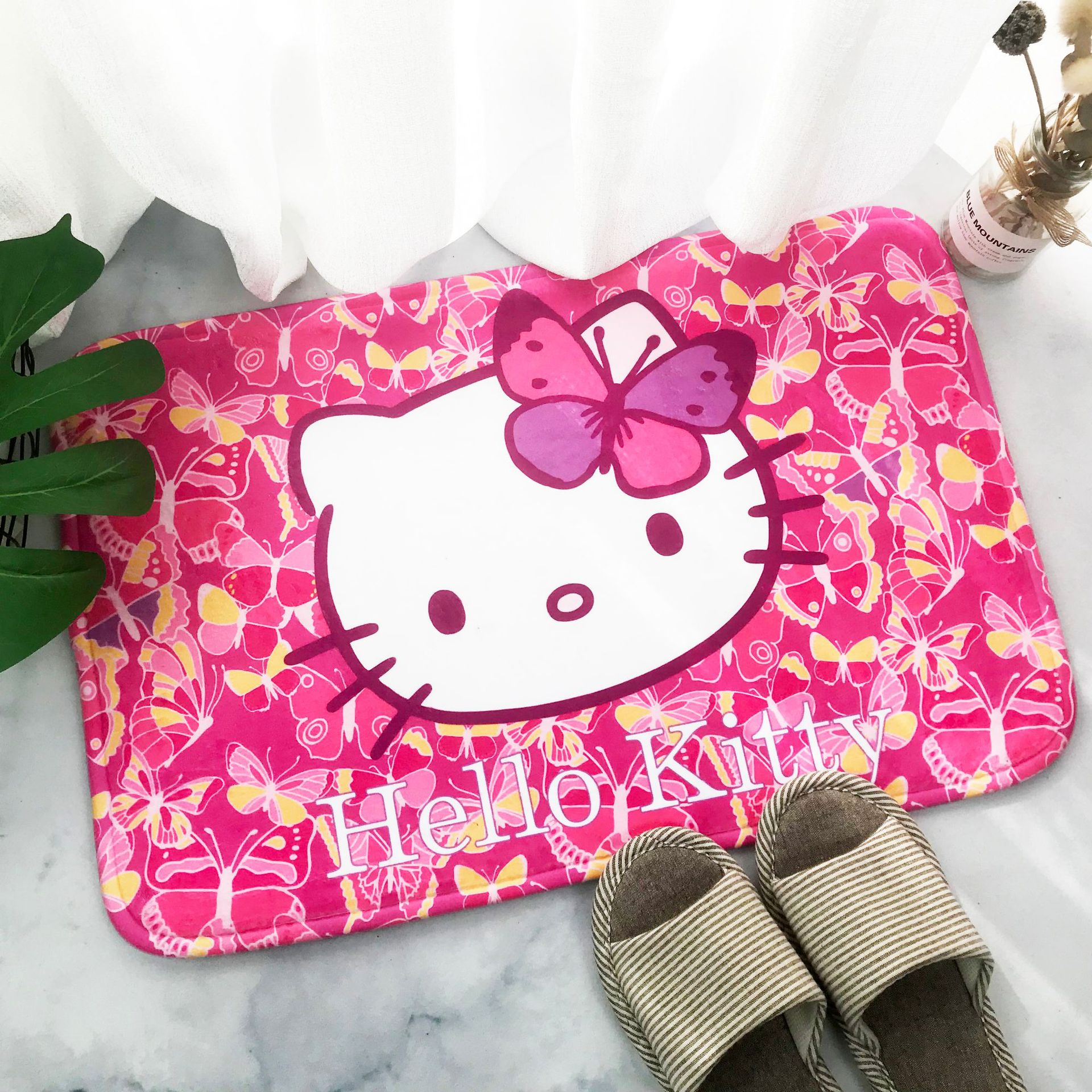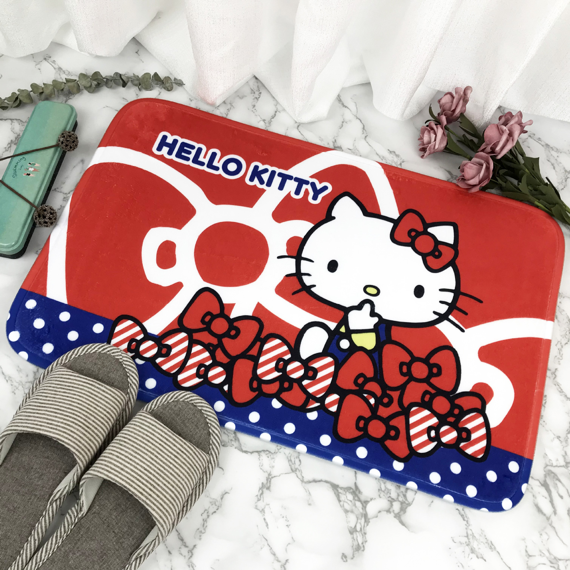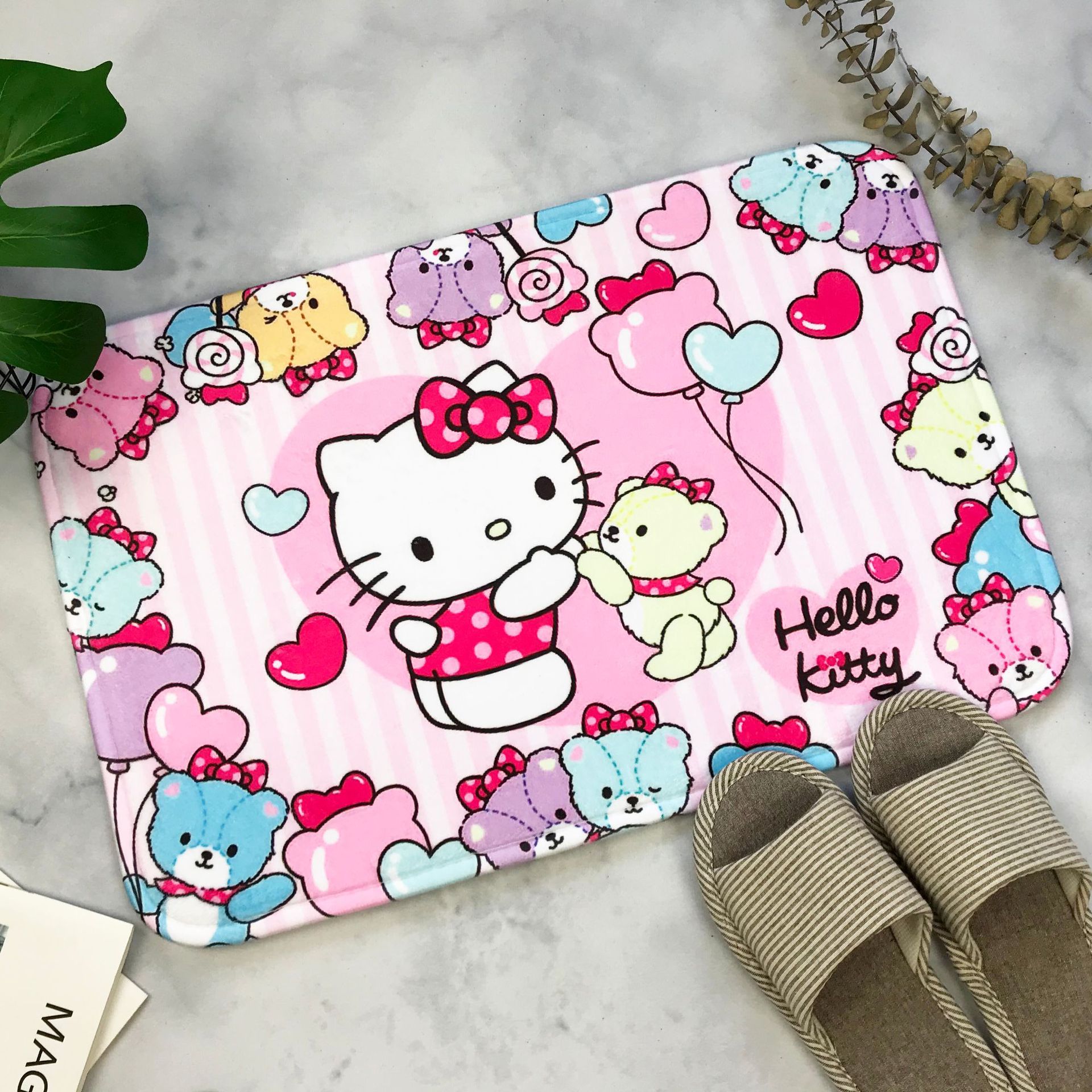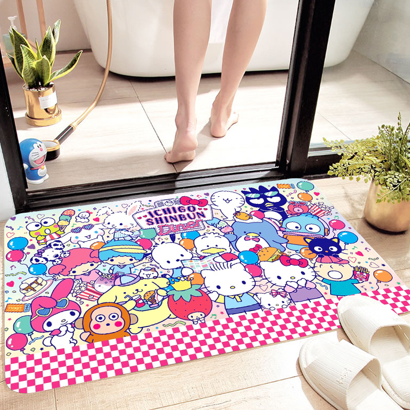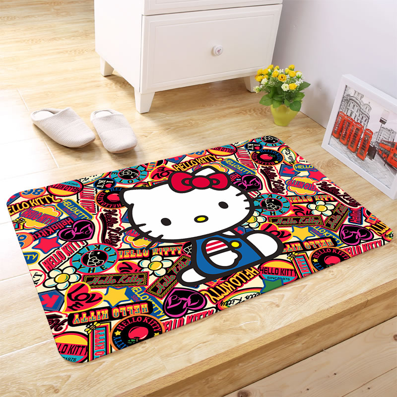 헬로키티 만화 캐릭터 프린트 플란넬 스폰지 흡수성 미끄럼 방지 도어매트스토어 가기