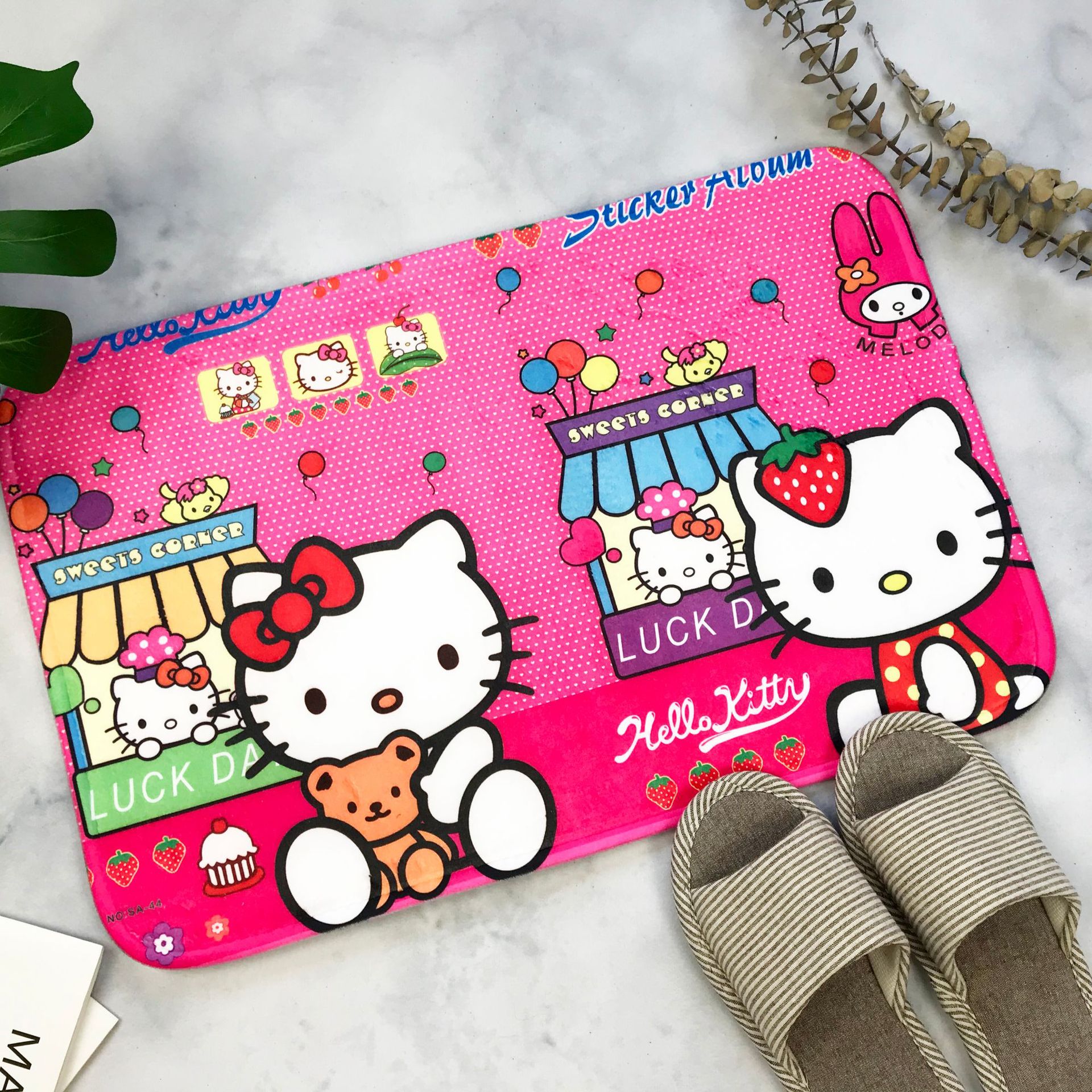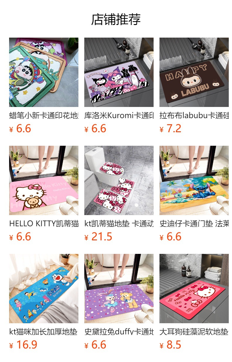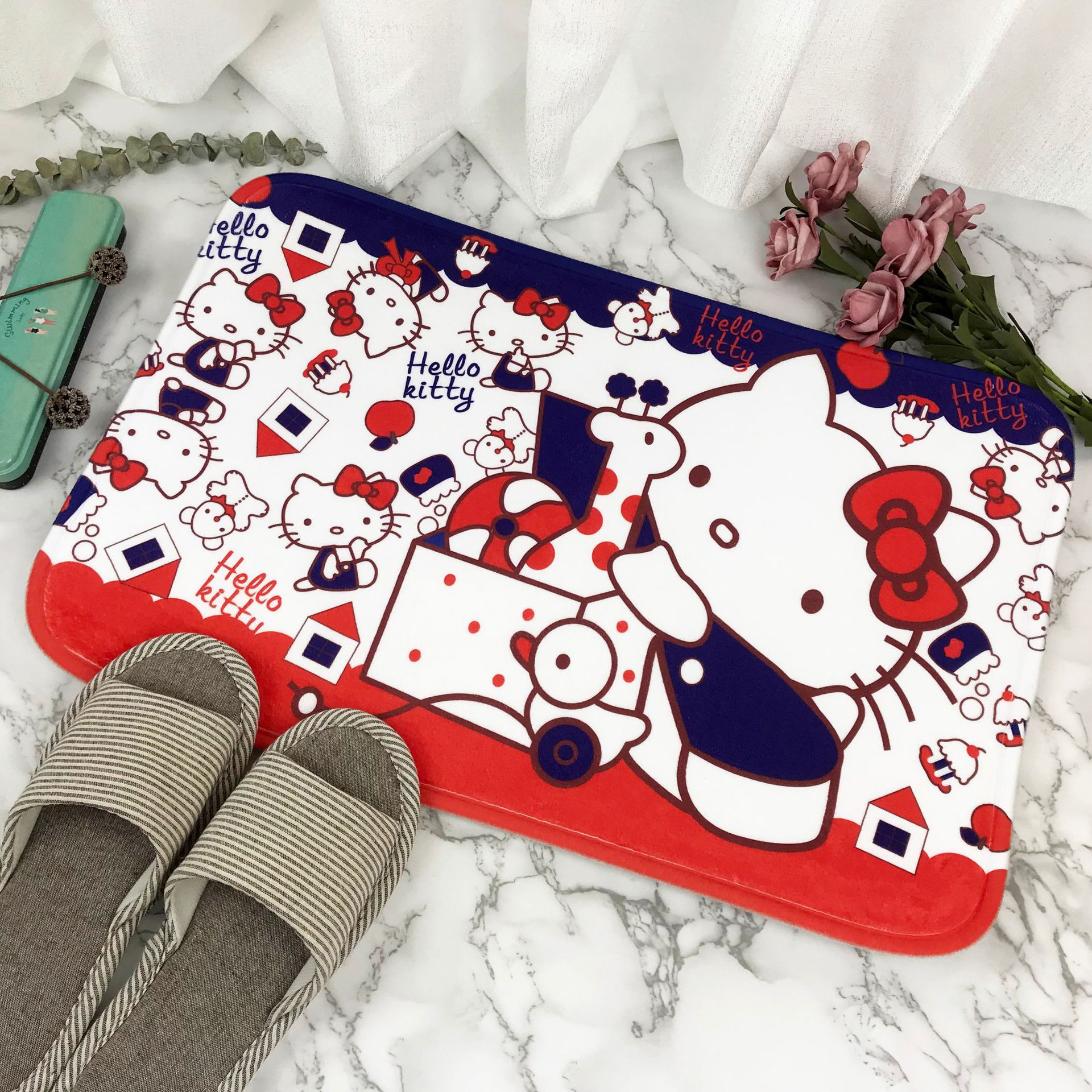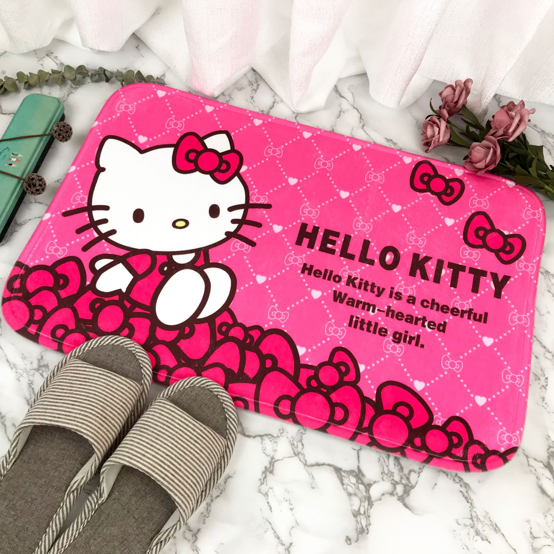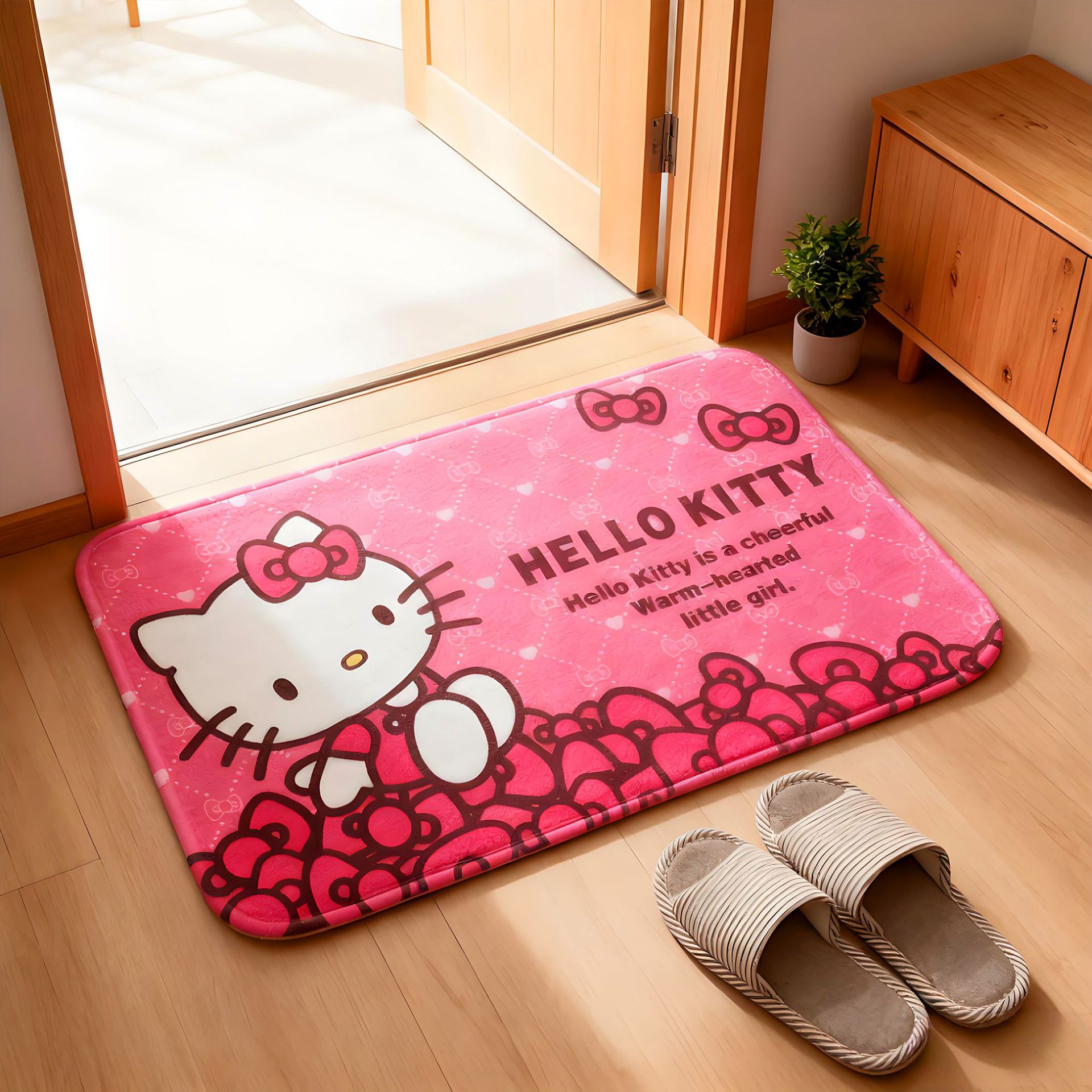 헬로키티 만화 캐릭터 프린트 플란넬 스폰지 흡수성 미끄럼 방지 도어매트스토어 가기