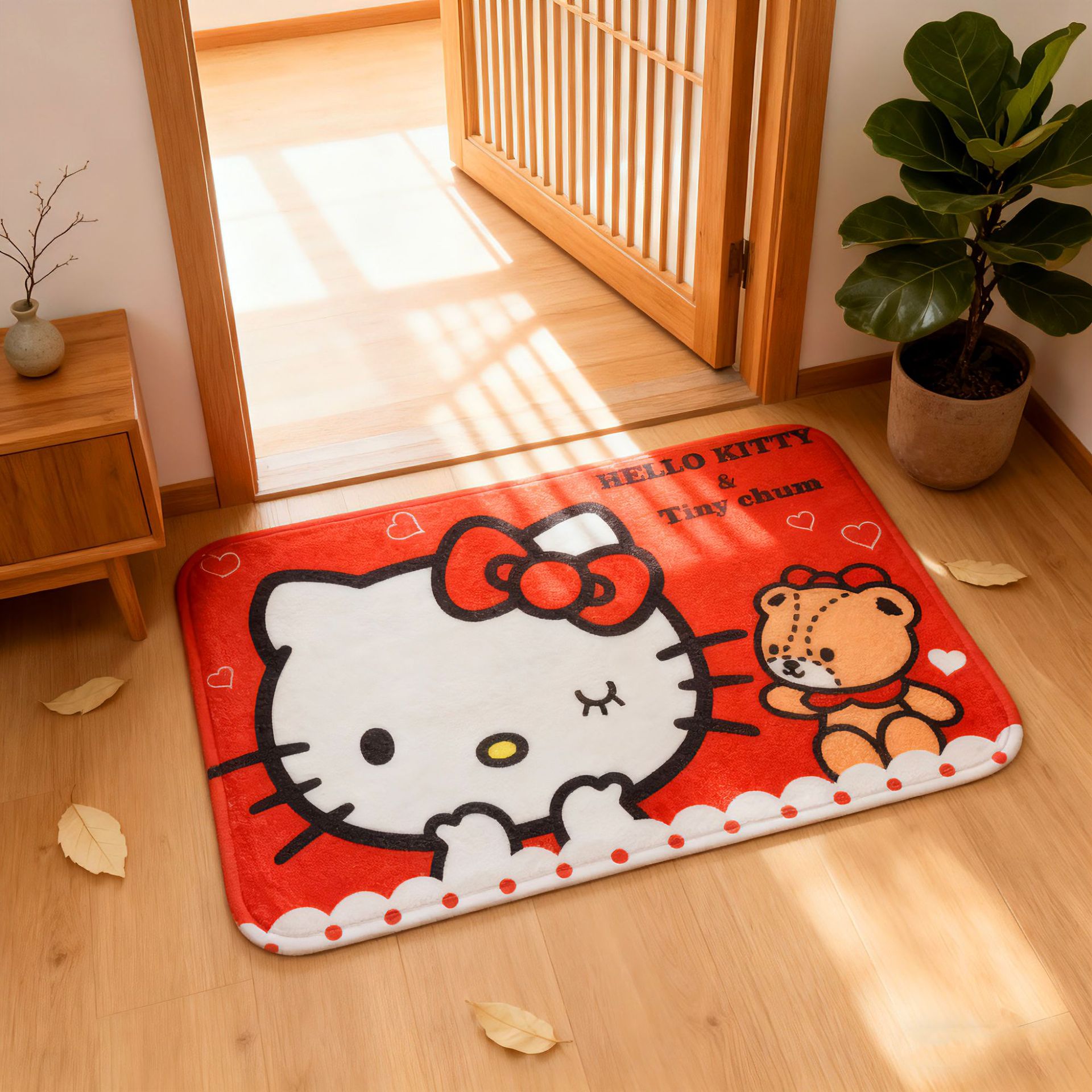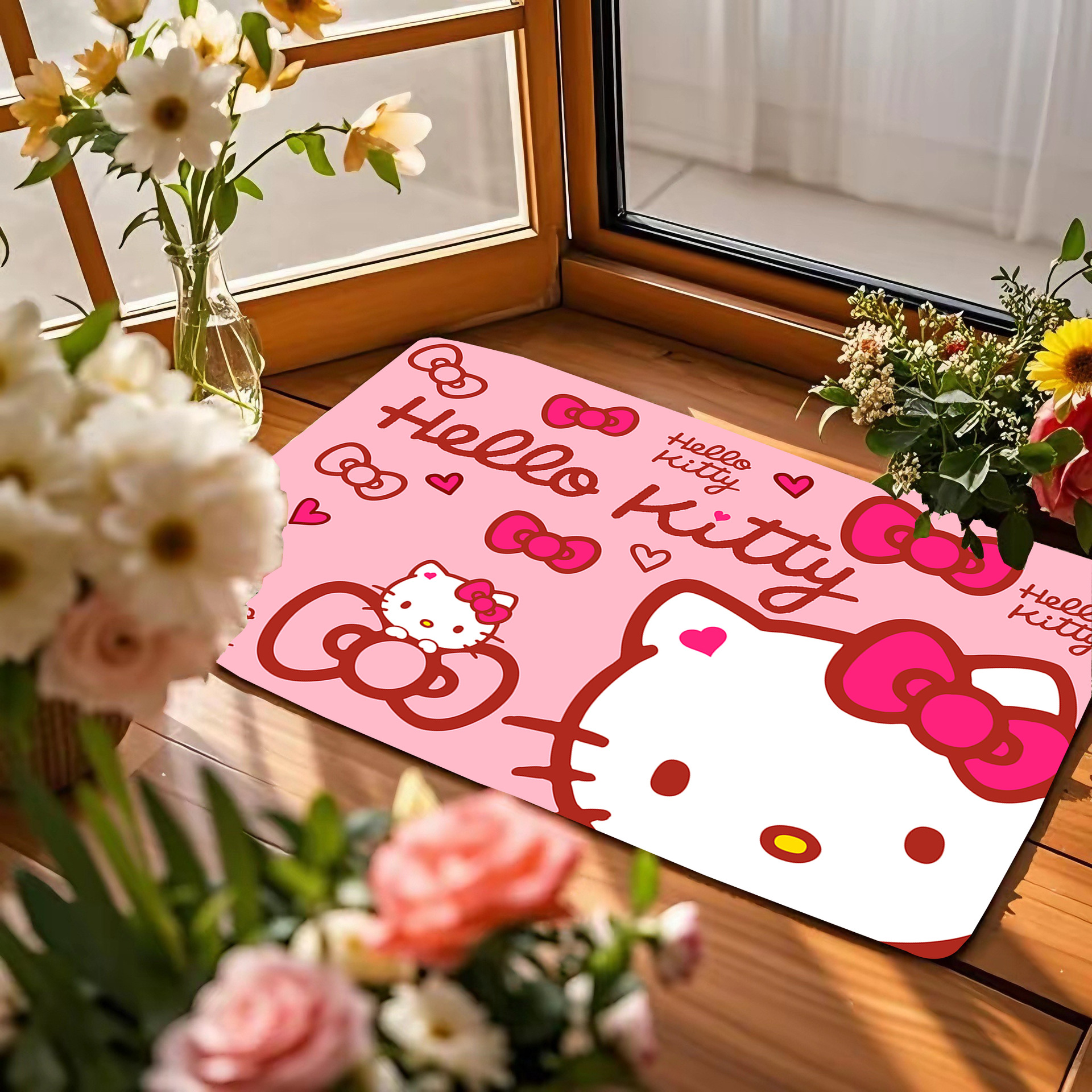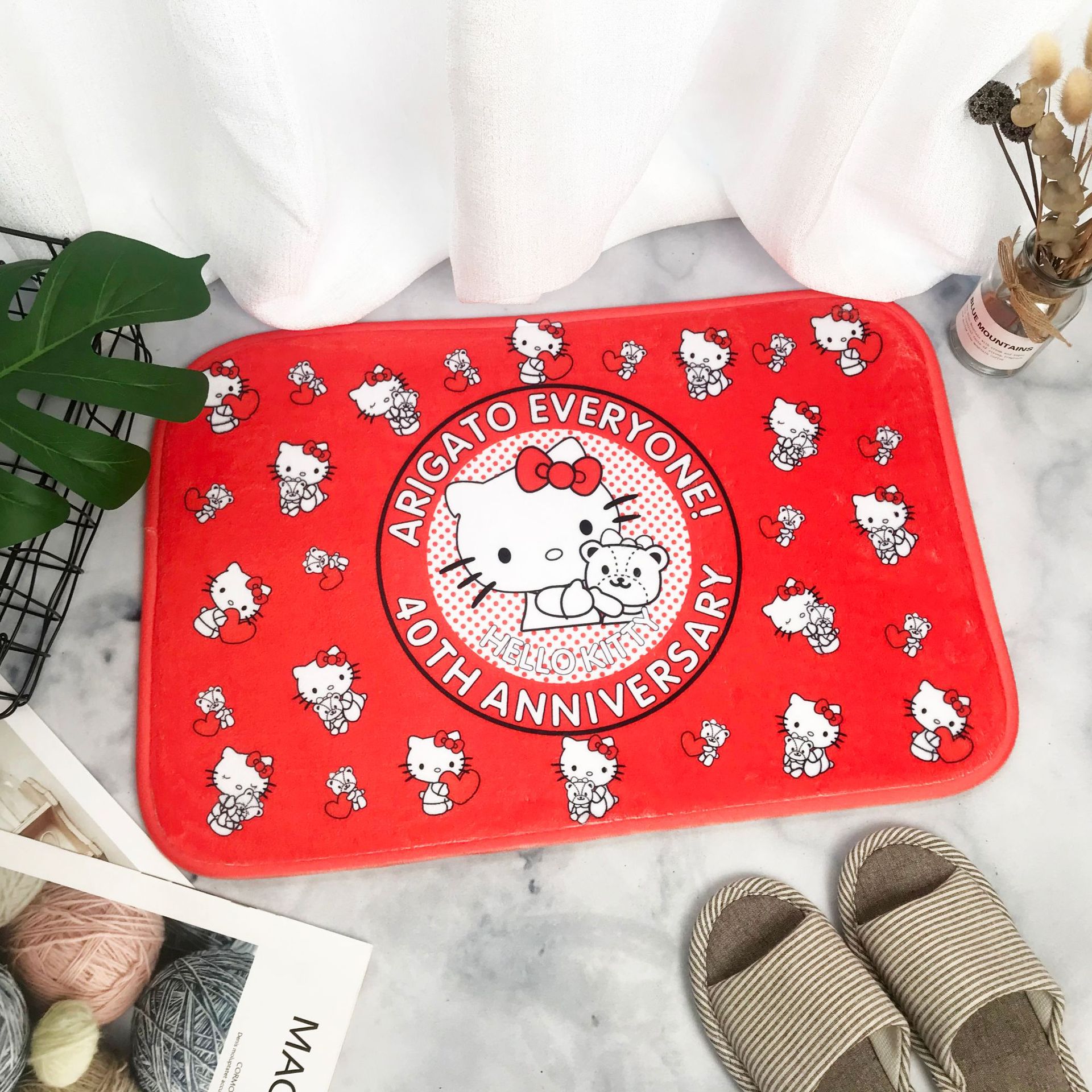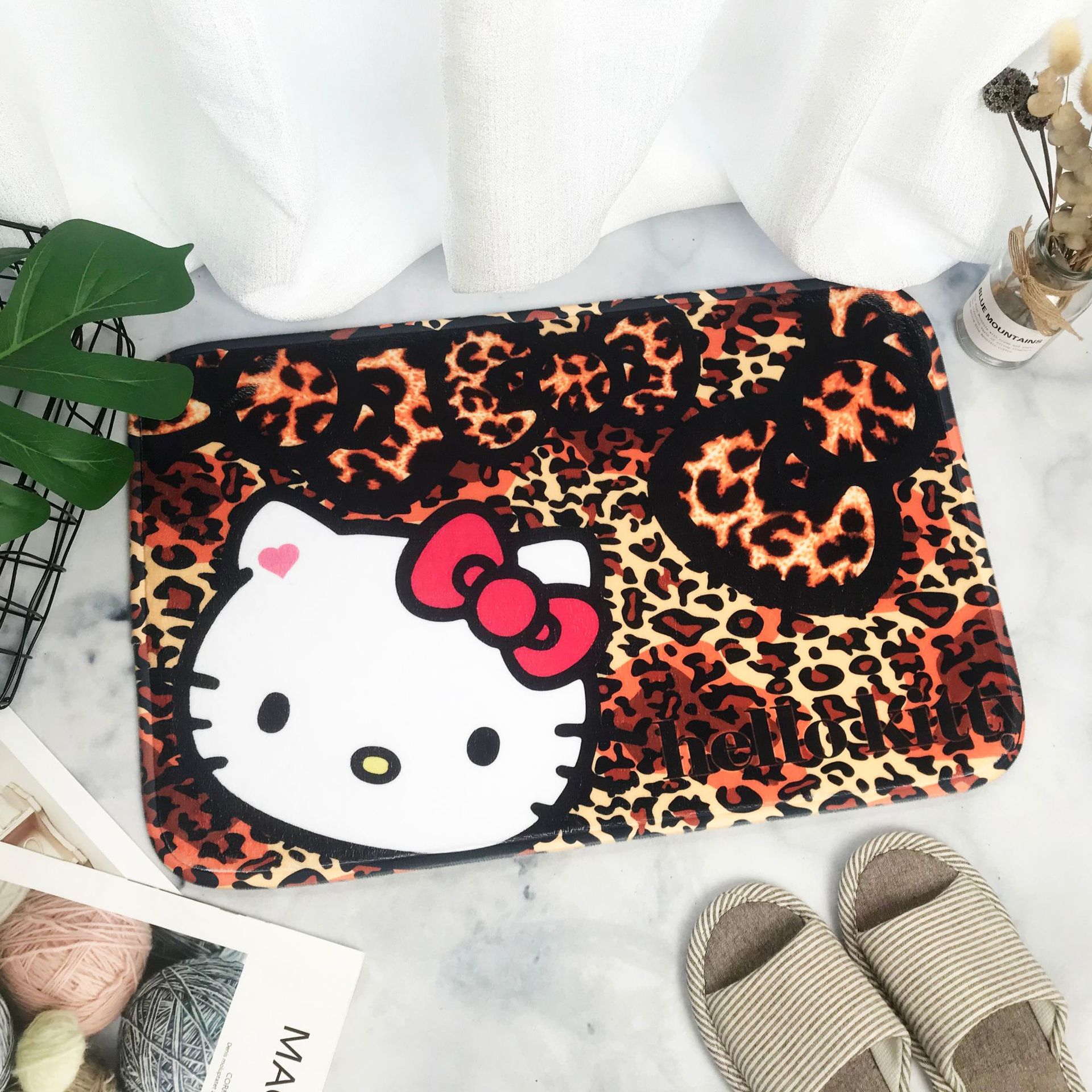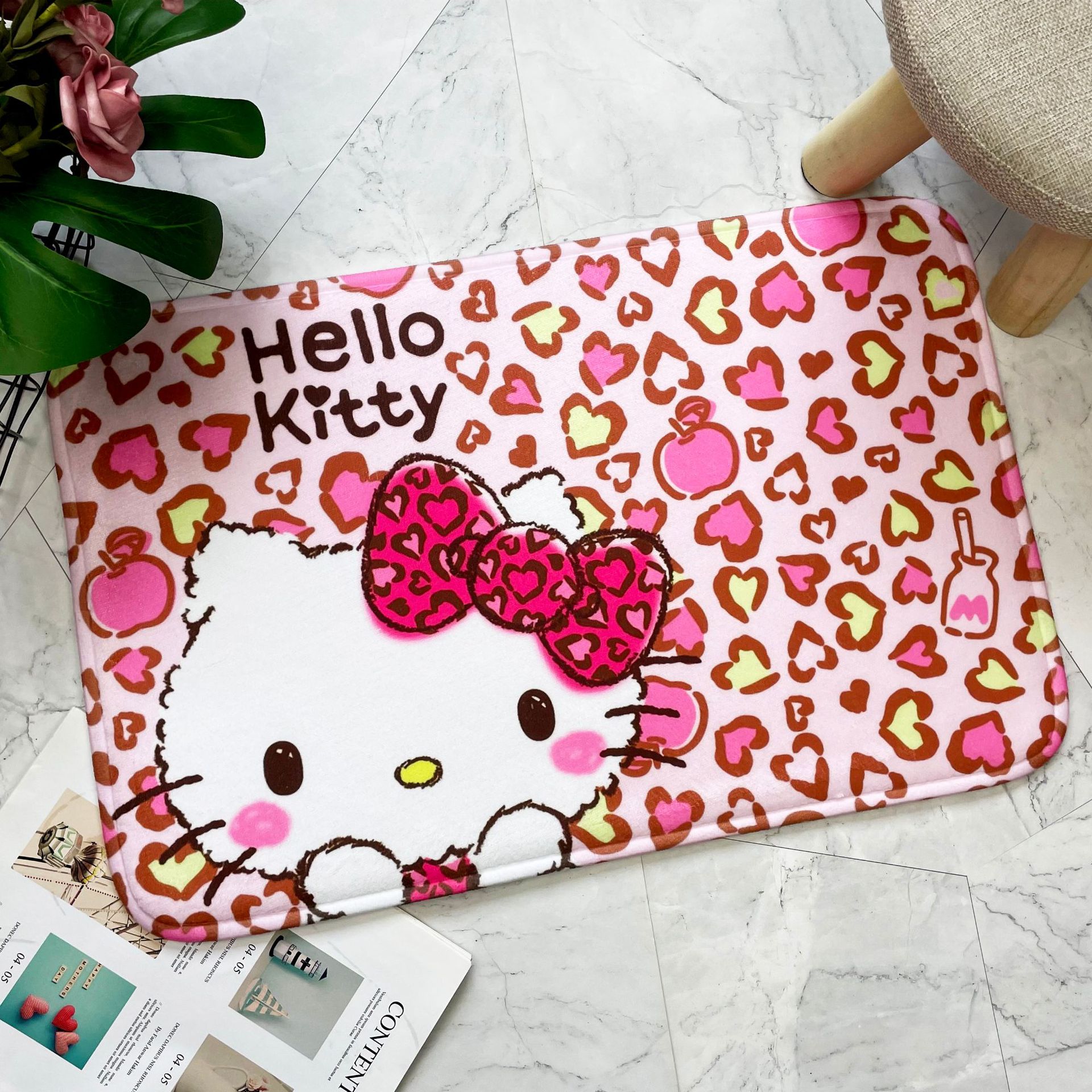 헬로키티 만화 캐릭터 프린트 플란넬 스폰지 흡수성 미끄럼 방지 도어매트스토어 가기
