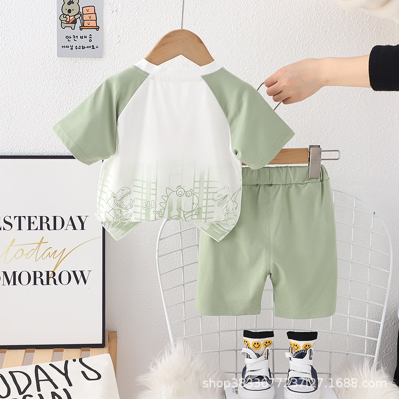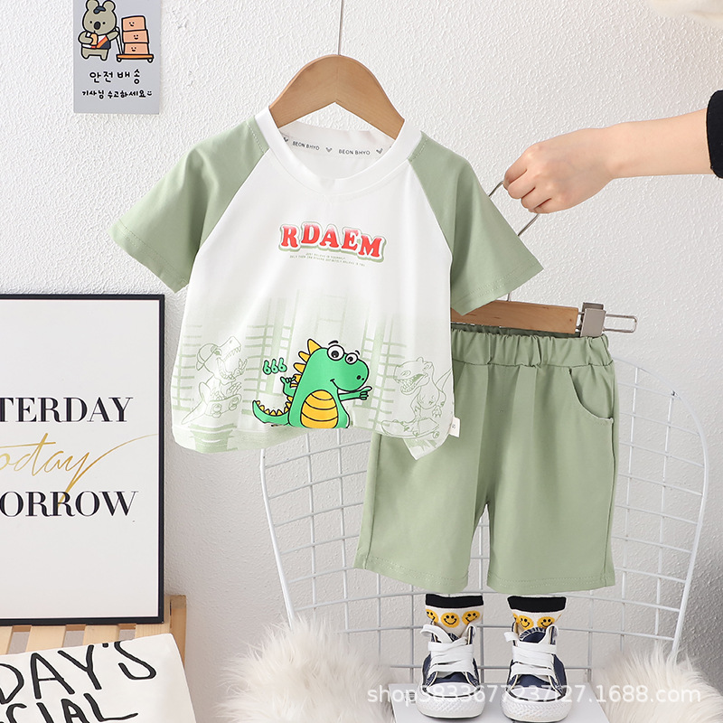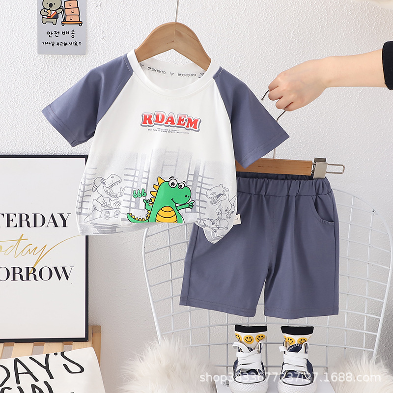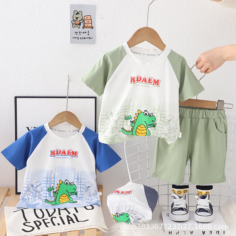 소년 여름 2 조각 아기 옷 1-4 세 3 남성 보물 여름 얇은 공룡 짧은 소매 세트 머리카락 세대