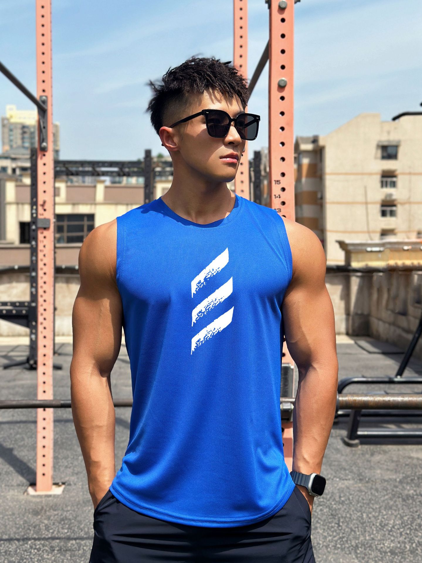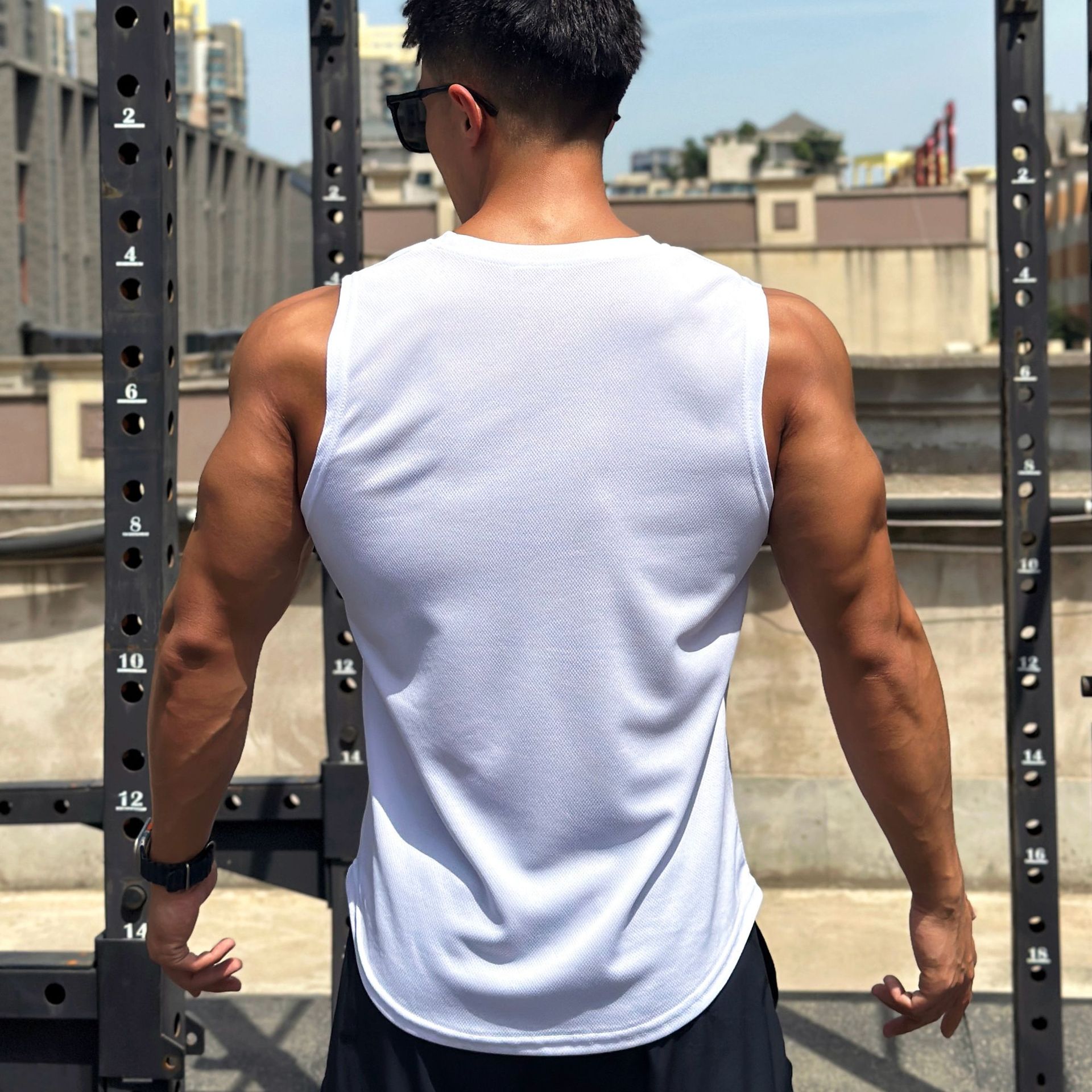 여름 새로운 유행 남자 풀오버 크루 넥 메쉬베이스 셔츠 스포츠 피트니스 탑 민소매 조끼 빠른 건조스토어 가기