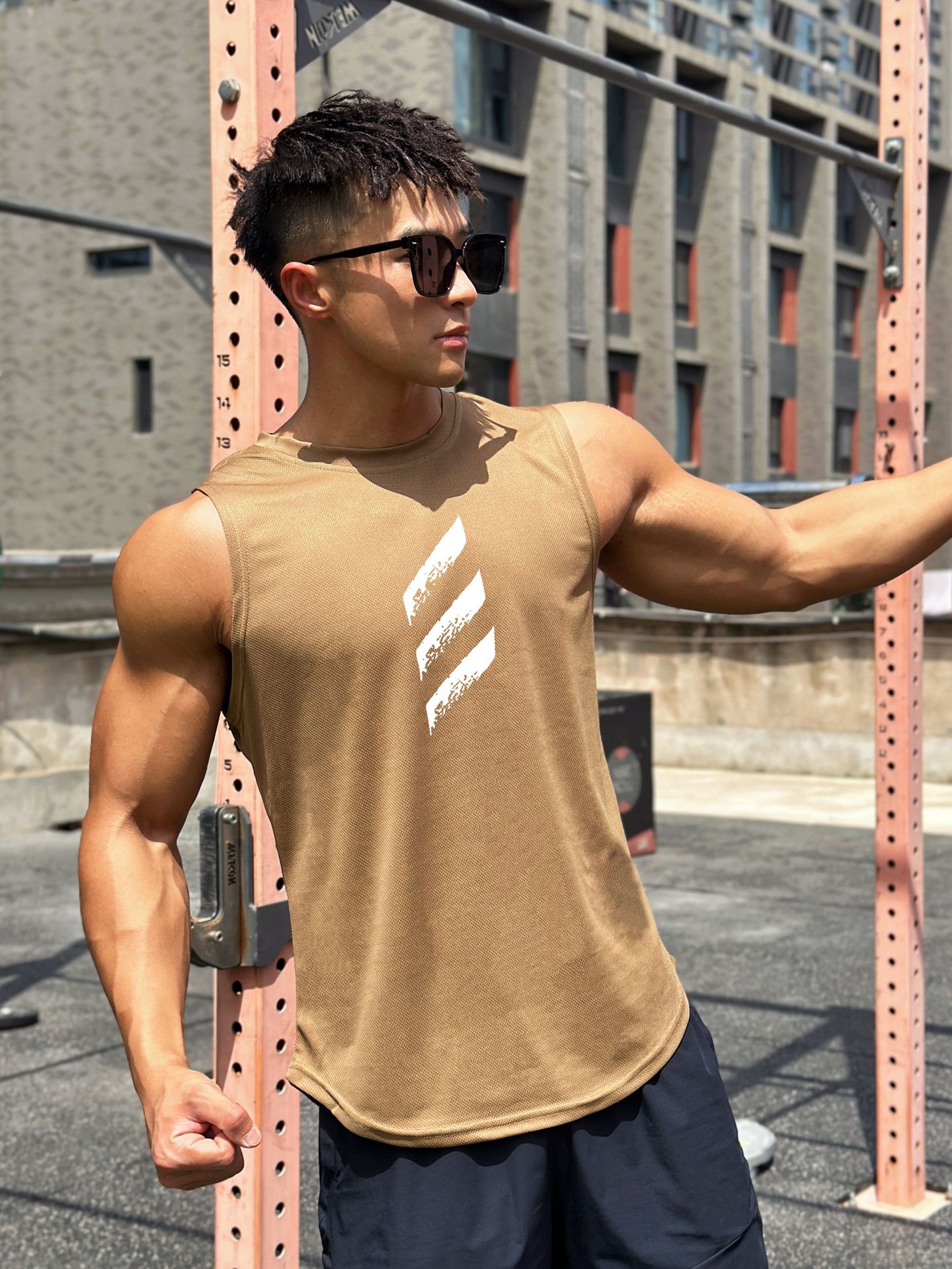 여름 새로운 유행 남자 풀오버 크루 넥 메쉬베이스 셔츠 스포츠 피트니스 탑 민소매 조끼 빠른 건조