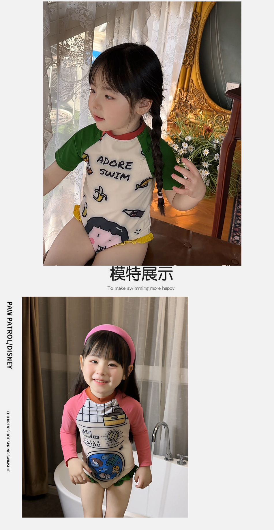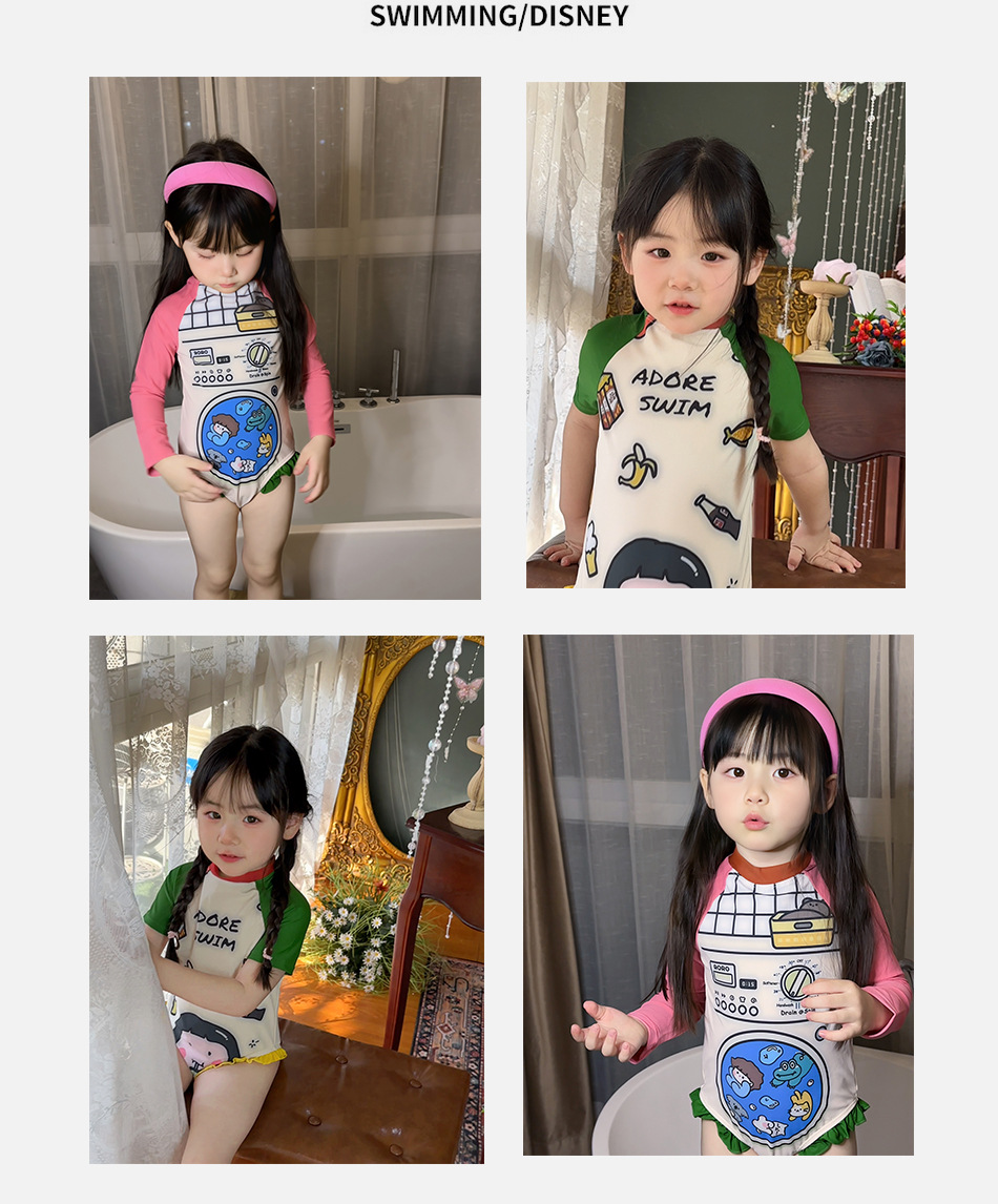 여자 원피스 수영복 한국식 여름 아기 소녀 만화 낙서 레이스 수영복스토어 가기