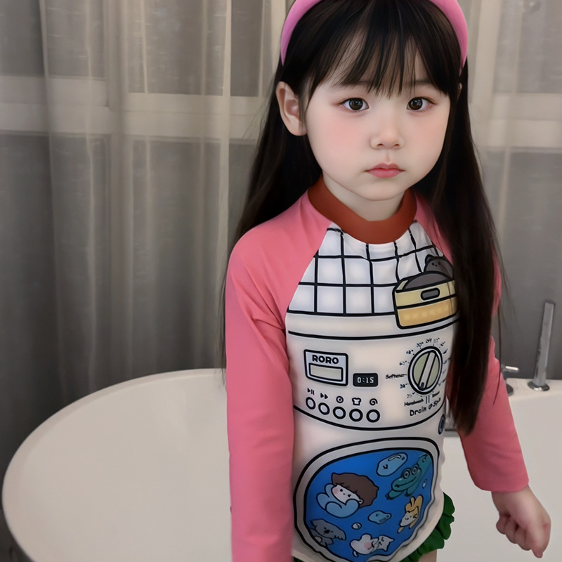 여자 원피스 수영복 한국식 여름 아기 소녀 만화 낙서 레이스 수영복