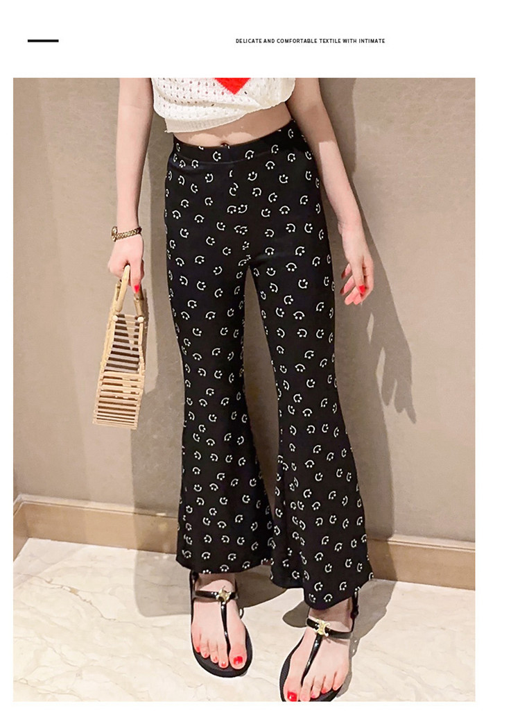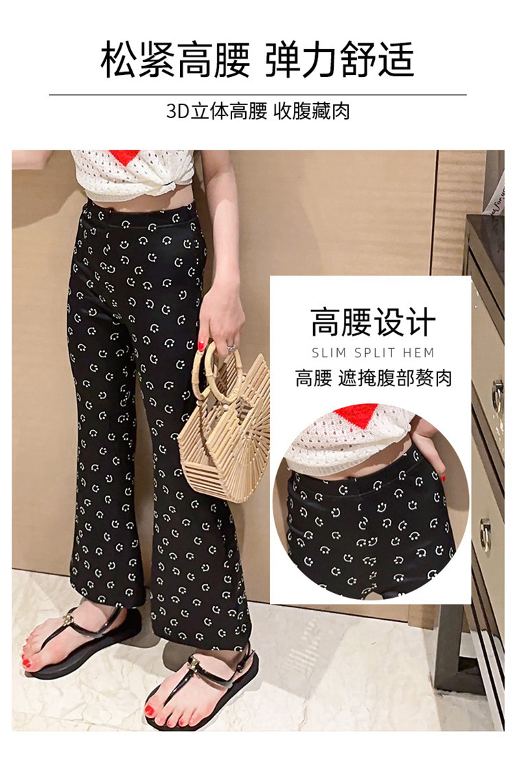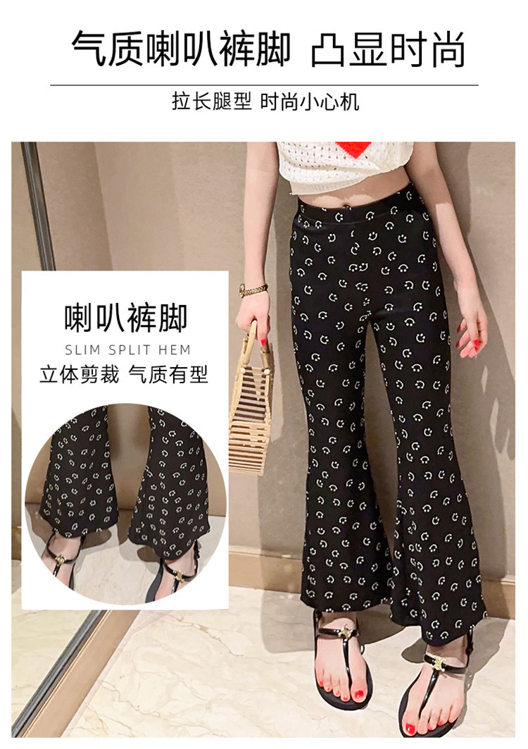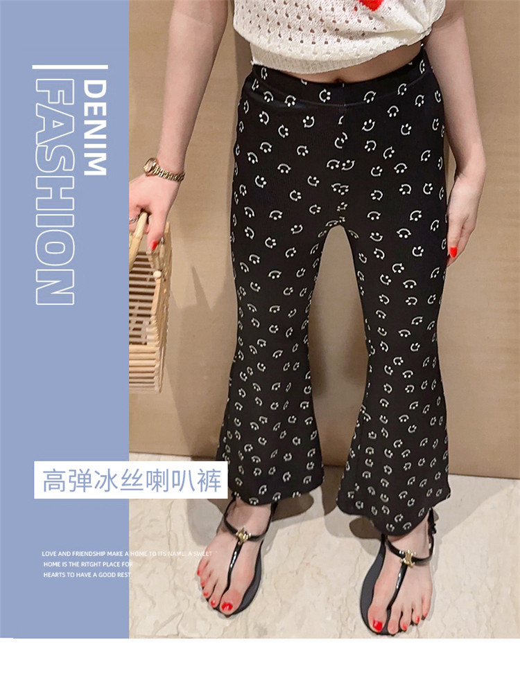 아이스 실크 걸스 바지 여름 2024 새로운 서양식 어린이 벨-꽃 바지 여름 소녀 큰 아이들의 얇은 마이크로 램 바지스토어 가기