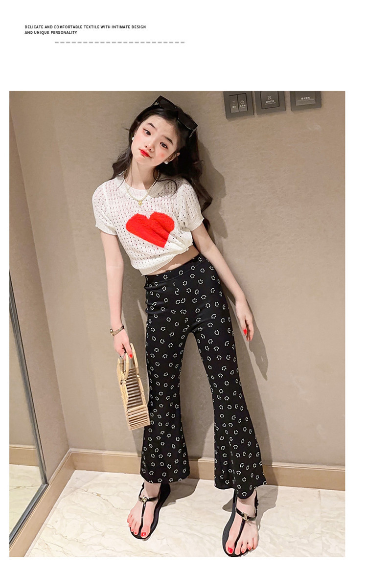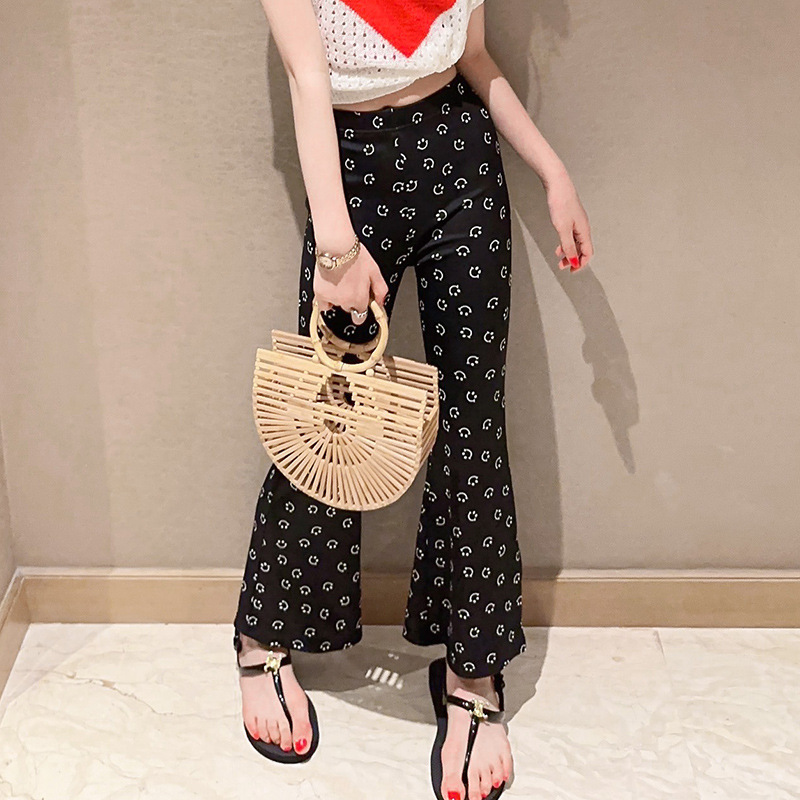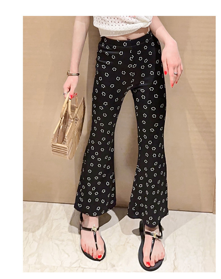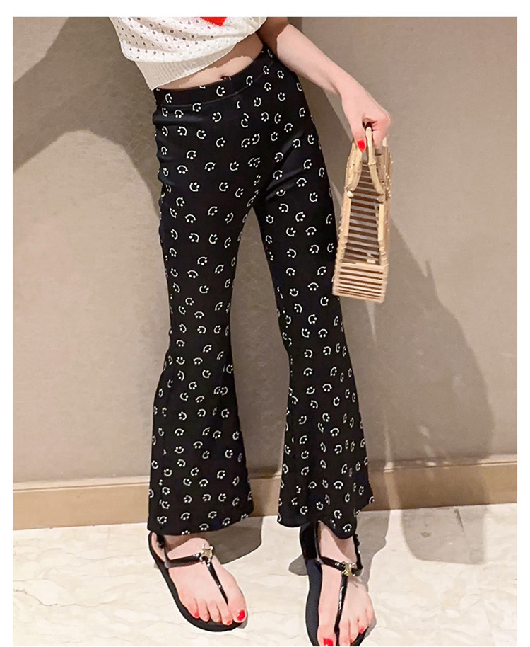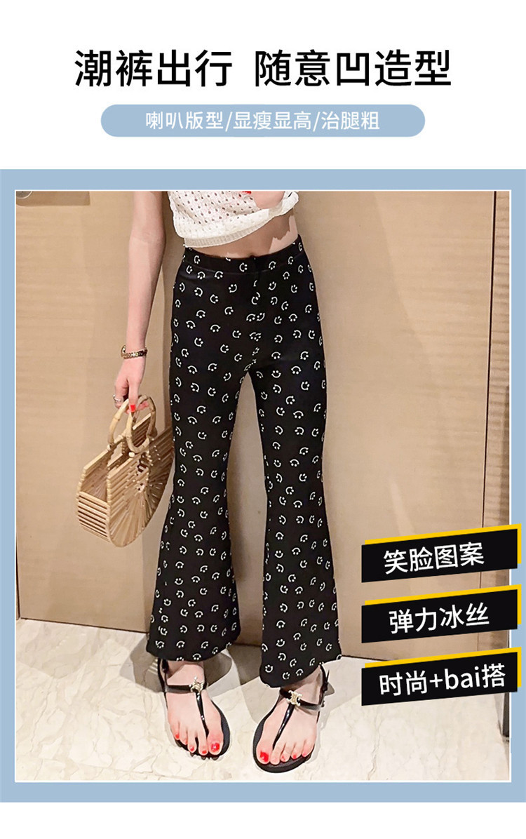 아이스 실크 걸스 바지 여름 2024 새로운 서양식 어린이 벨-꽃 바지 여름 소녀 큰 아이들의 얇은 마이크로 램 바지스토어 가기