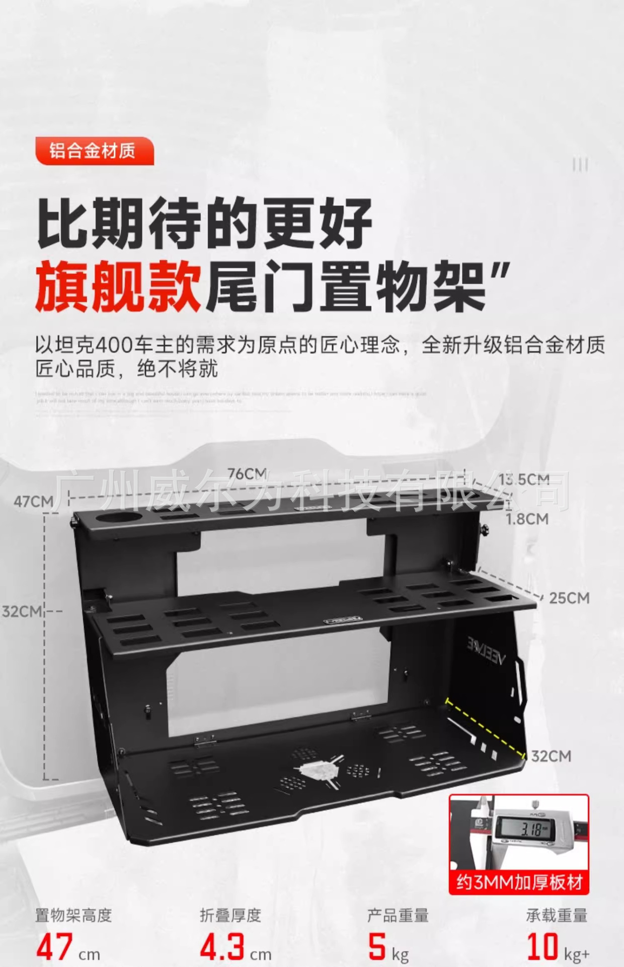 탱크 400 테일 게이트 스토리지 랙 수정 트렁크 스토리지 랙 다이닝 테이블 보드 다기능 확장 랙 오프로드 액세서리스토어 가기