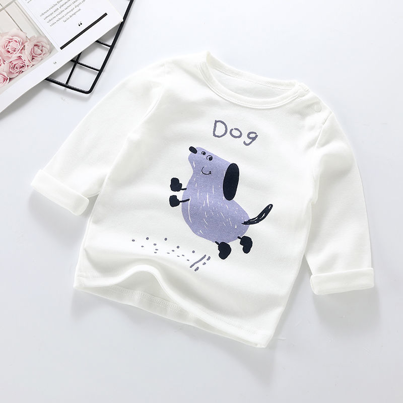아기 옷 봄 순면 티셔츠 소년 소녀 아기 만화 옷 1-3 세 어린이 긴 소매 기초 셔츠 봄과 가을 옷