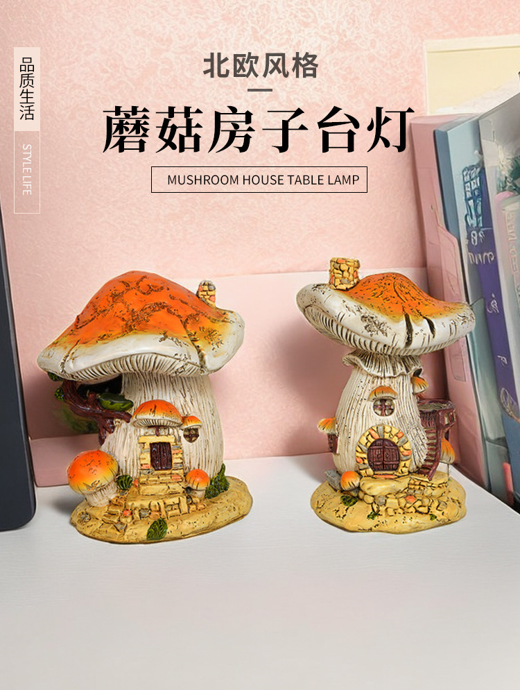 국경 새로운 창조적 인 빛나는 테이블 램프 개인화 된 버섯 테이블 램프 장식품 침대 옆 배열 수지 공예