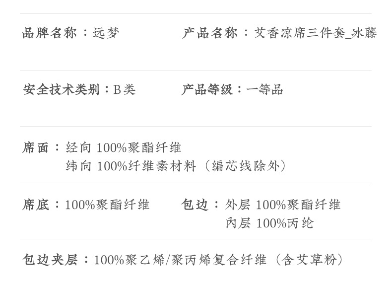 Yuanmeng 쑥 매트 3 피스 아이스 등나무 매트 1.8m 소프트 매트 접이식 쑥 여름 매트 여름 매트
