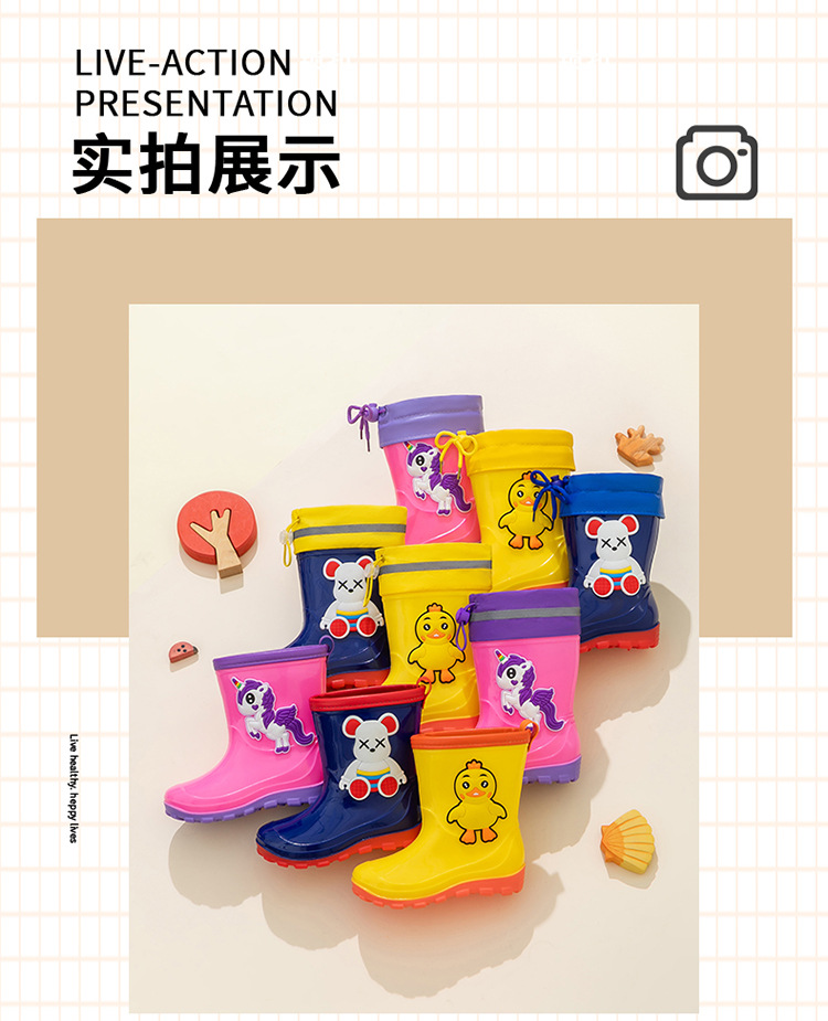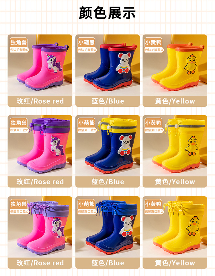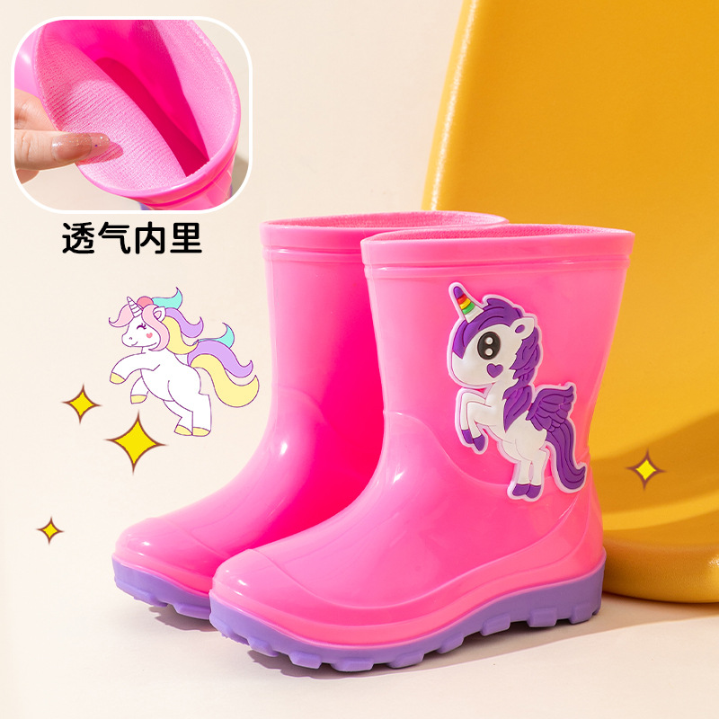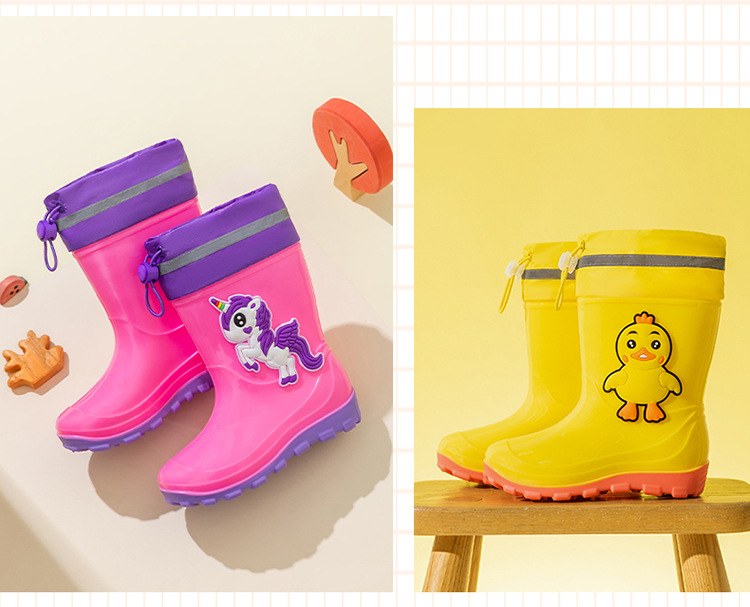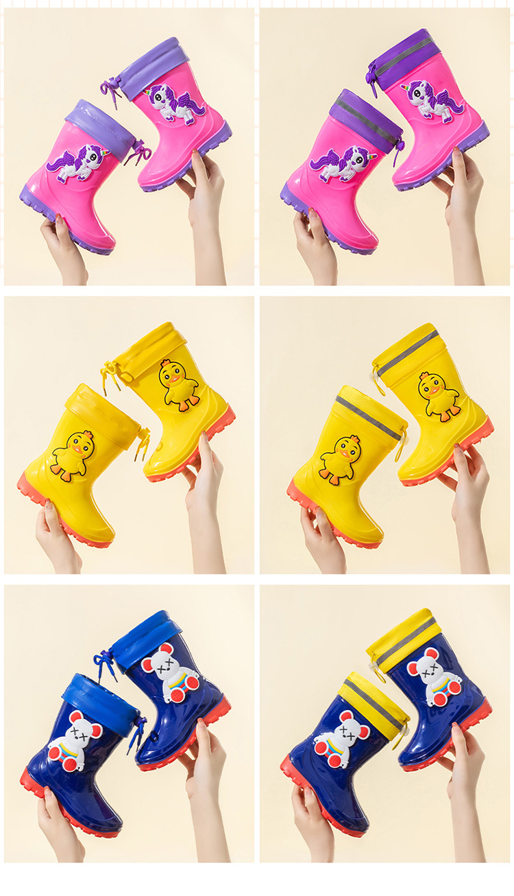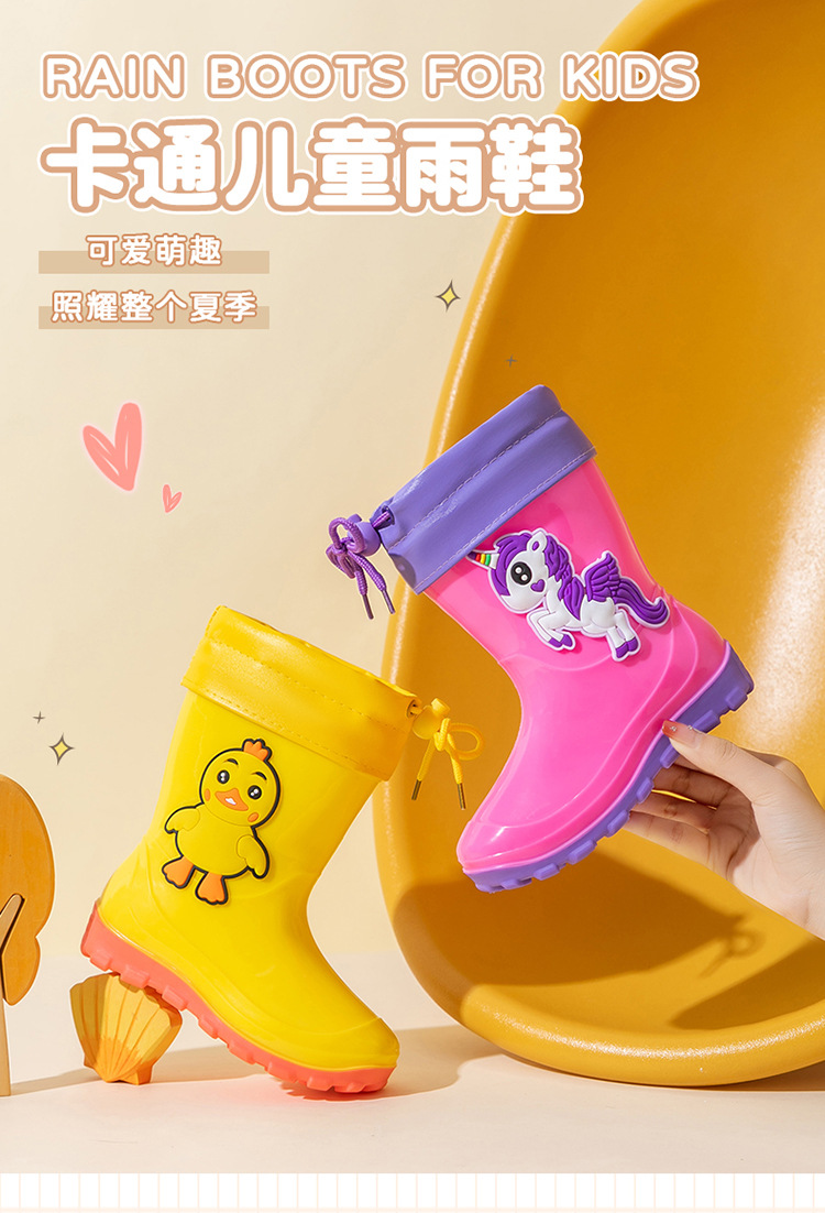 만화 물 신발 소년 소녀를위한 어린이 비 신발 비 슬립 장화 탄성 안티 누출 수중 비오는 날 학교 오버 슈즈 도매스토어 가기