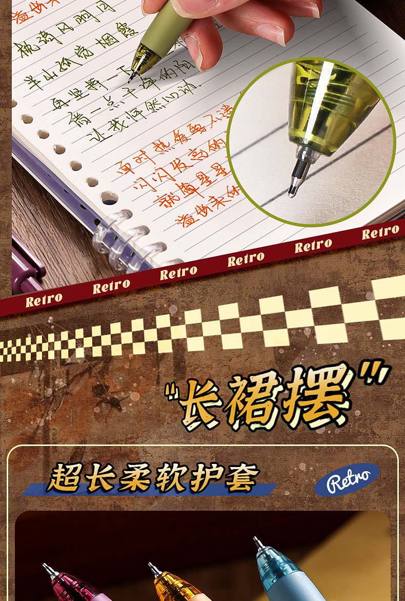 • 컬러 긴 원피스 펜-아메리칸 레트로
