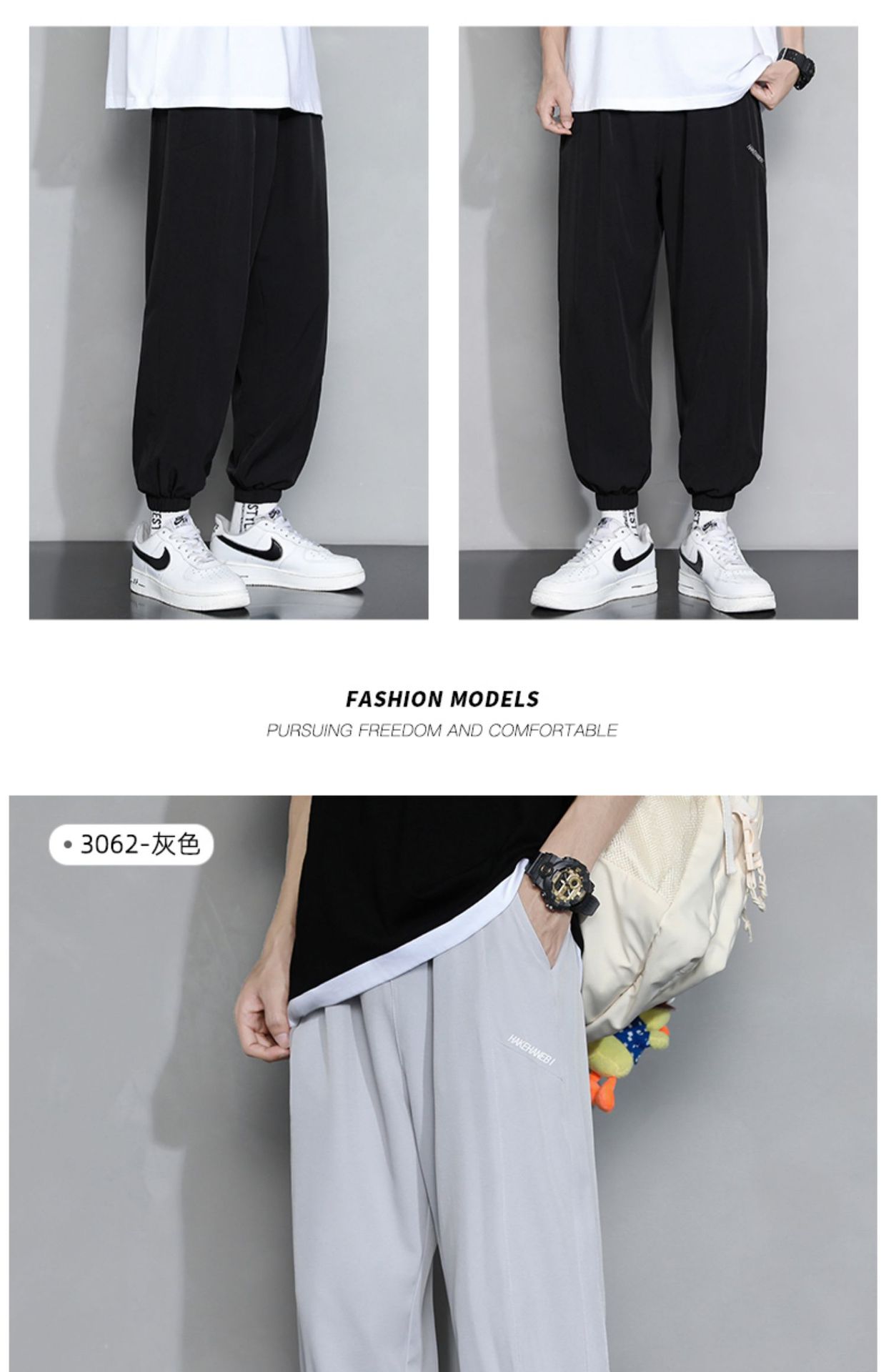 NASA 아이스 실크 바지 남자 여름 얇은 느슨한 스트레이트 바지 소년 스포츠 바지 넓은 다리 캐주얼 바지