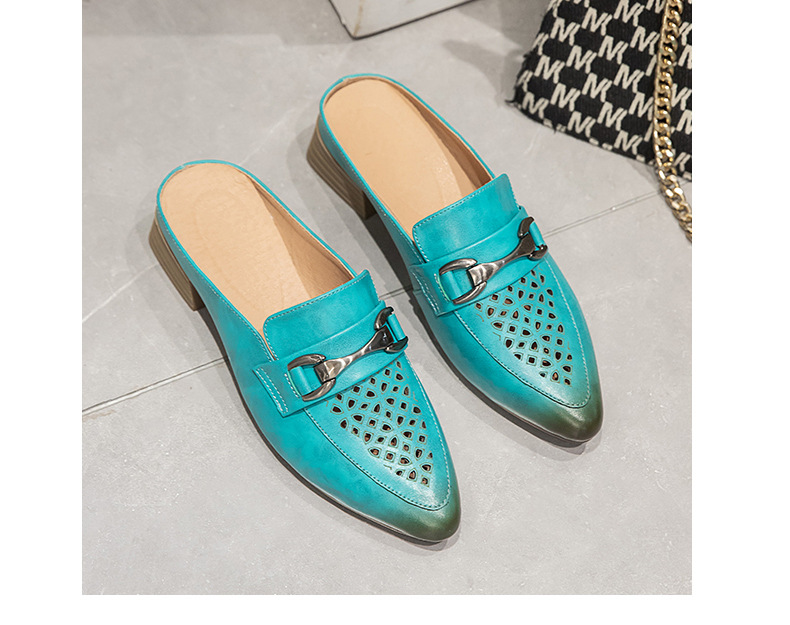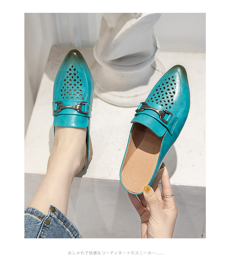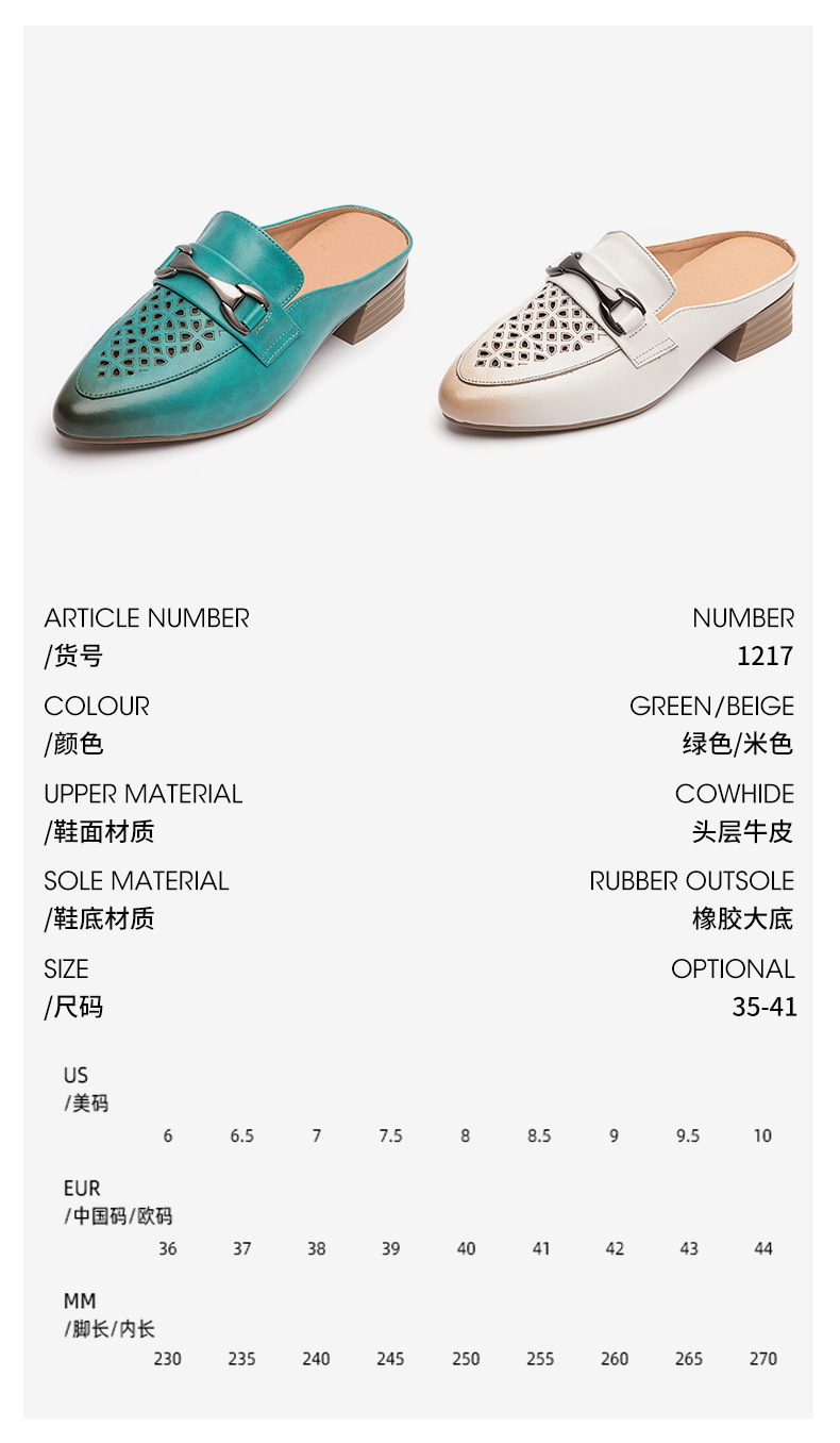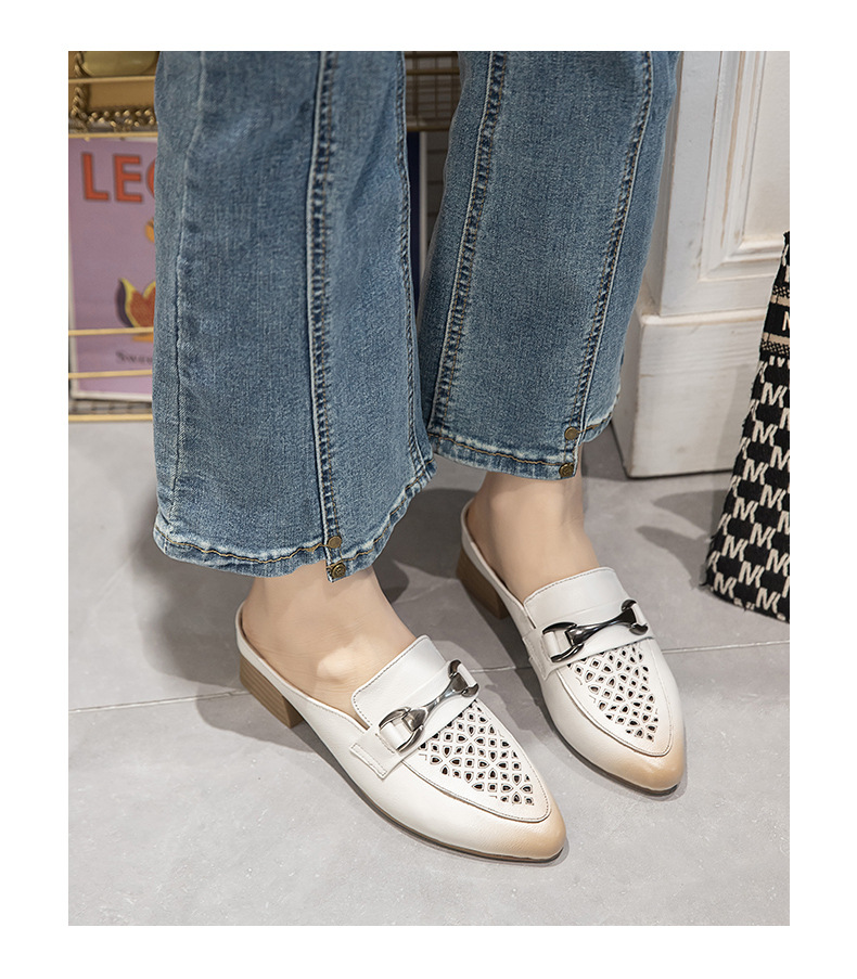 탑 레이어 Cowhide 포인팅 미드 힐 슬리퍼 여성용 미끄럼 방지 올 매치 민족 스타일 정품 가죽 두꺼운 힐 샌들 (Baotou 포함)스토어 가기