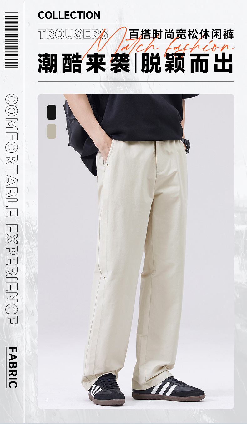 Muqiu 남성복 ∠ 일본 패션 브랜드 레트로 느슨한 캐주얼 바지 남성용 직류 리벳 와이드 레그 툴링 바지