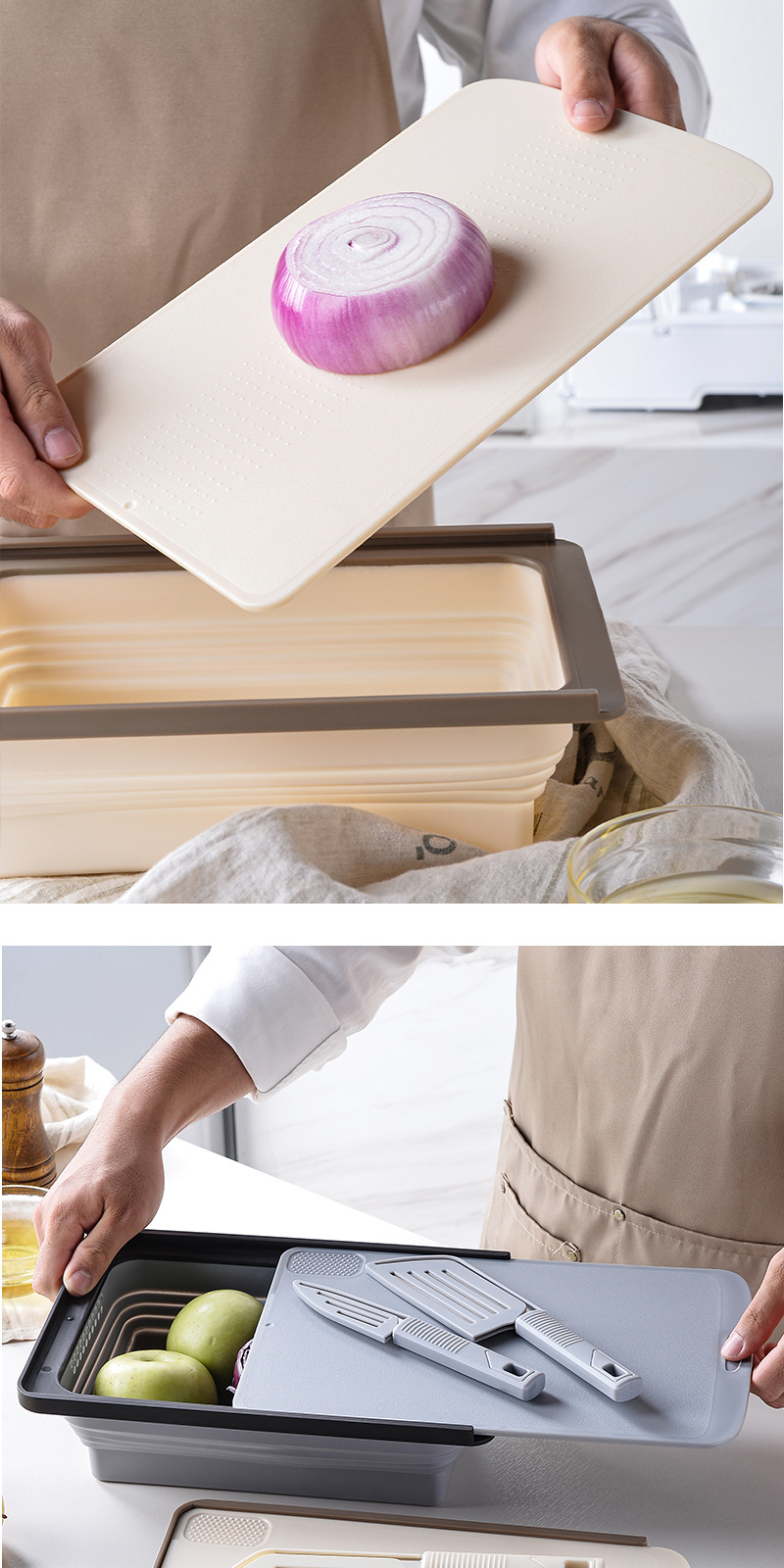 국경 접는 배수 바구니 도마 2 피스 주방 다기능 세탁 바구니 휴대용 야외 피크닉 워터 필터 블루스토어 가기