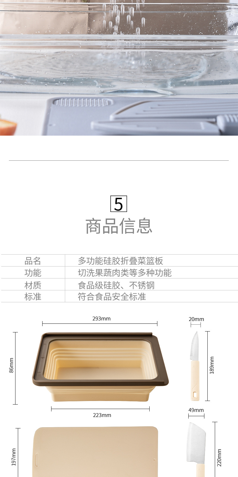 袋装:折叠篮+菜板 525g,三件套 655g,七件套 800g