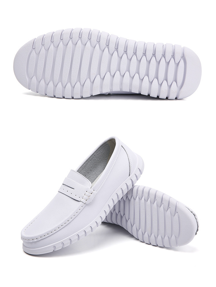 국경 검은 탈취제 흰색 남성 간호사 신발 여름 피곤하지 않은 발 통기성 여름 부드러운 바닥 큰 머리 평평한 바닥 가죽 작은