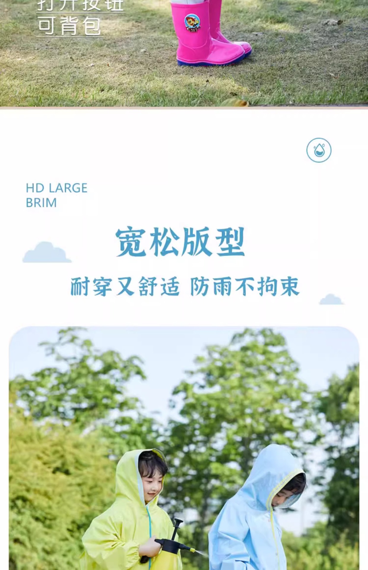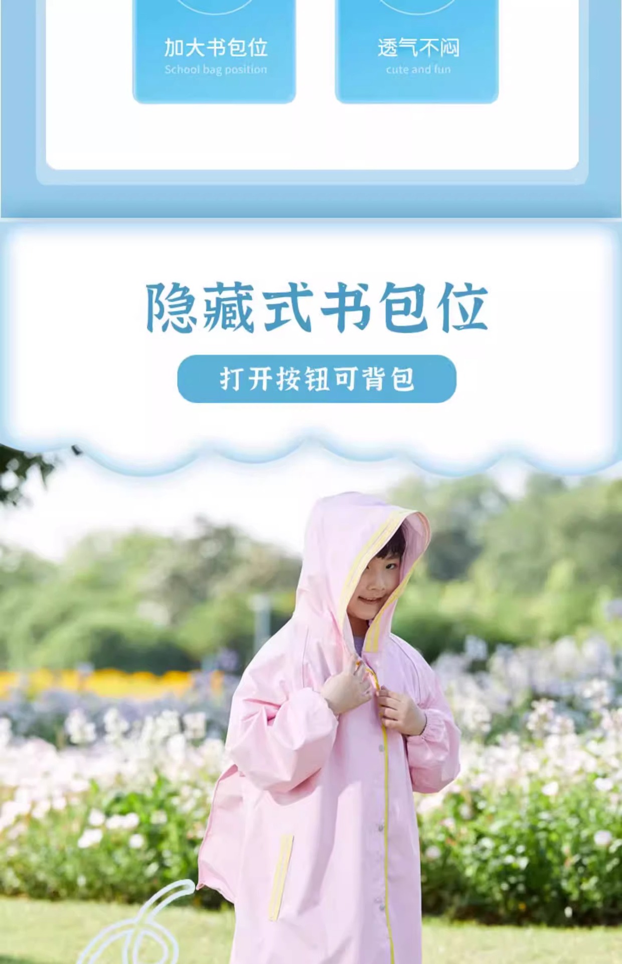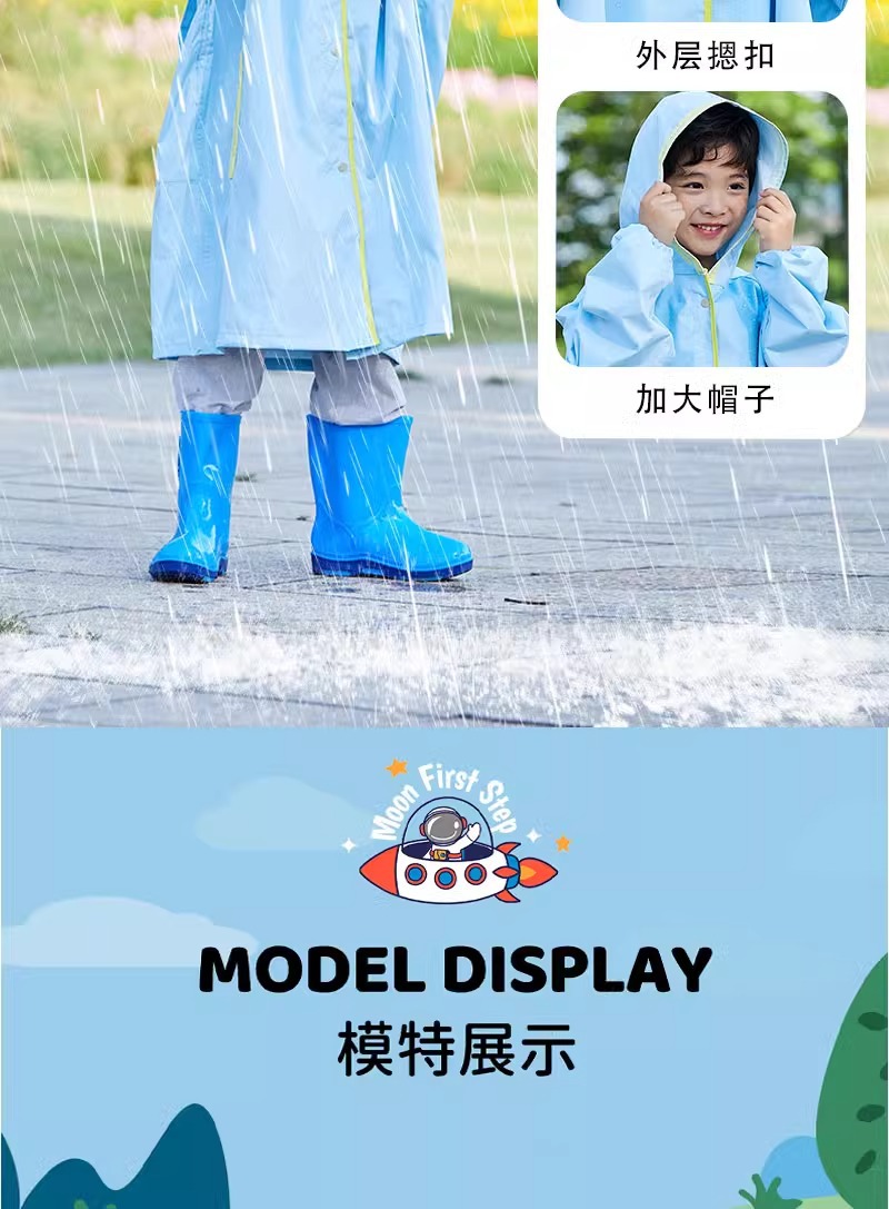 Blue Lion 맞춤형 어린이 비옷, 책가방 포함, 소년 소녀, 초등학생, 중대형 어린이, 두꺼운 전신스토어 가기