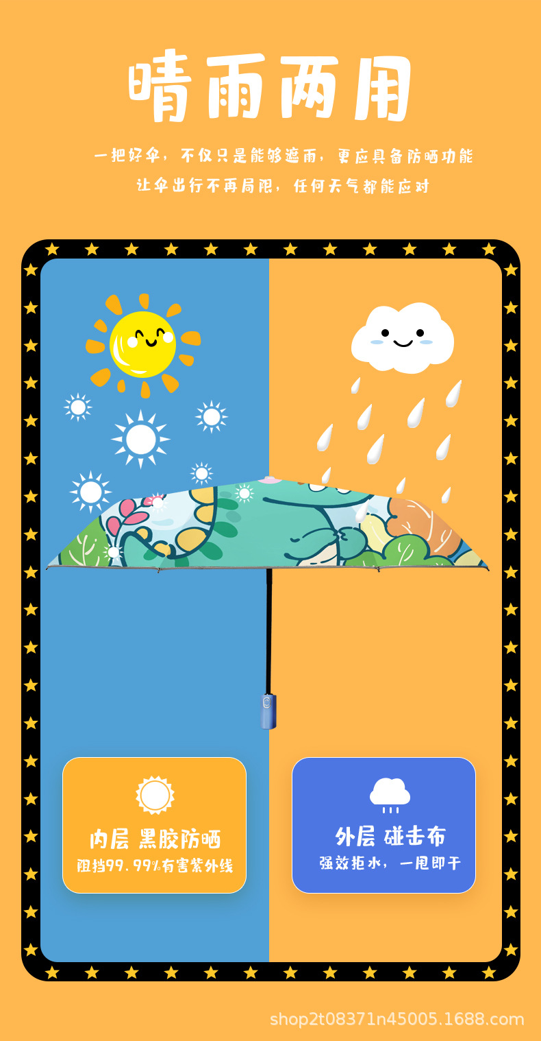 초등학생을위한 소년 소녀를위한 자동 어린이 우산 안전 반 반동 이중 사용 접는 우산