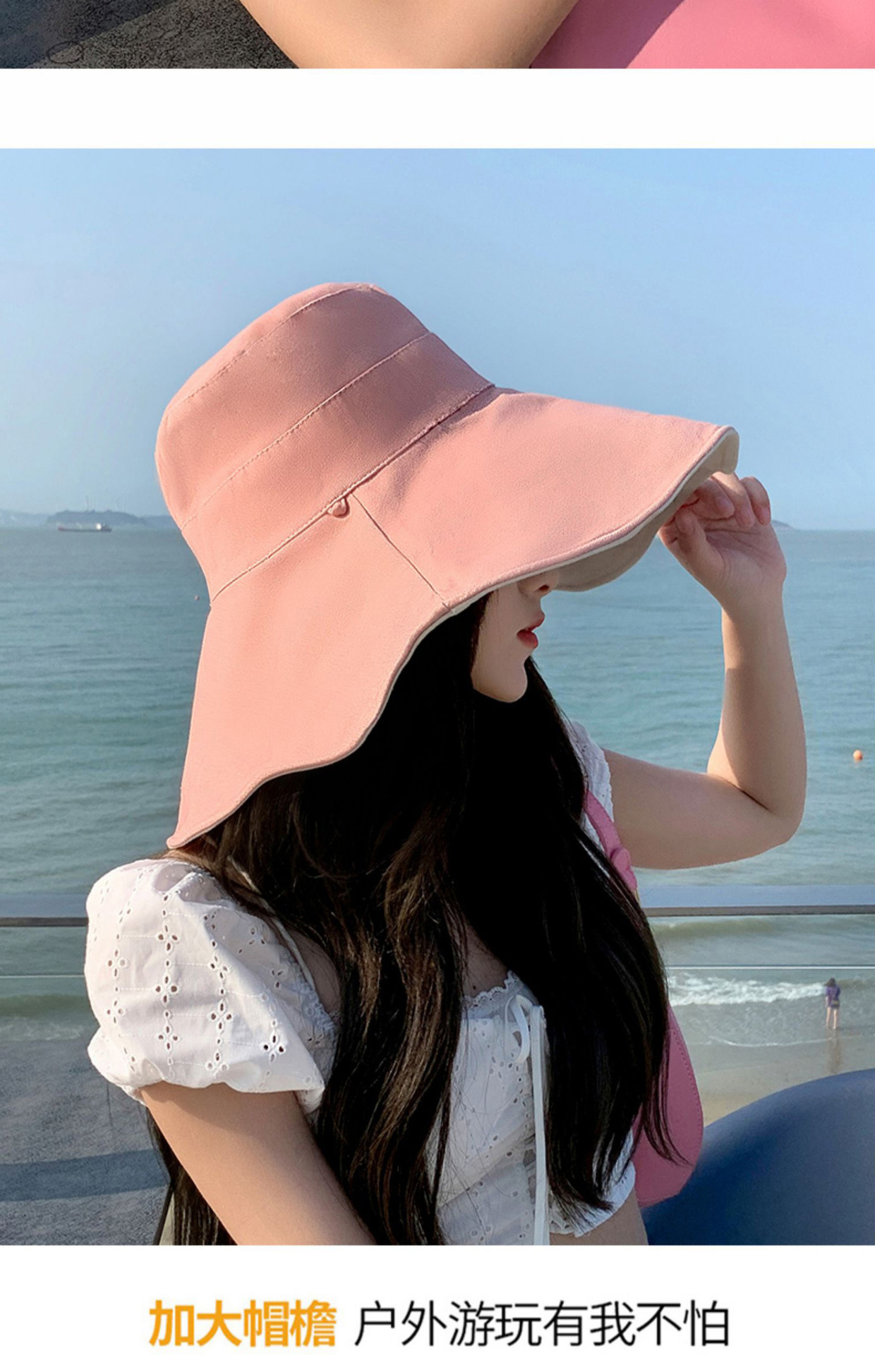 15cm 대형 브림 어부 모자 양면 태양 보호 태양 모자 여성 한국식 올매치 야외 여행 라운드 페이스 패션스토어 가기