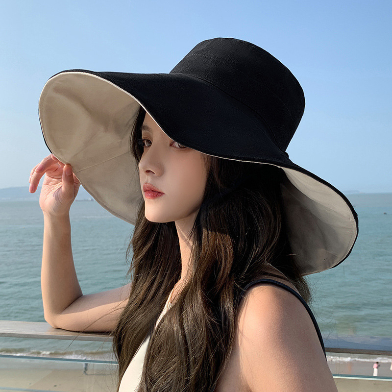 15cm 대형 브림 어부 모자 양면 태양 보호 태양 모자 여성 한국식 올매치 야외 여행 라운드 페이스 패션