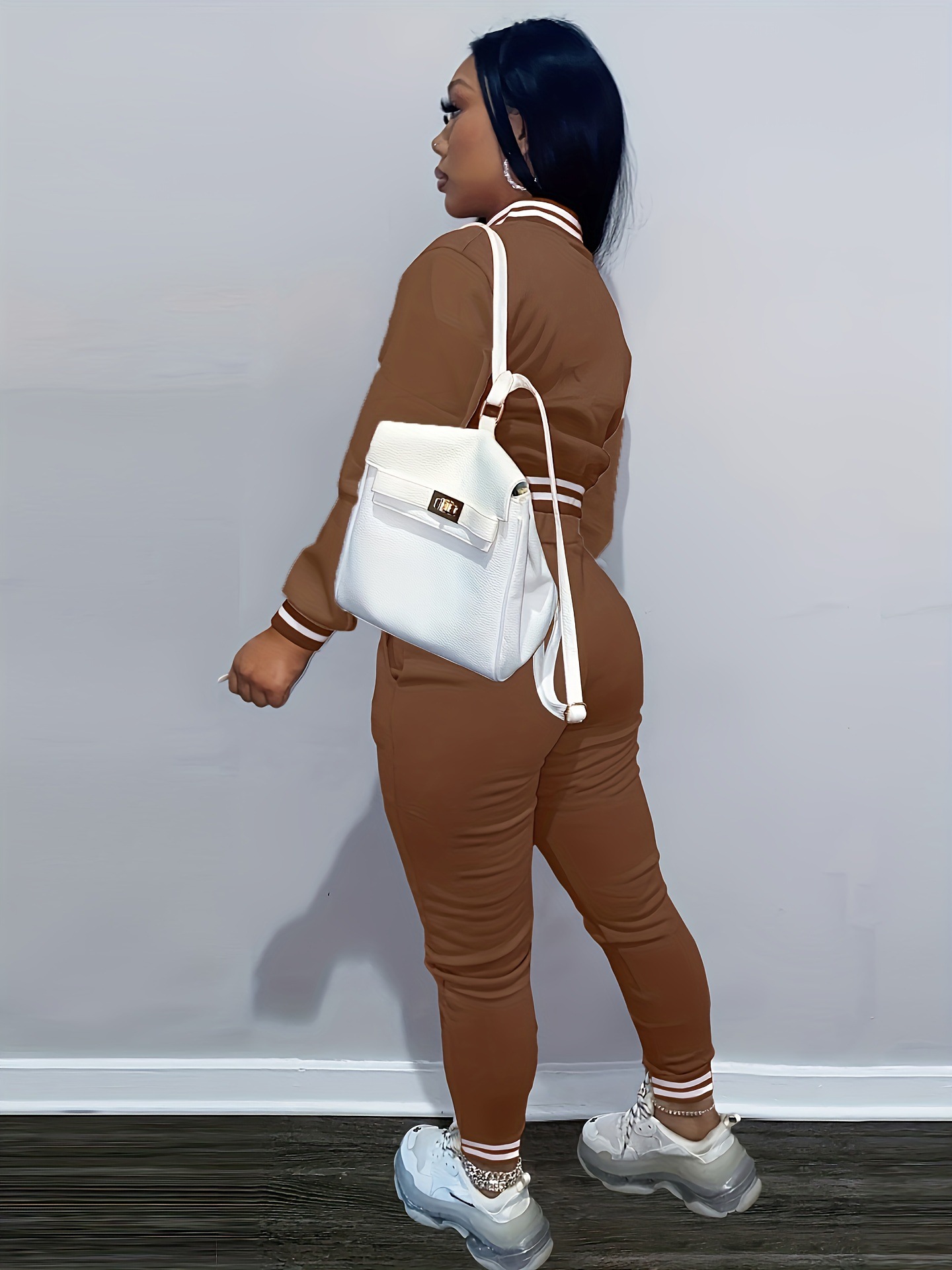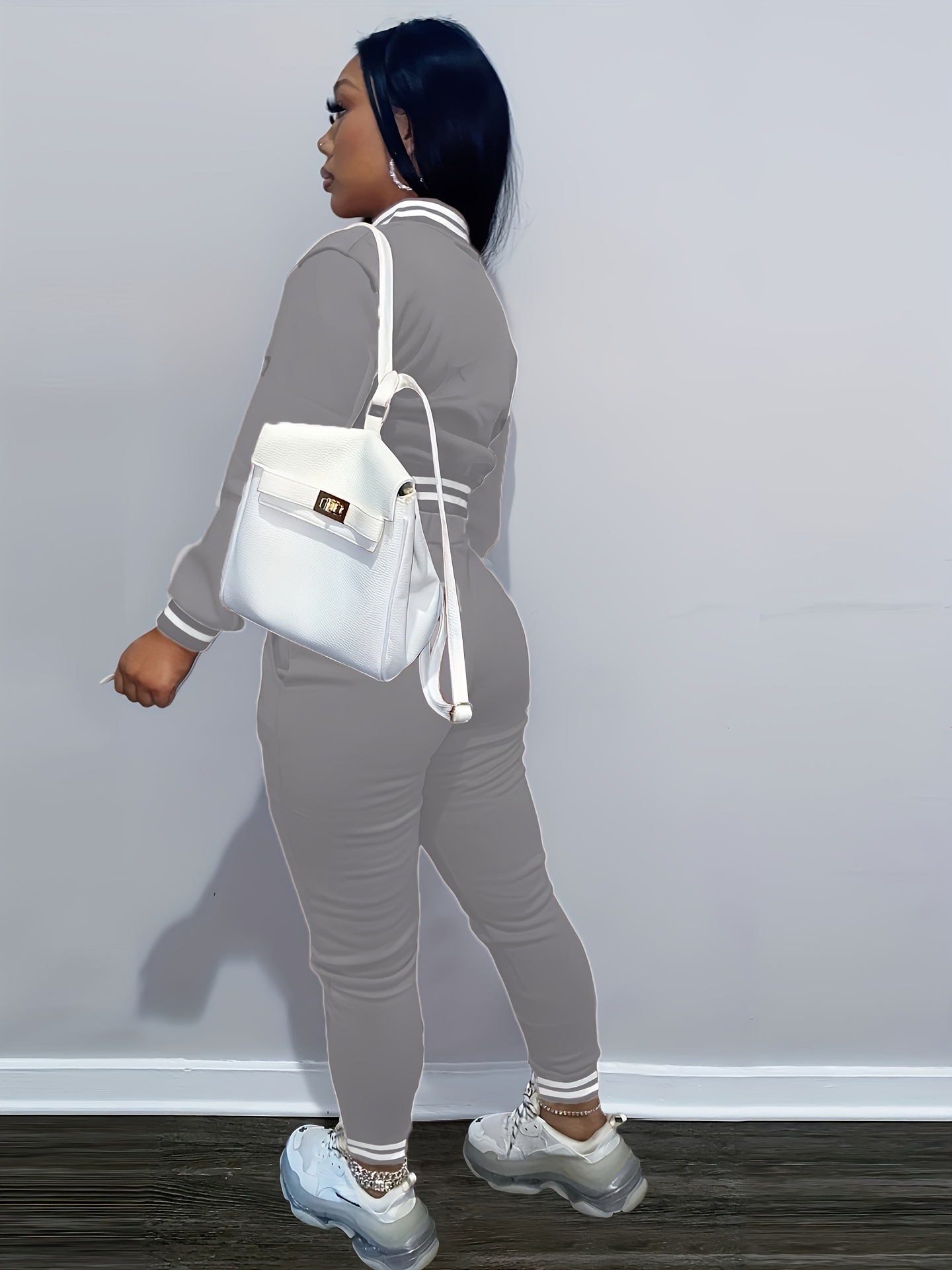 2024 국경을 넘는 대외 무역 봄과 가을 유럽과 미국 여자 솔리드 컬러 재킷 싱글 브레스트 야구 세트 여자 스포츠 투피스 세트스토어 가기