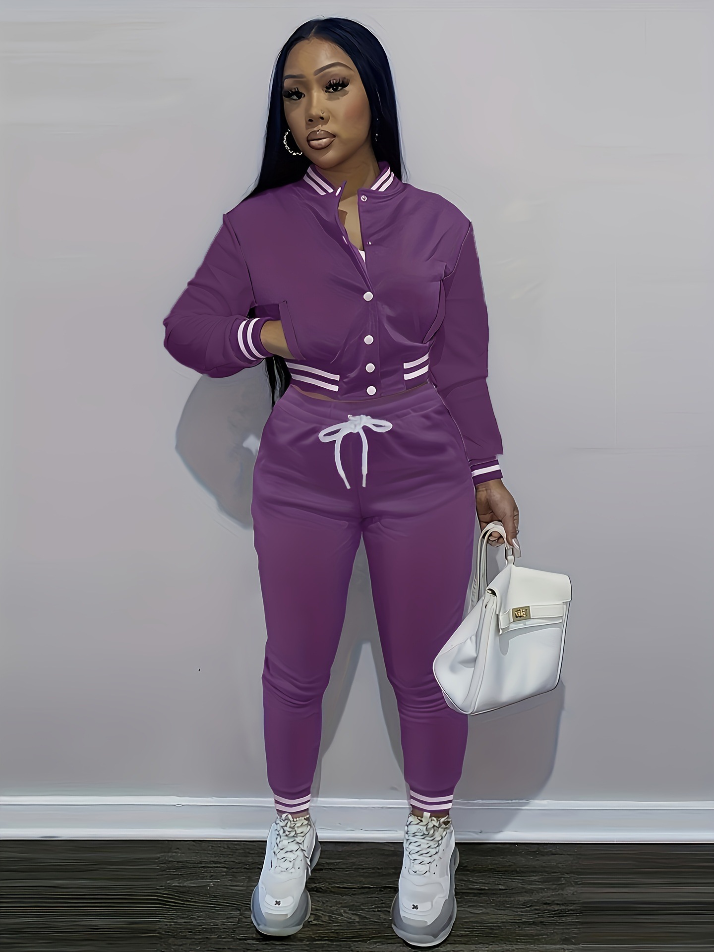 2024 국경을 넘는 대외 무역 봄과 가을 유럽과 미국 여자 솔리드 컬러 재킷 싱글 브레스트 야구 세트 여자 스포츠 투피스 세트