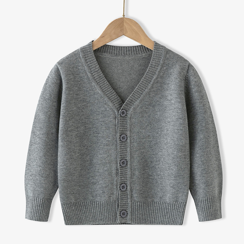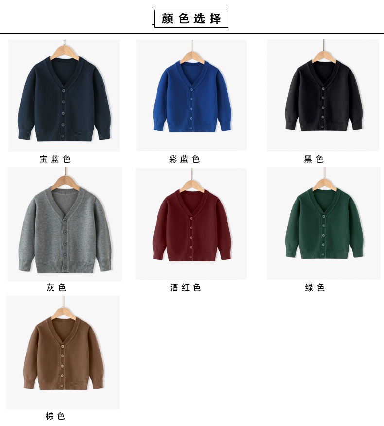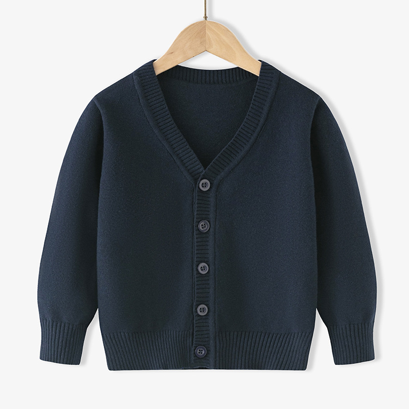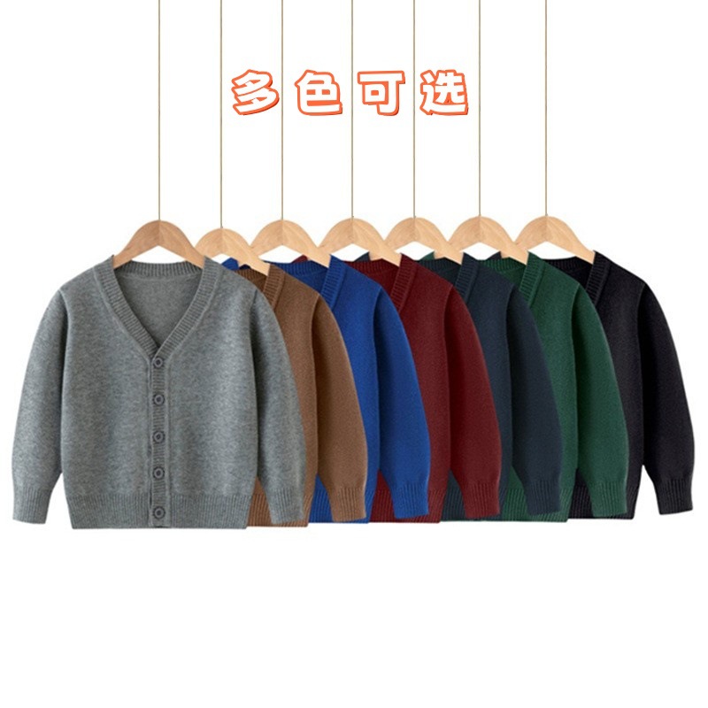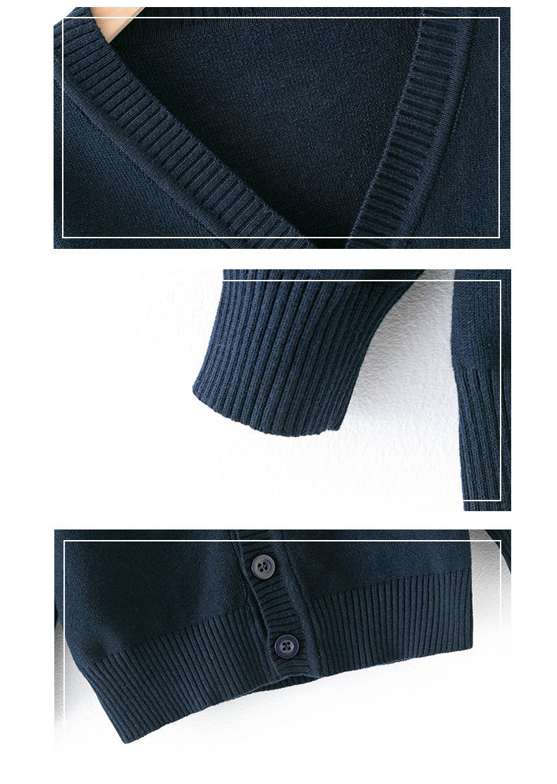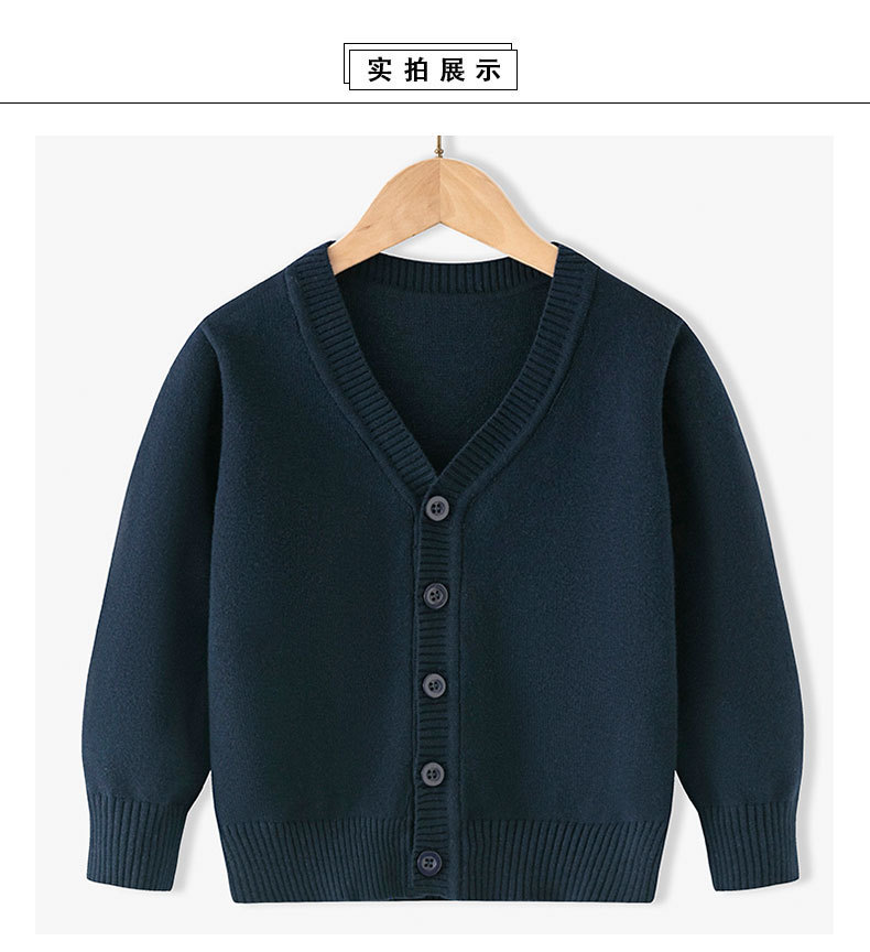 아동용 니트 가디건 봄, 가을 얇은 순면 실 중대형 아동용 V 넥 대학 스타일 스웨터 재킷 소년 소녀 클래스 유니폼스토어 가기