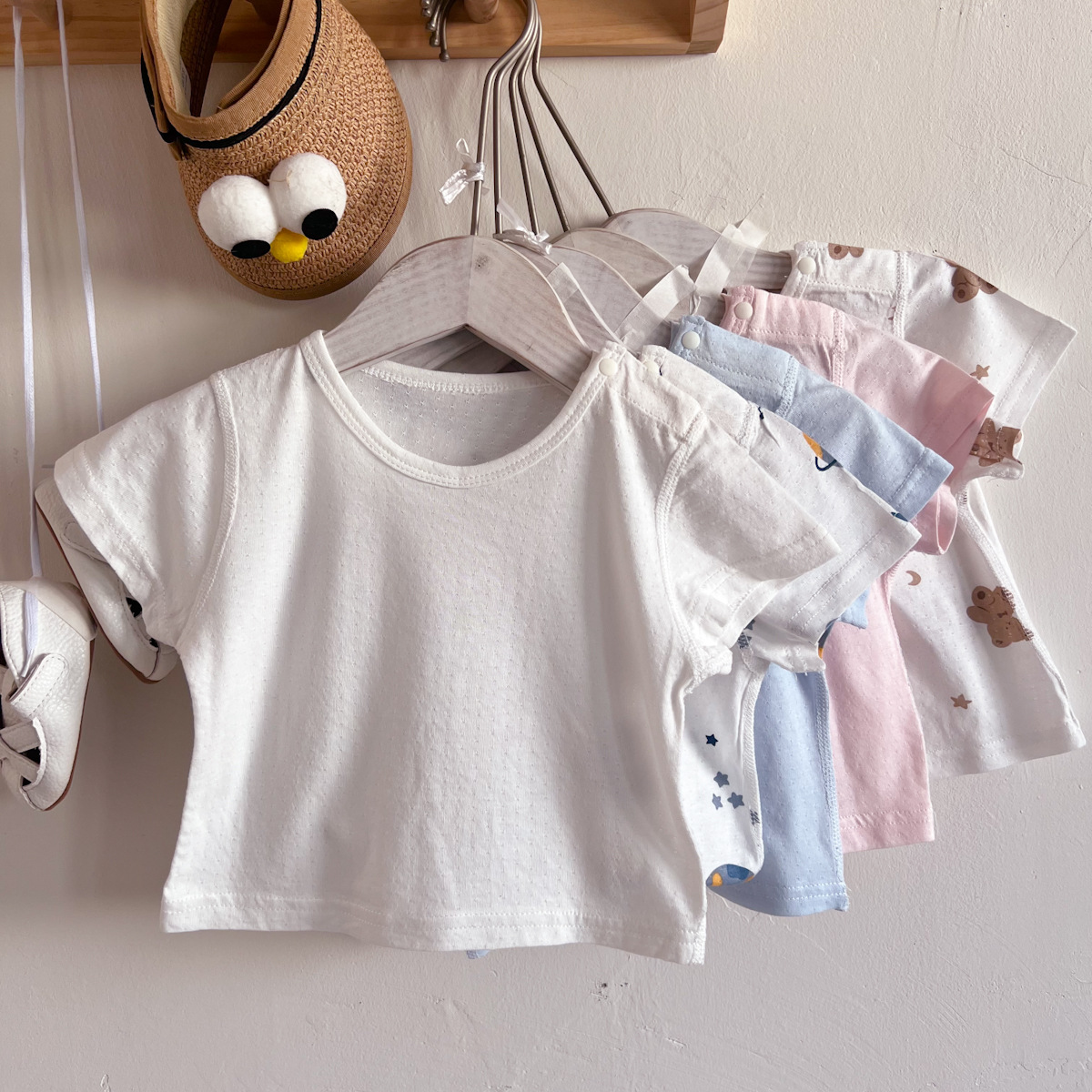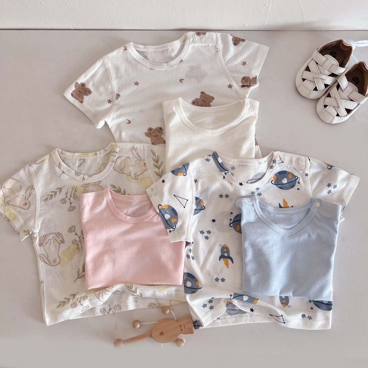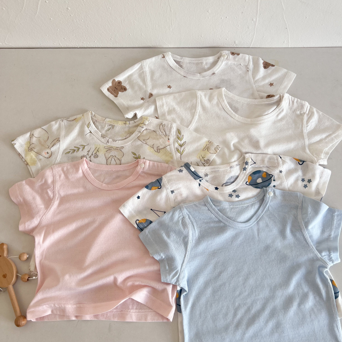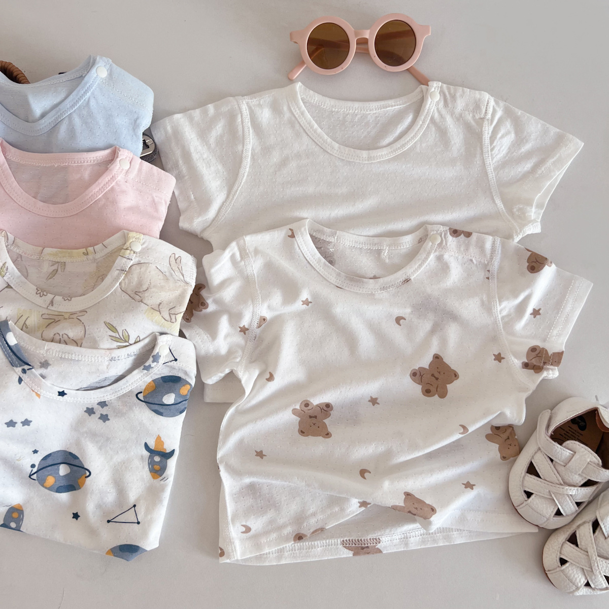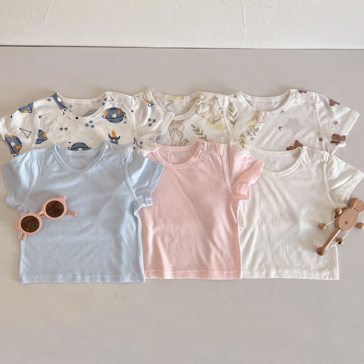 얇은 어린이 여름 반팔 티셔츠 뼈없는 솔기베이스 셔츠 한국면 기본 유아용 탑