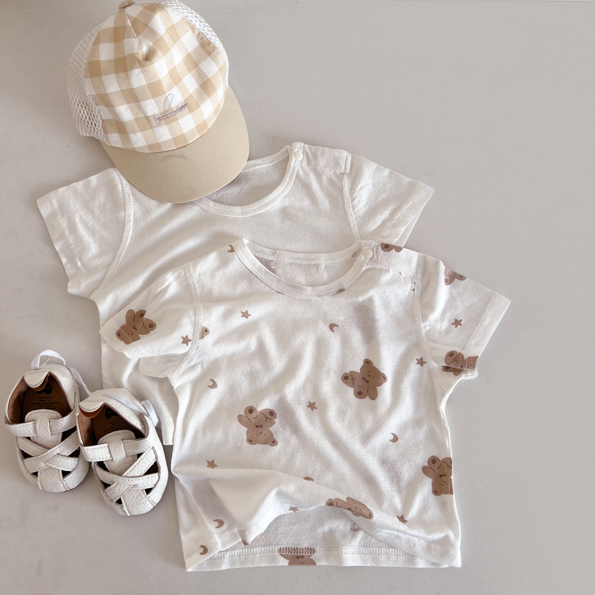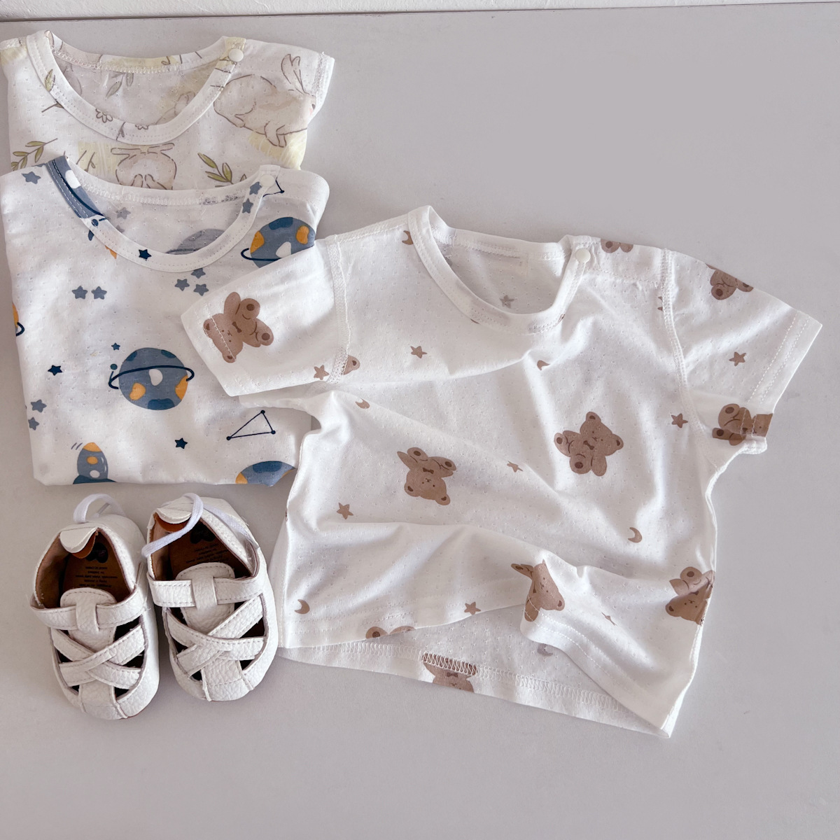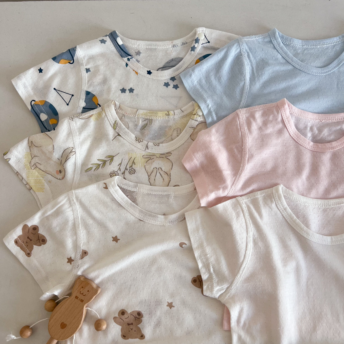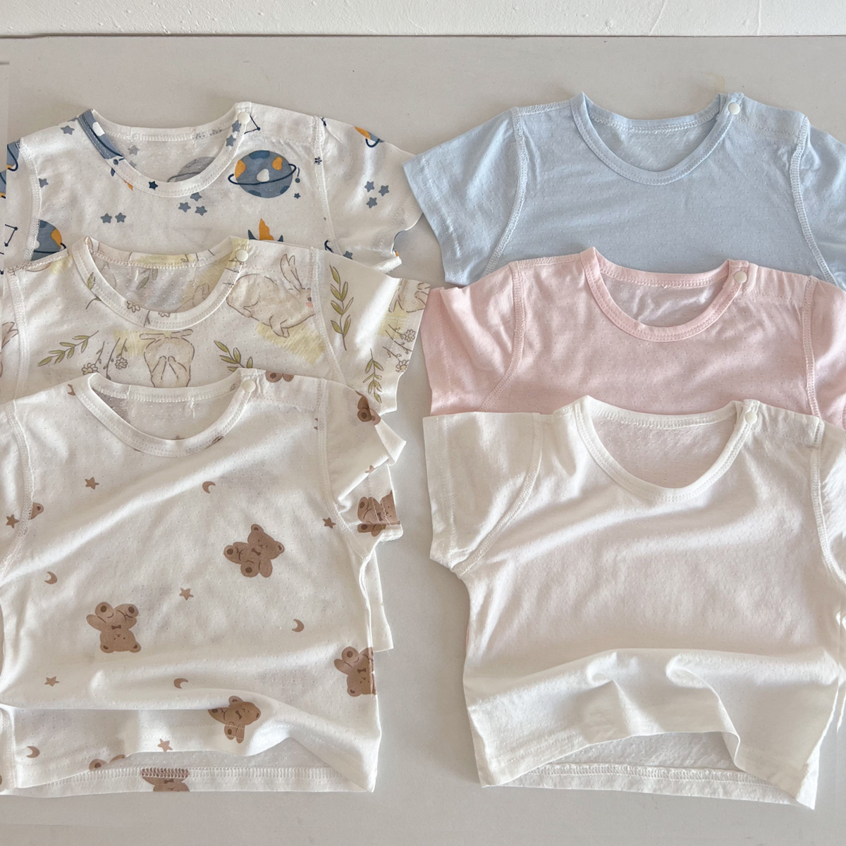 얇은 어린이 여름 반팔 티셔츠 뼈없는 솔기베이스 셔츠 한국면 기본 유아용 탑