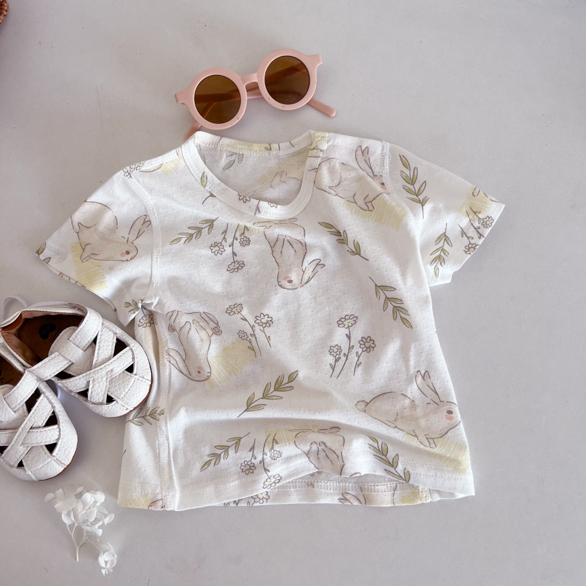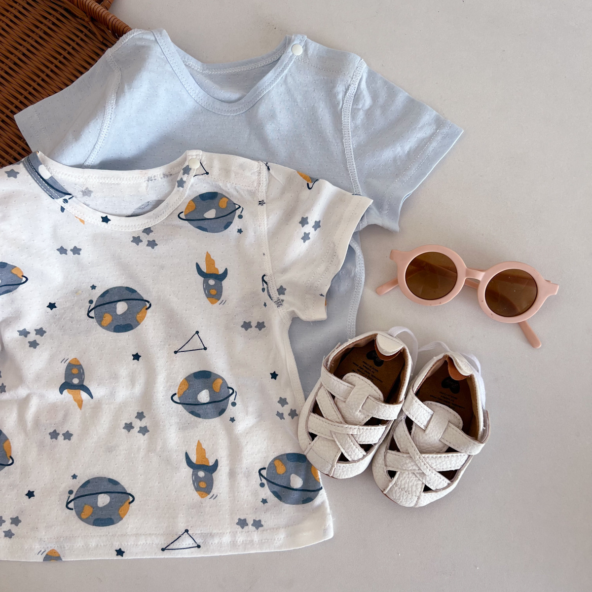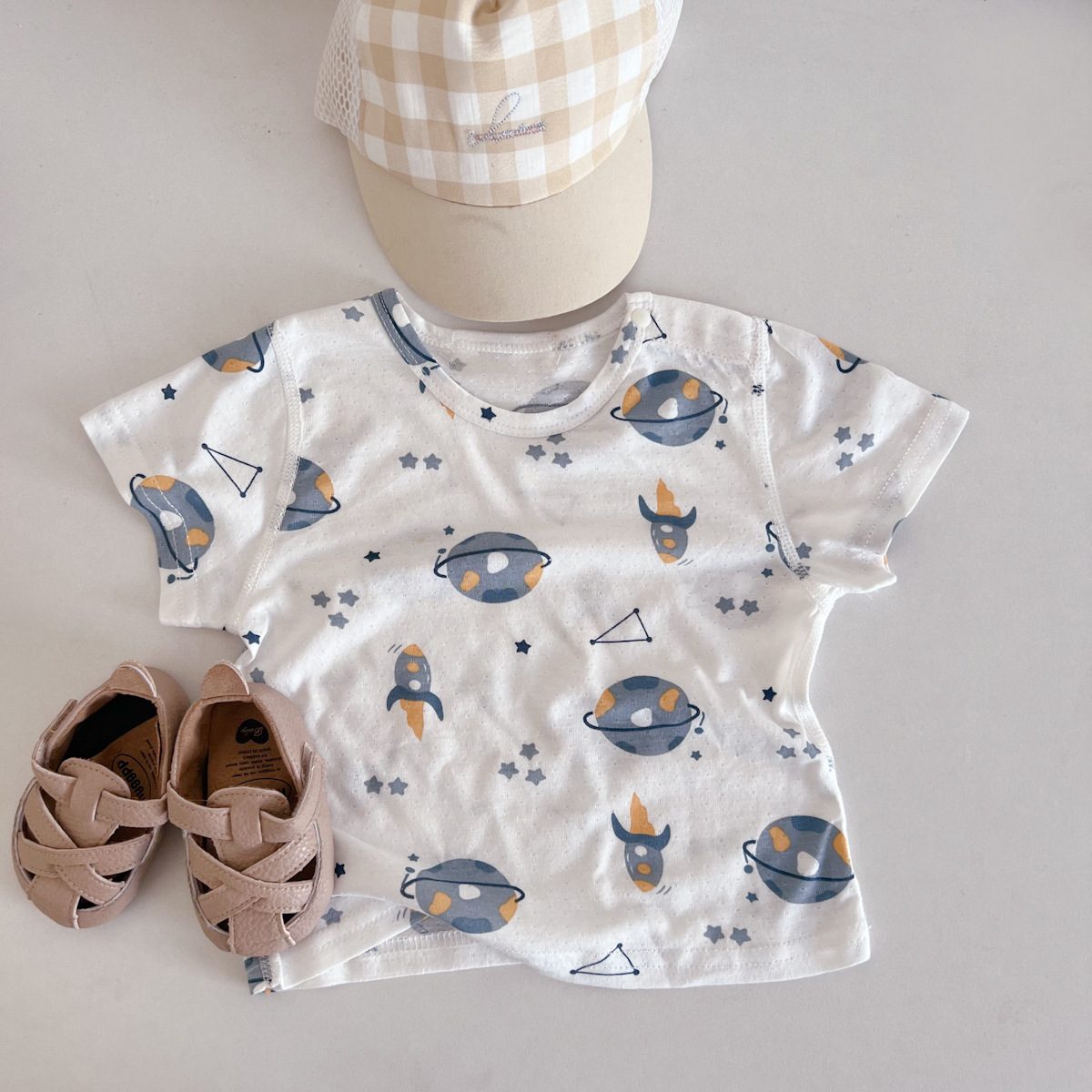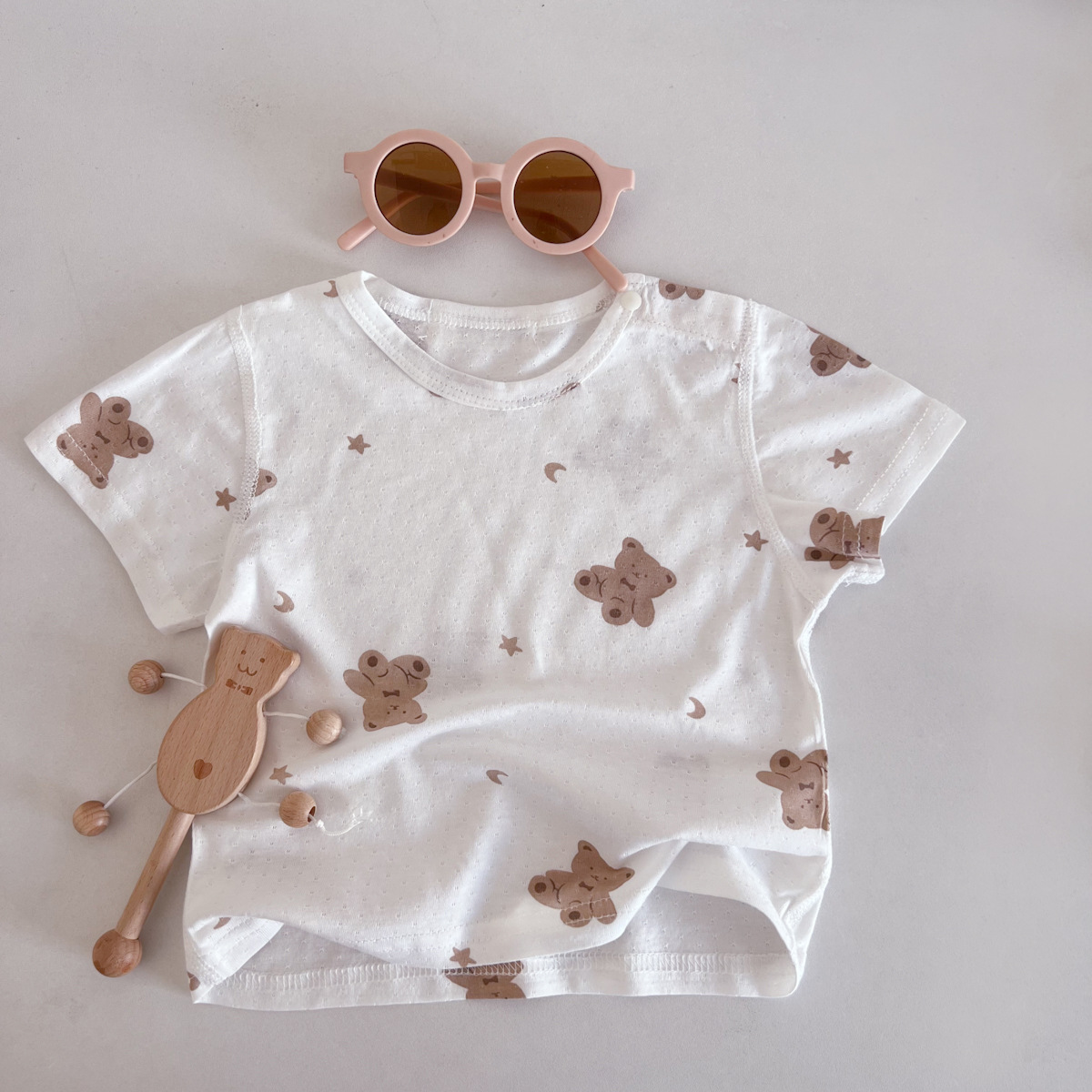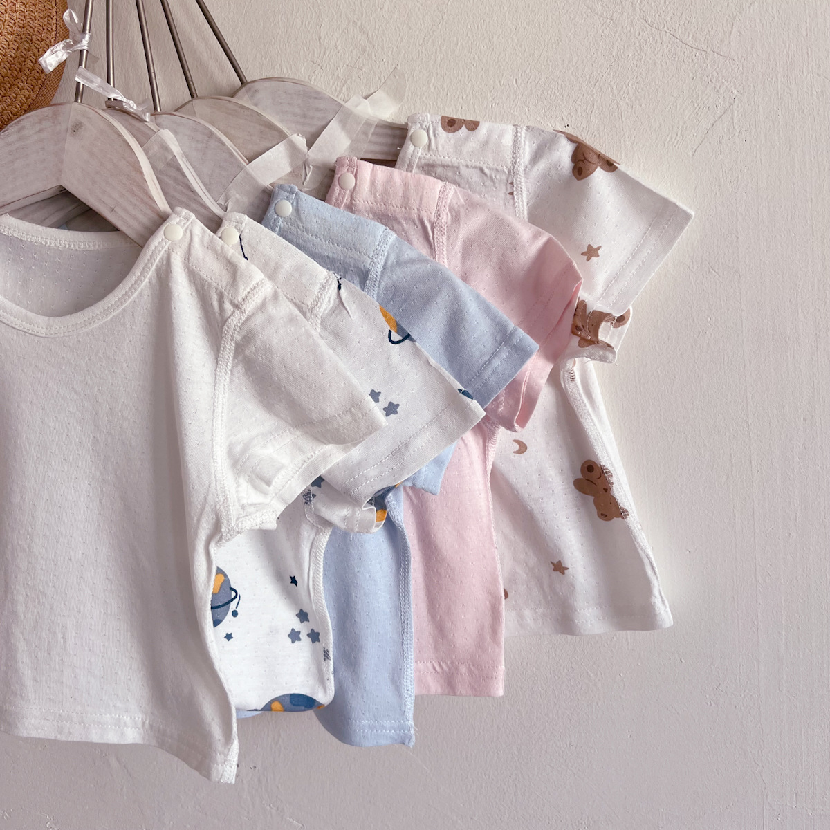 얇은 어린이 여름 반팔 티셔츠 뼈없는 솔기베이스 셔츠 한국면 기본 유아용 탑