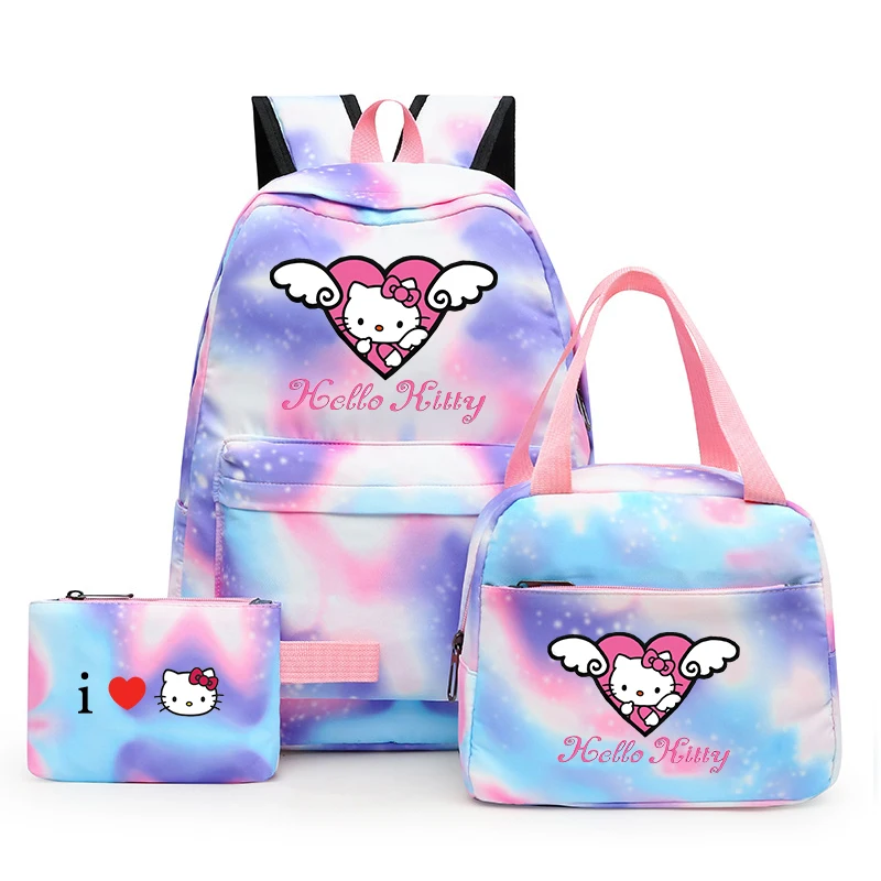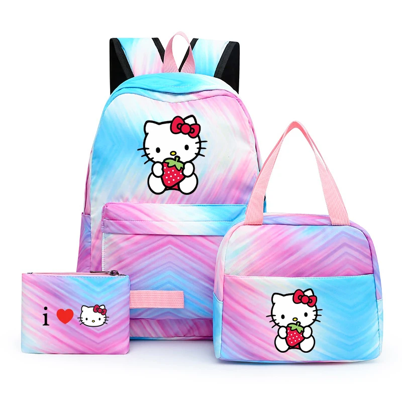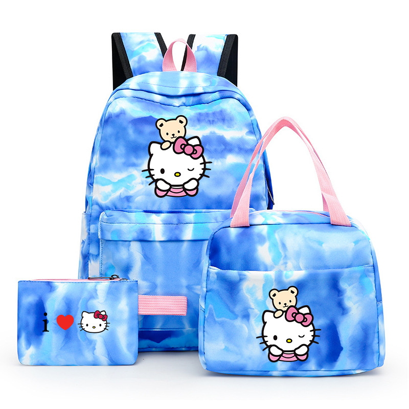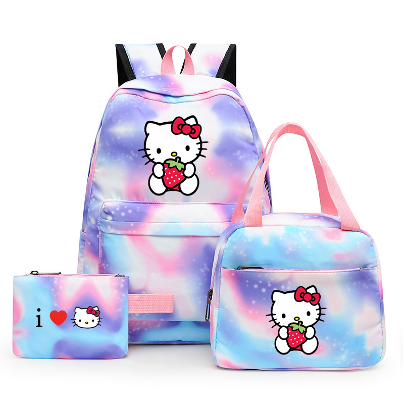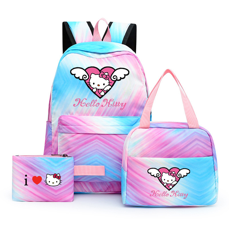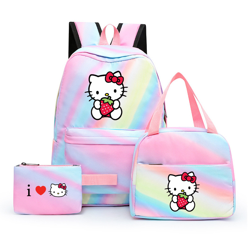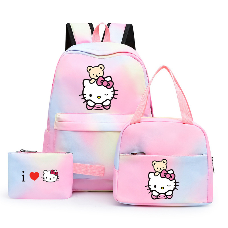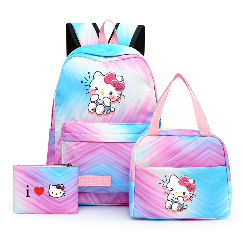 국경 간 새로운 3 조각 Schoolbag 주니어 다채로운 배낭 점심 가방 여성 학생 녹색 레저 스쿨 백