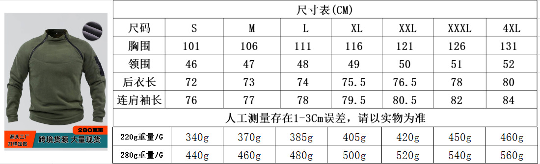 크로스보더 280g 폴라플리스 두꺼운 남성용 스웨트셔츠 루즈핏 배색 아웃도어 보온 전술 풀오버 스포츠 스웨트셔츠