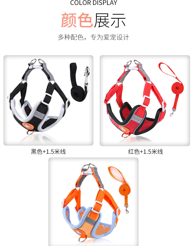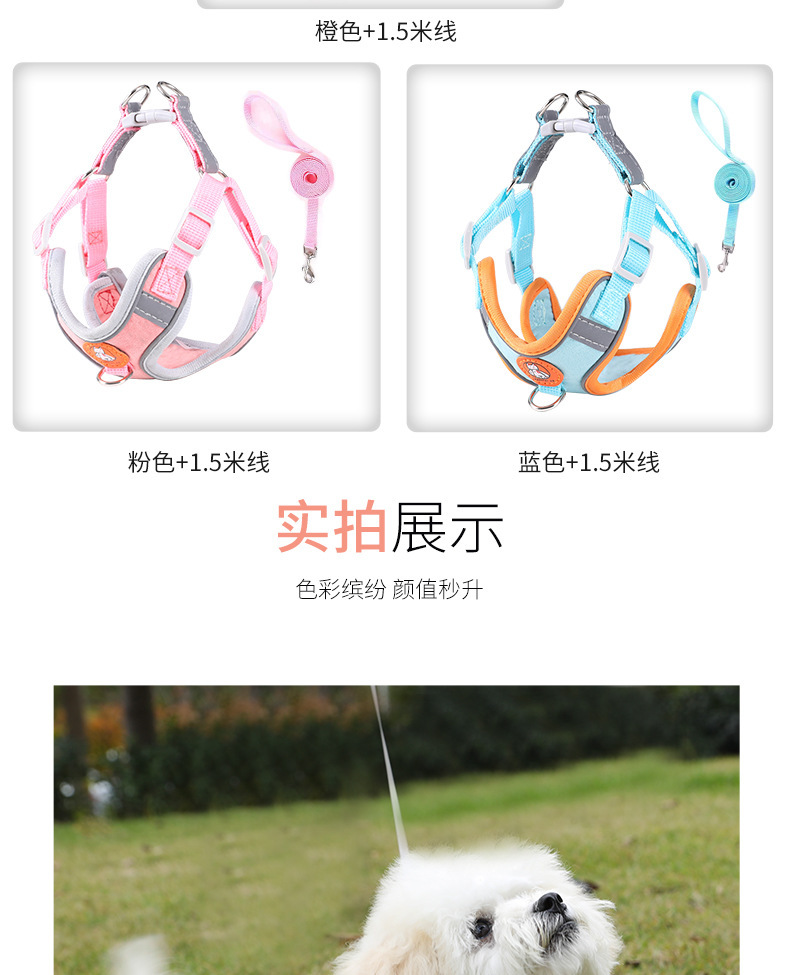 개 견인 밧줄 작고 중간 개 조끼 목 걷는 밧줄 가슴 스트랩 테디 코기 개 체인