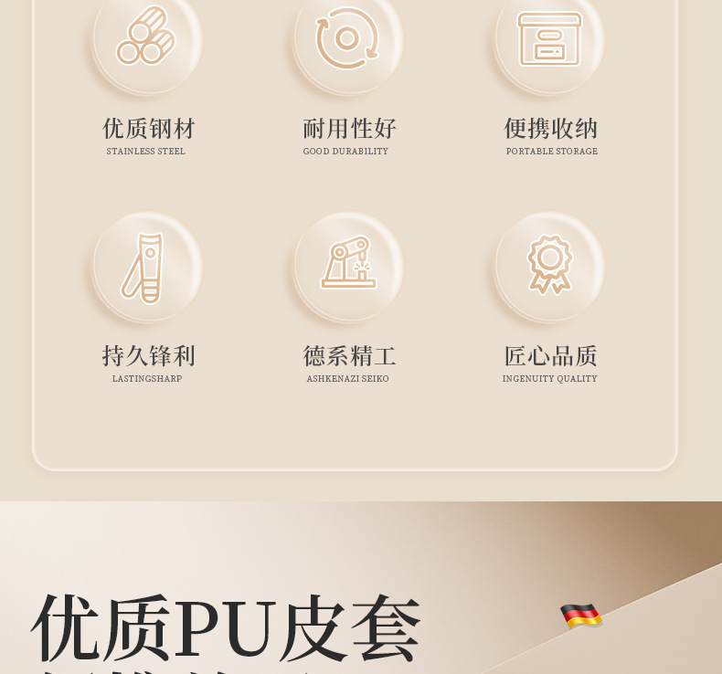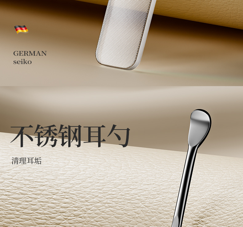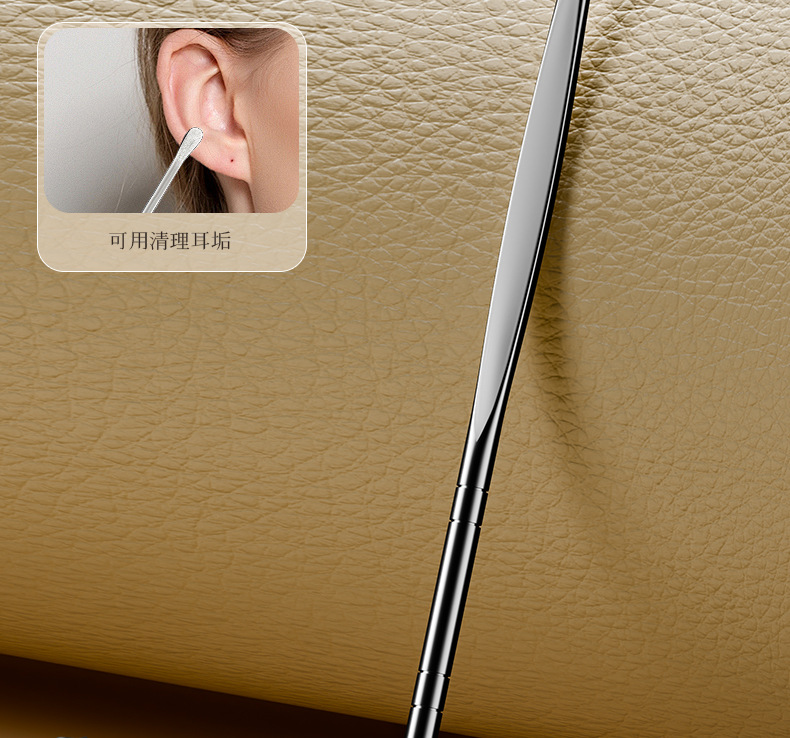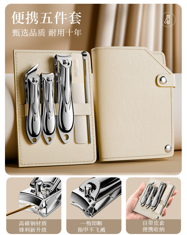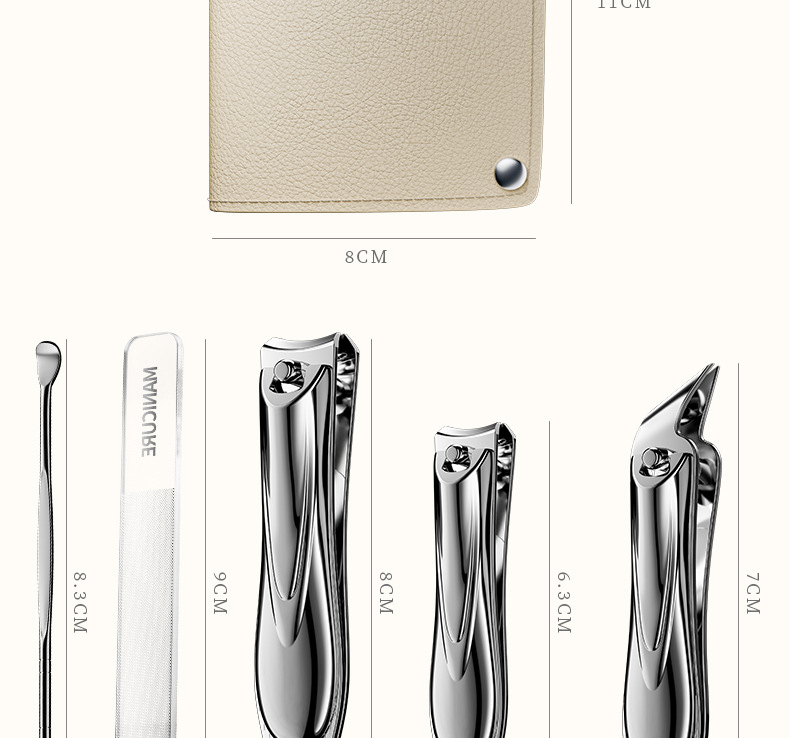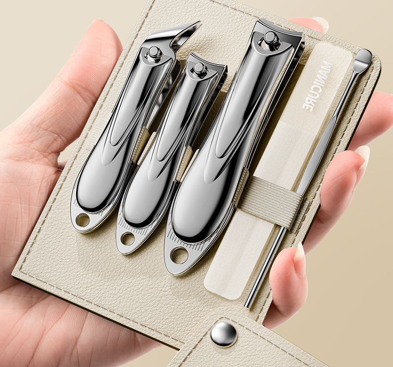 • 오프화이트 회전 가죽 케이스 실버 메탈 손톱깎이 5종 세트