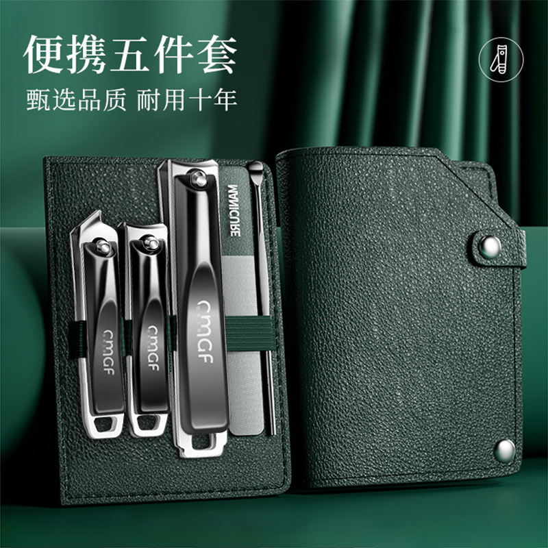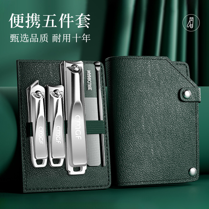 • 다크 그린 회전 가죽 케이스 라운드 네일 커터 5 피스 세트
