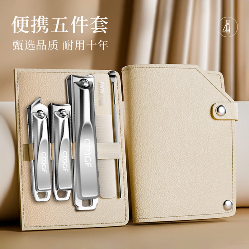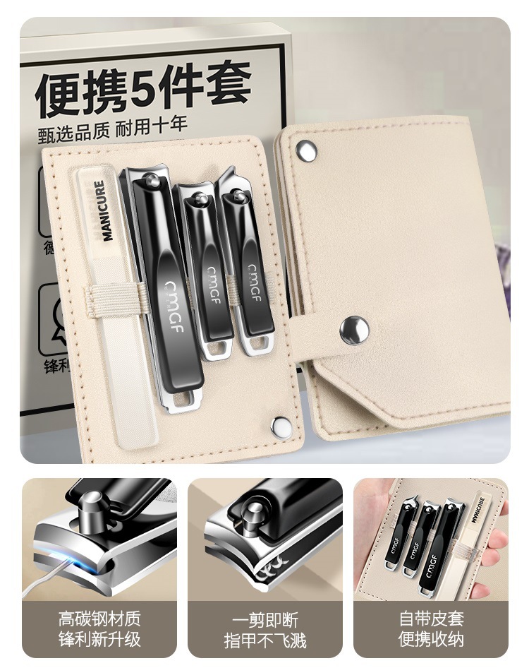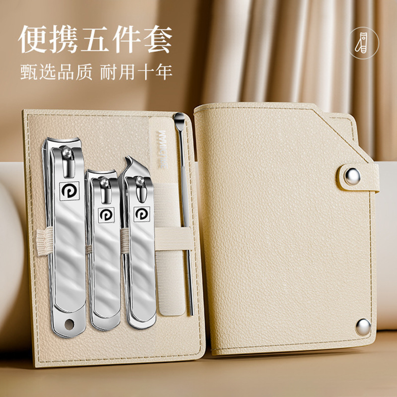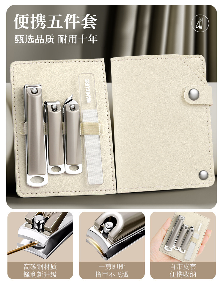 • 쌀 흰색 회전 가죽 케이스 라운드 네일 커터의 다섯 조각 세트